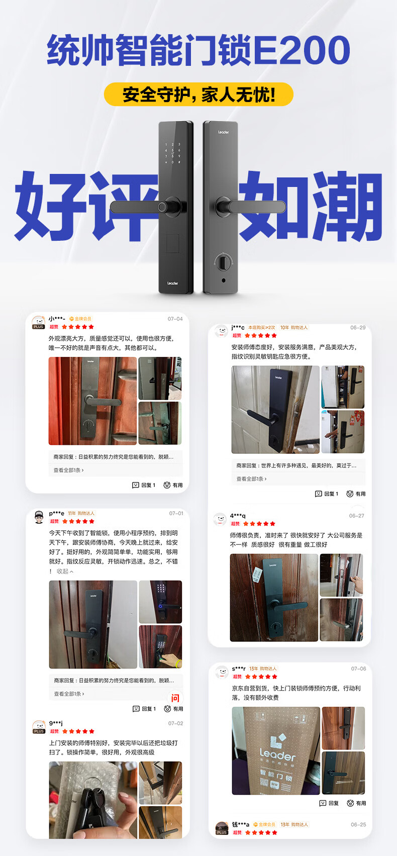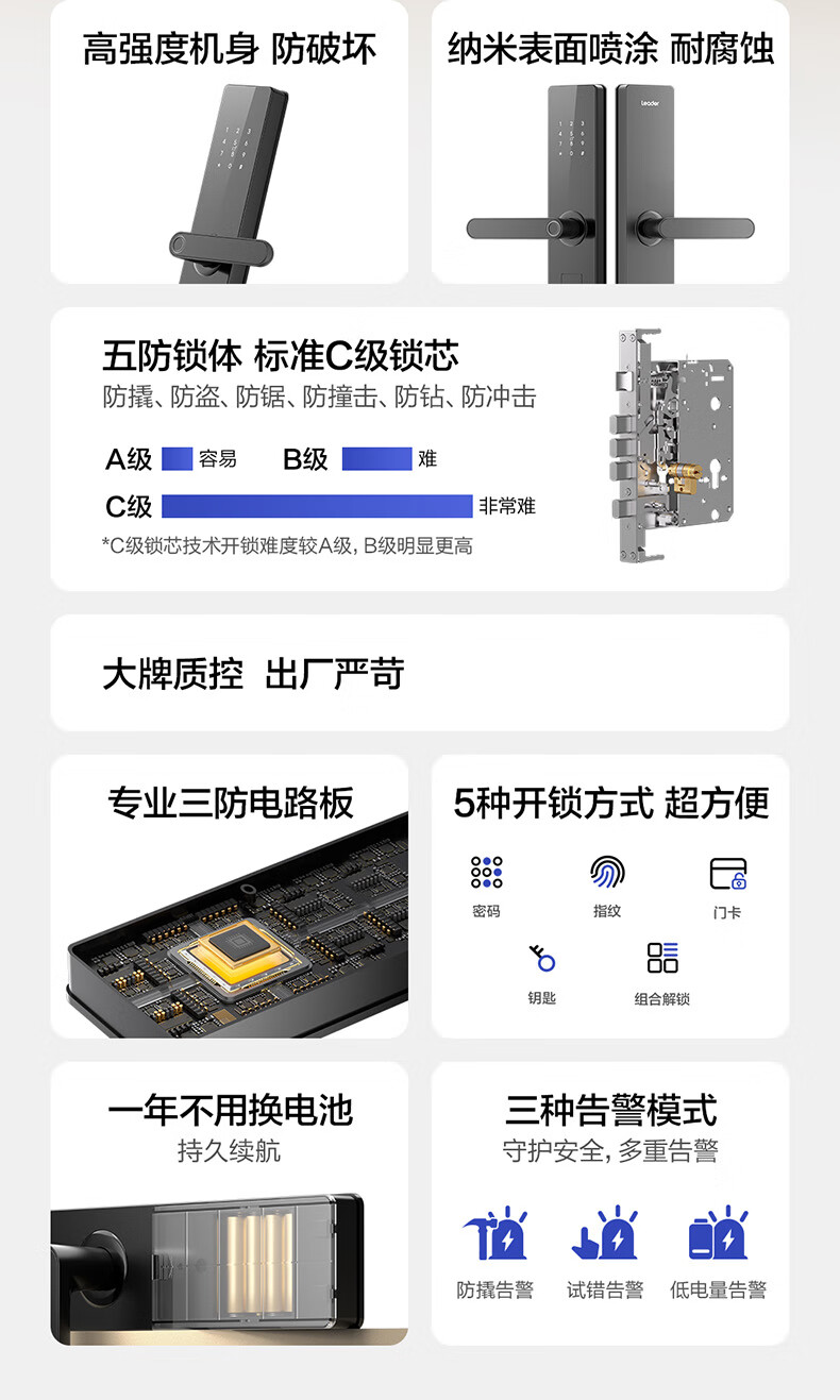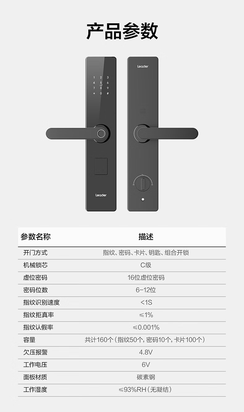 统帅(Leader)海尔门锁出品 家用智能门锁指纹密码锁防盗门锁电子锁包安装 E200