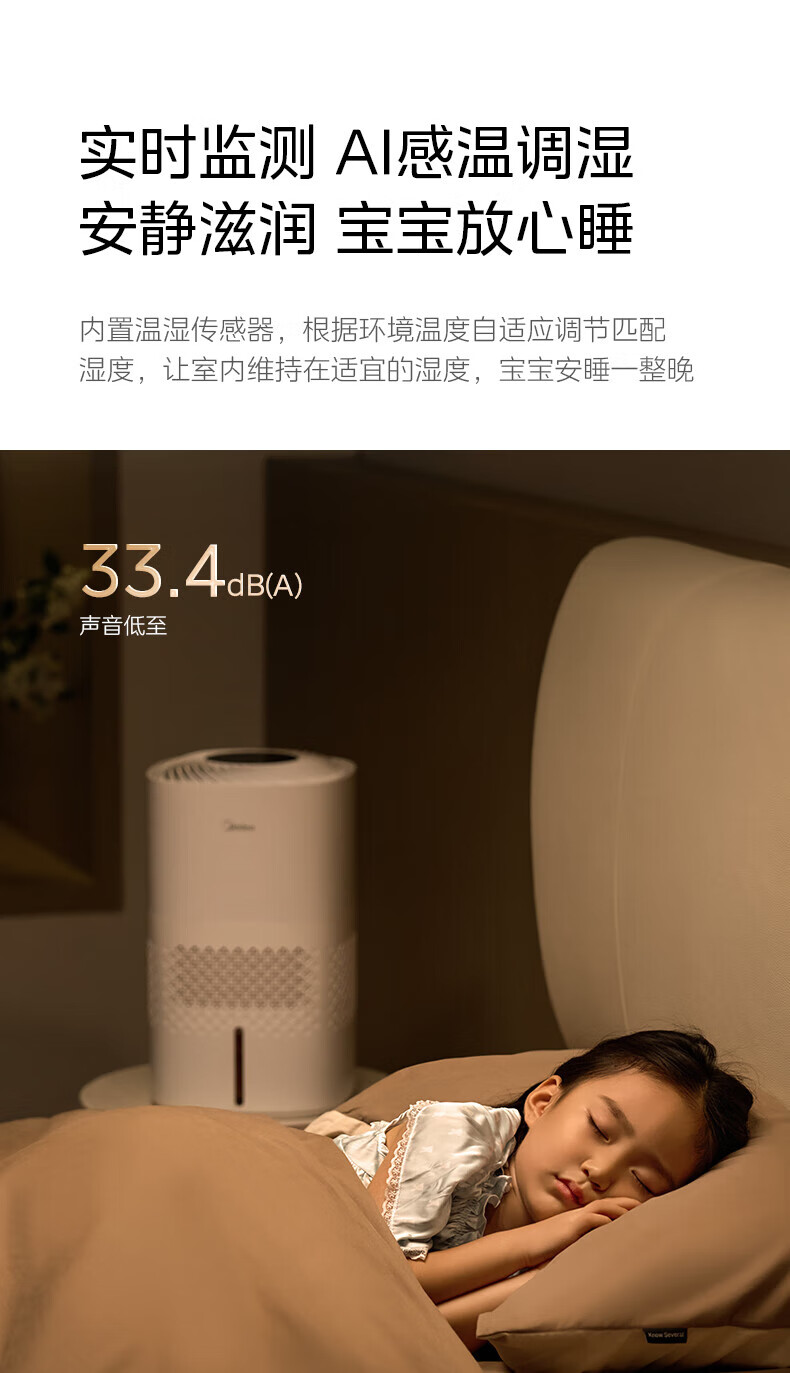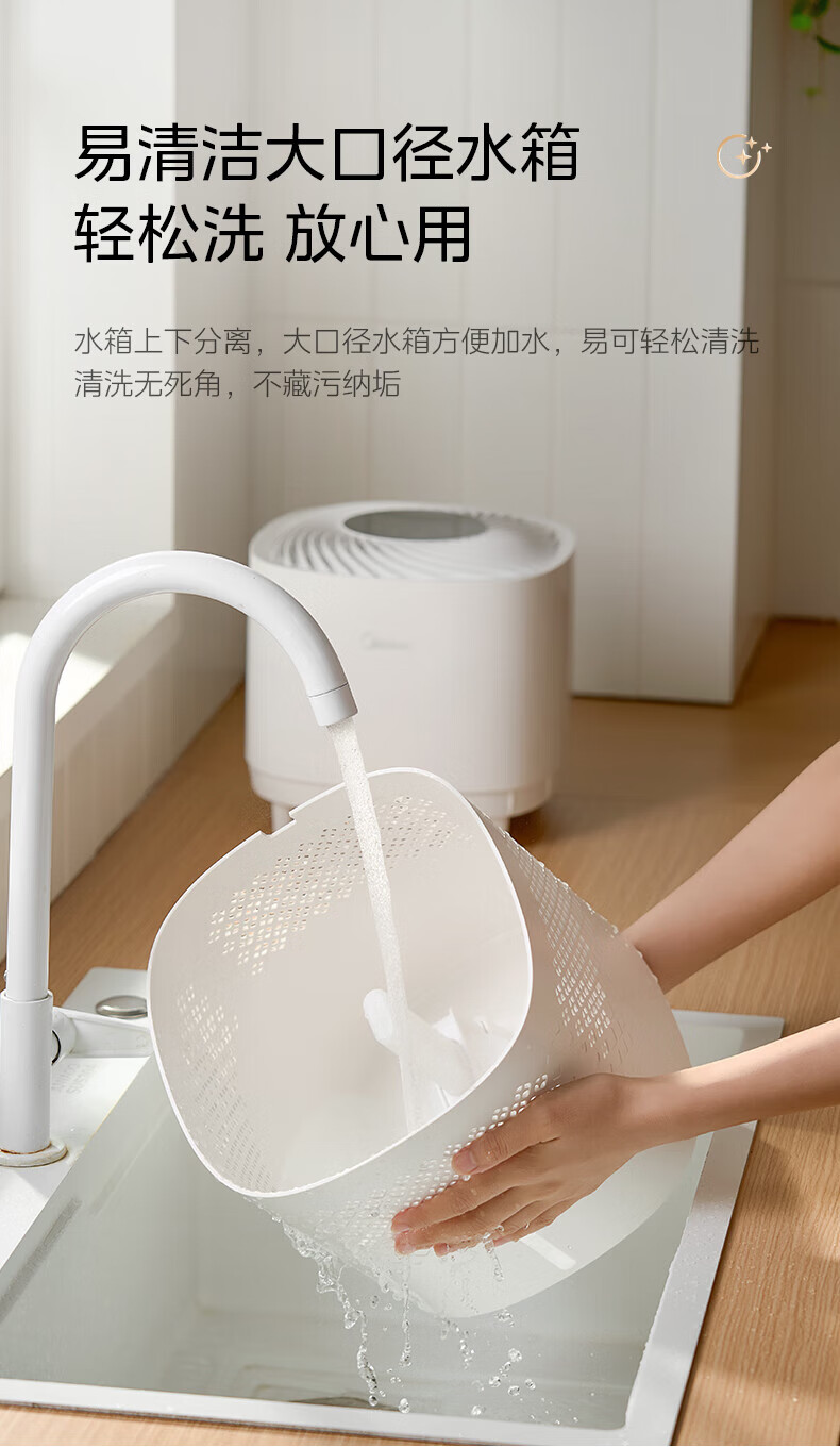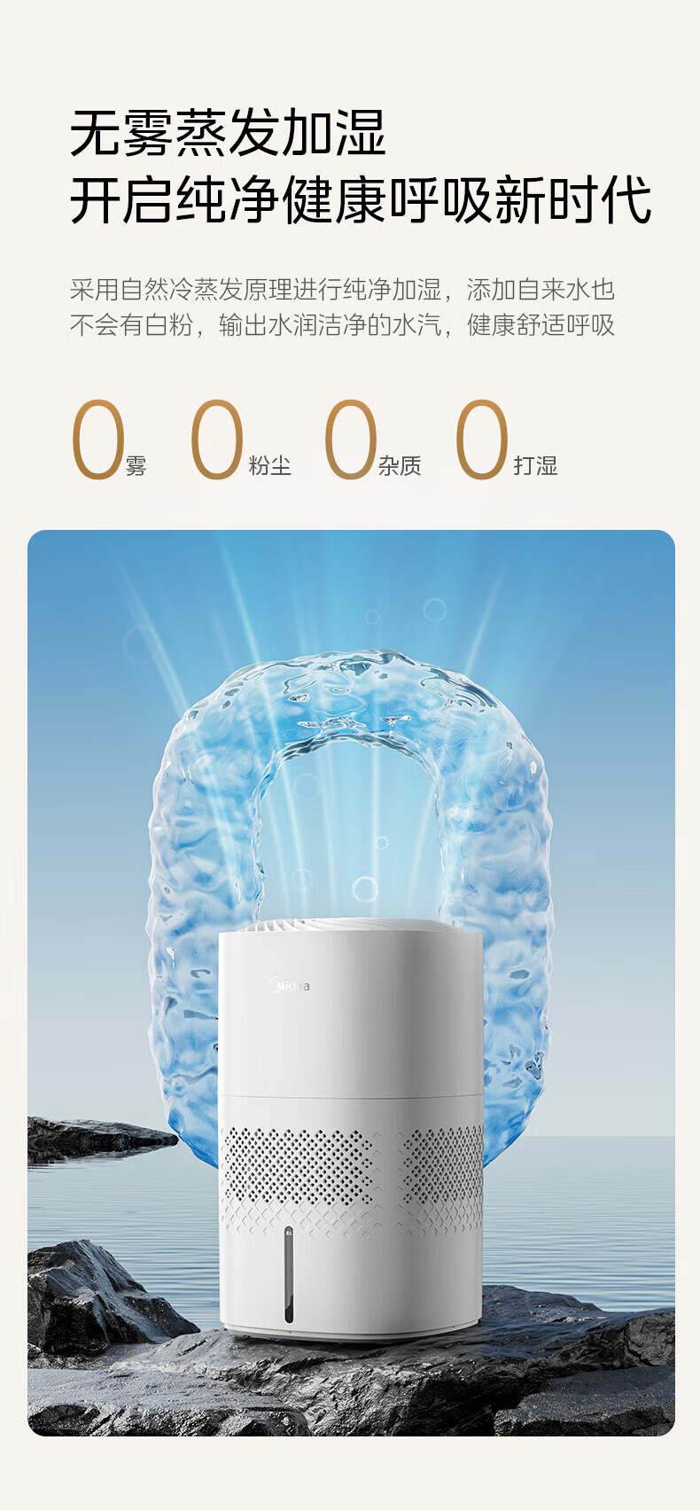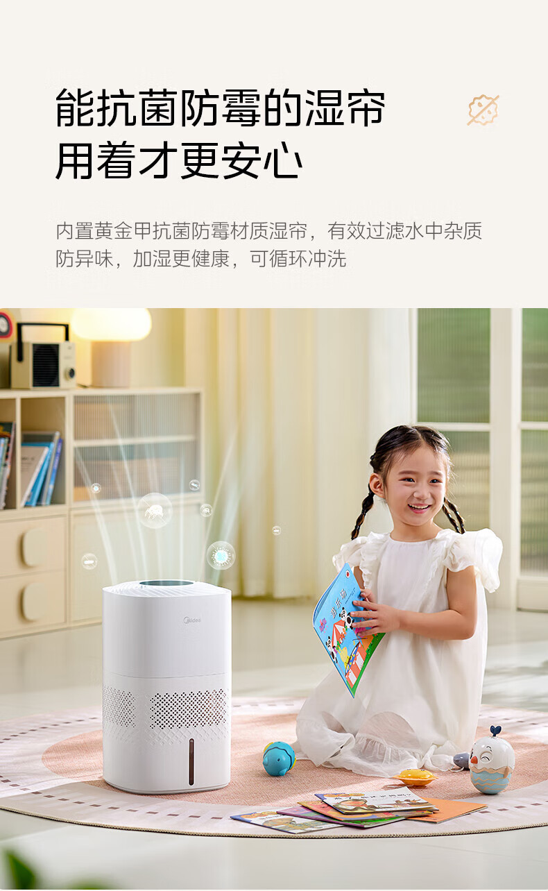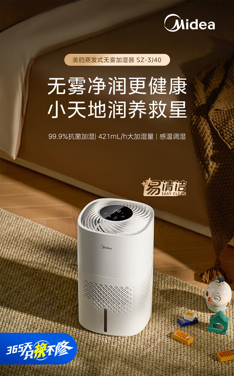美的(Midea)无雾空气加湿器净化落地式家用 母婴级专用 卧室静音蒸发式除菌小型雾化器空调取暖补水 SZ-3J40 【轻音抗菌】
