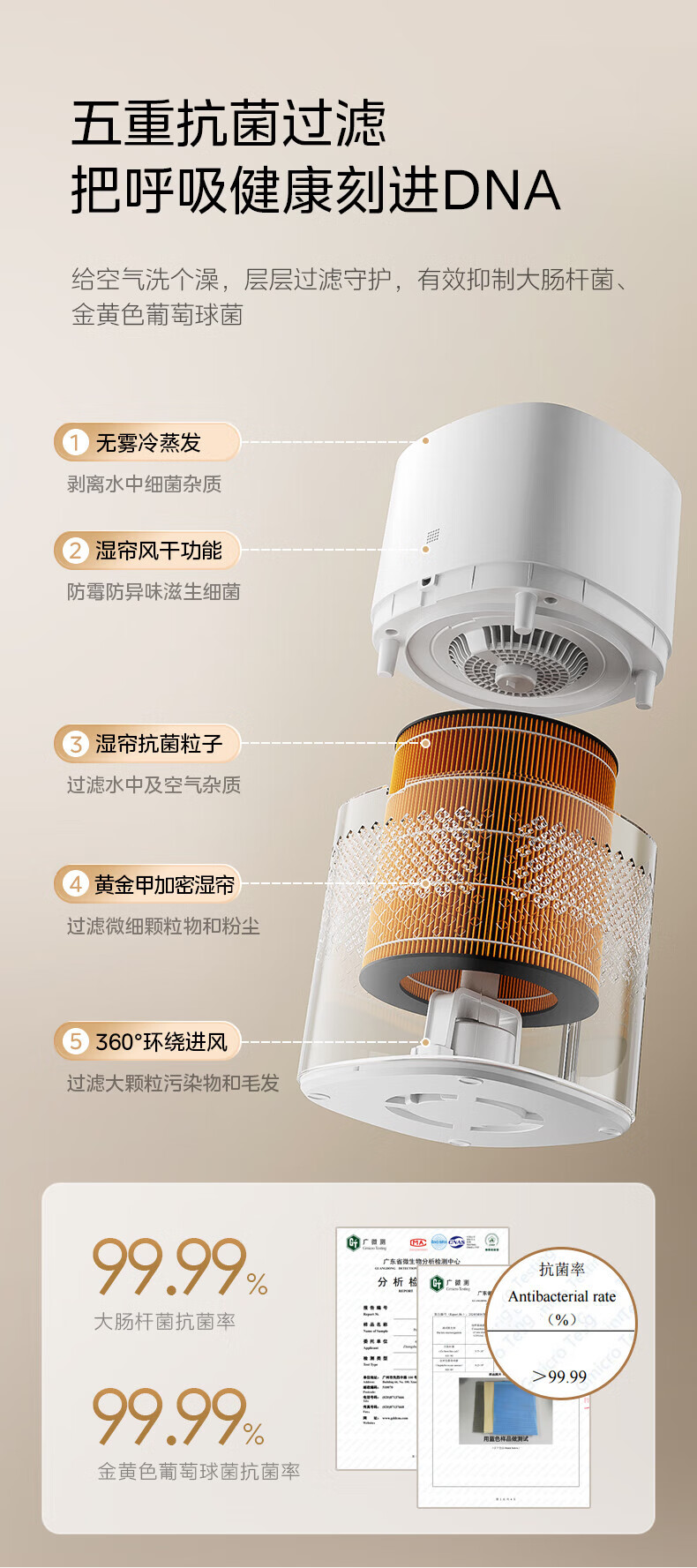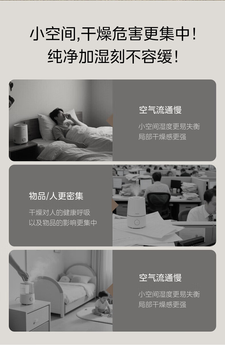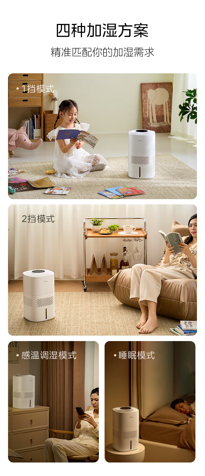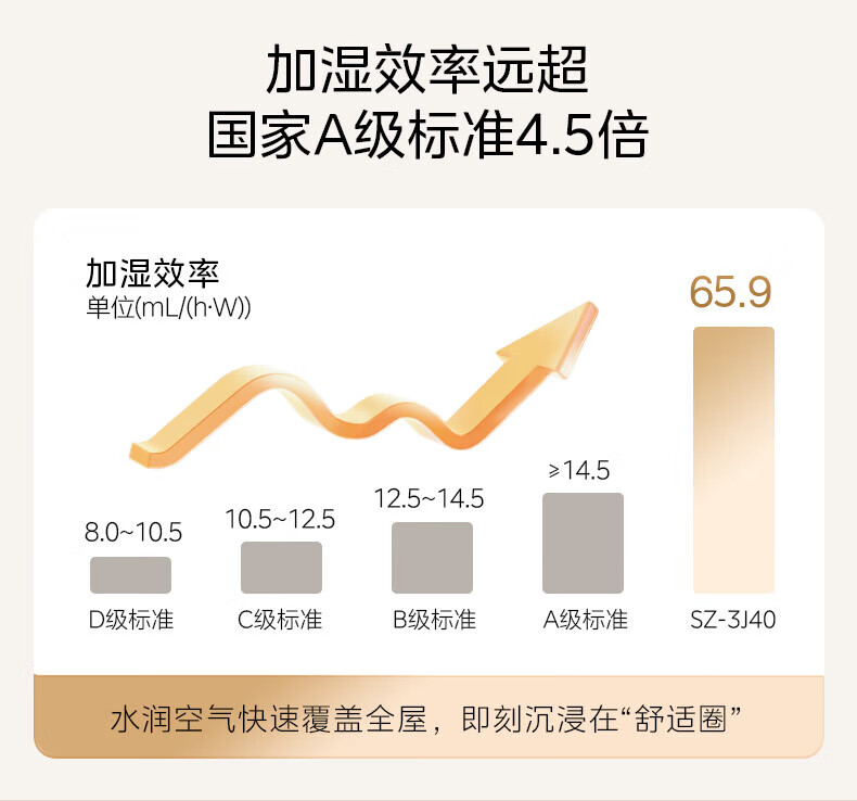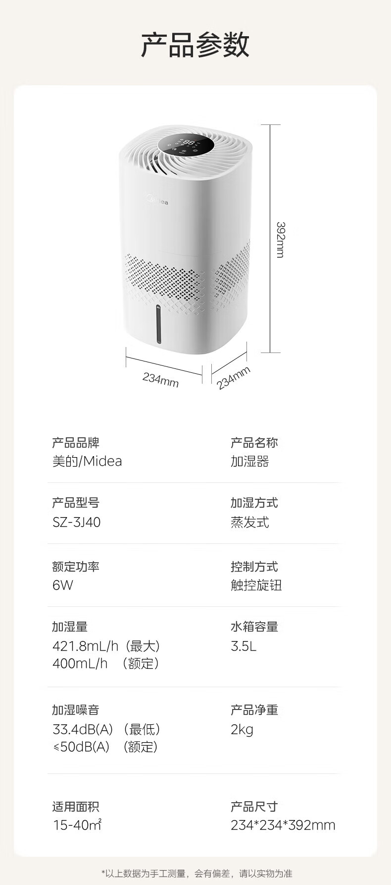 美的(Midea)无雾空气加湿器净化落地式家用 母婴级专用 卧室静音蒸发式除菌小型雾化器空调取暖补水 SZ-3J40 【轻音抗菌】