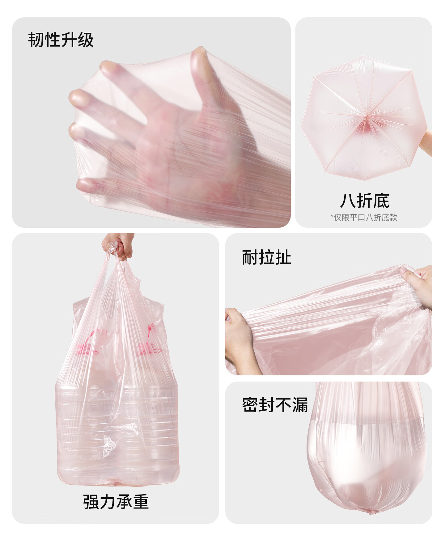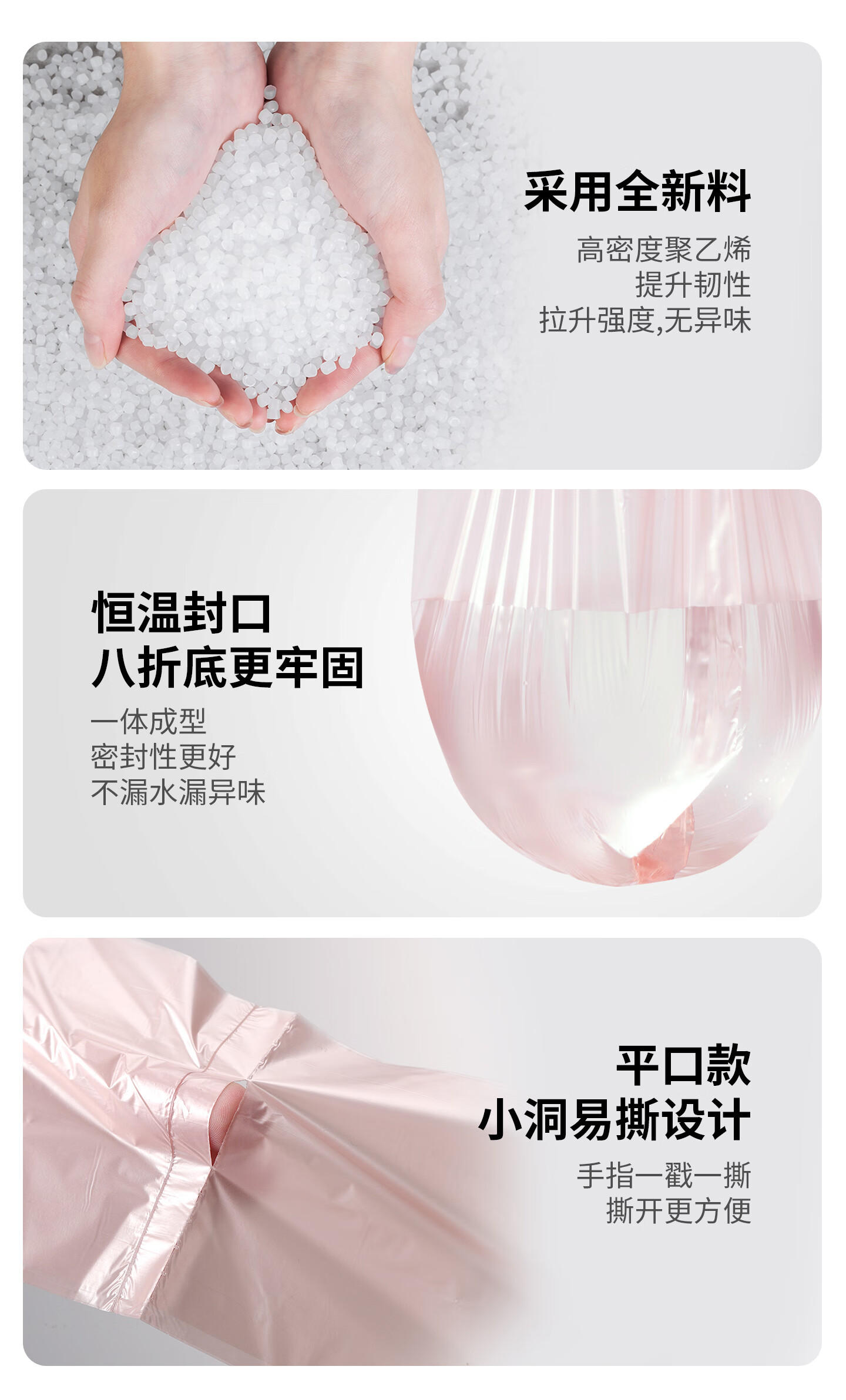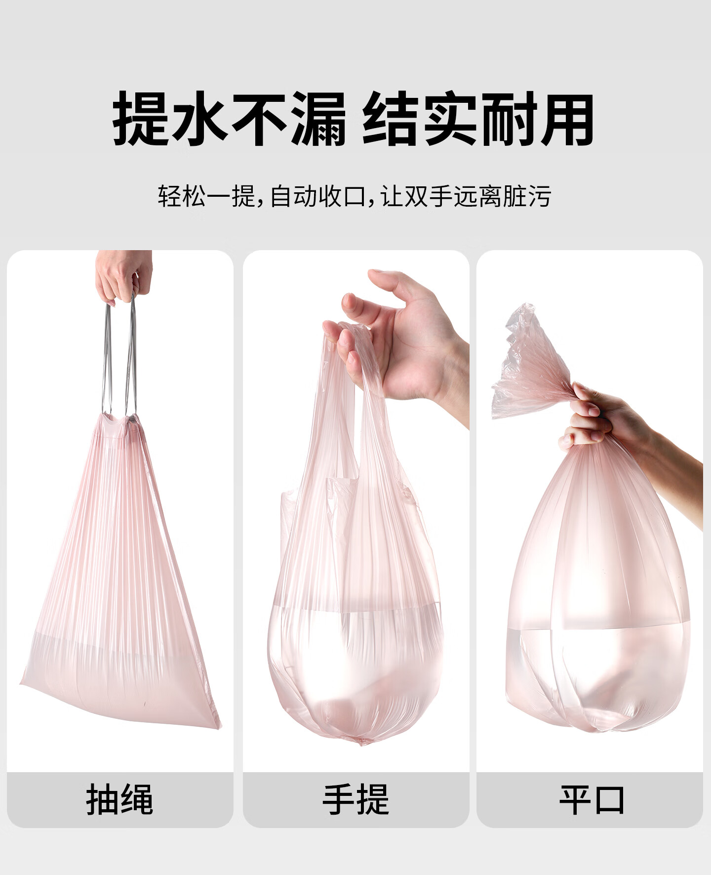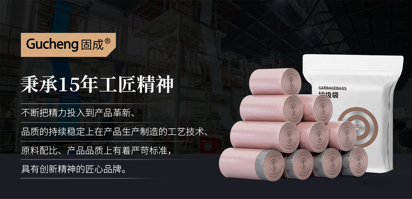 固成玫瑰金系列 手提平口抽绳加厚家用垃圾袋 不渗漏无异味 【手提】45*60CM共108只