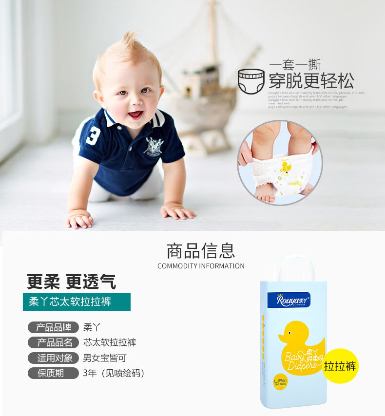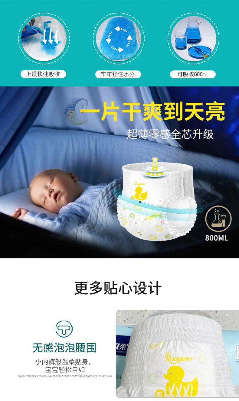 柔丫(ROUYA)芯太软婴儿纸尿裤夏季超薄透气试用拉拉裤新生xl尿包尿布湿小桃裤 2XL 2包 92片 【纸尿裤30斤以上】 *免费试用5片