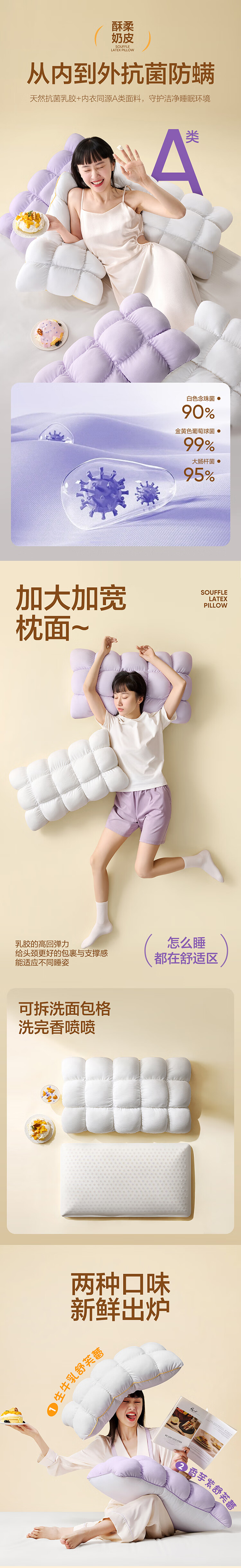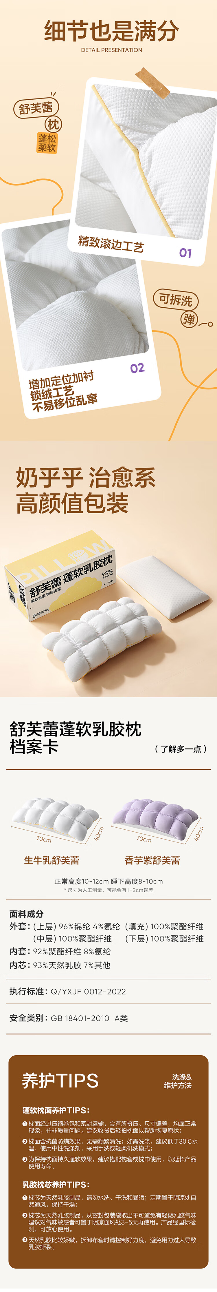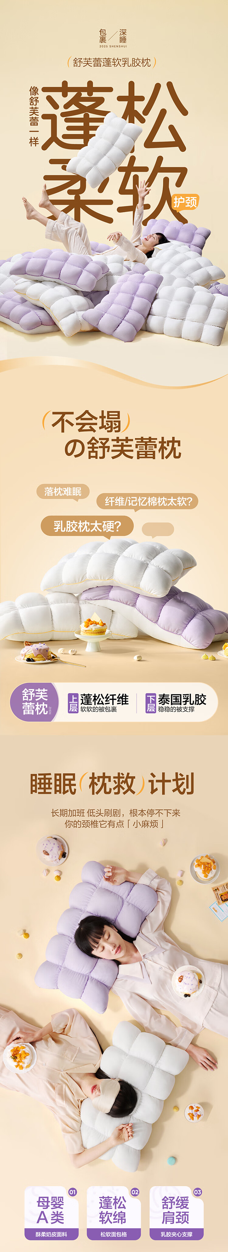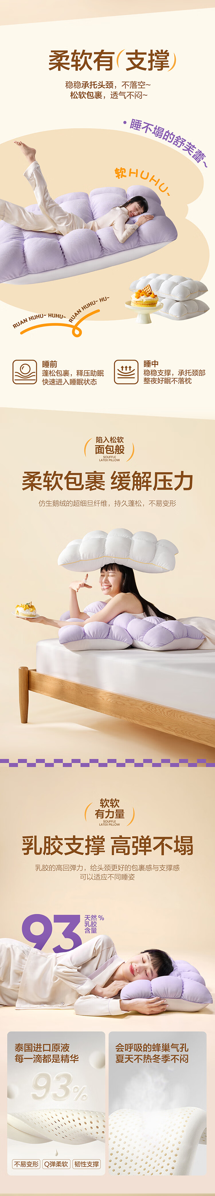 网易严选93%泰国天然乳胶枕 学生宿舍高低双区工学曲线立体按摩蜂巢气孔 C款【93%主推】优眠经典(卡其色)