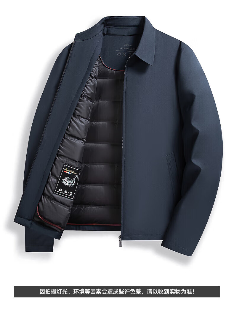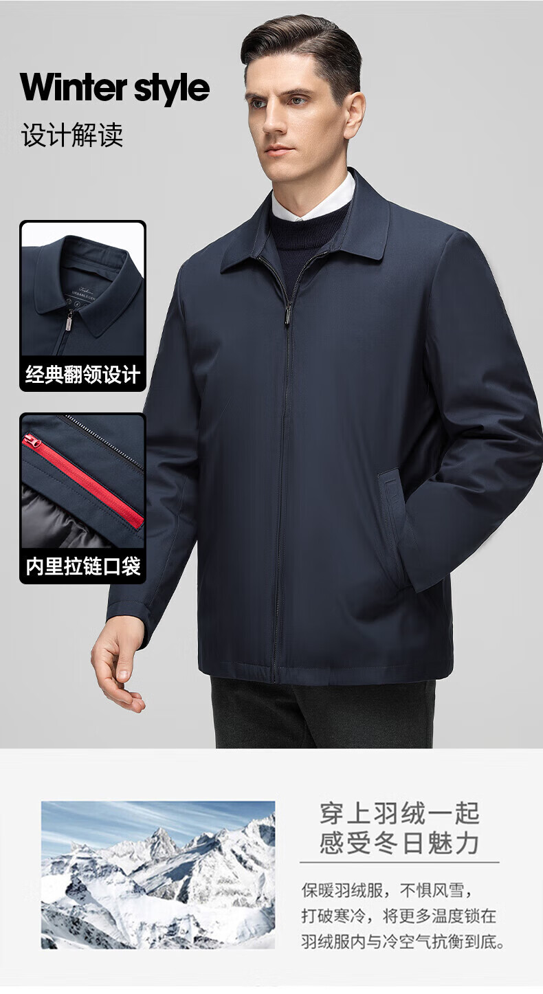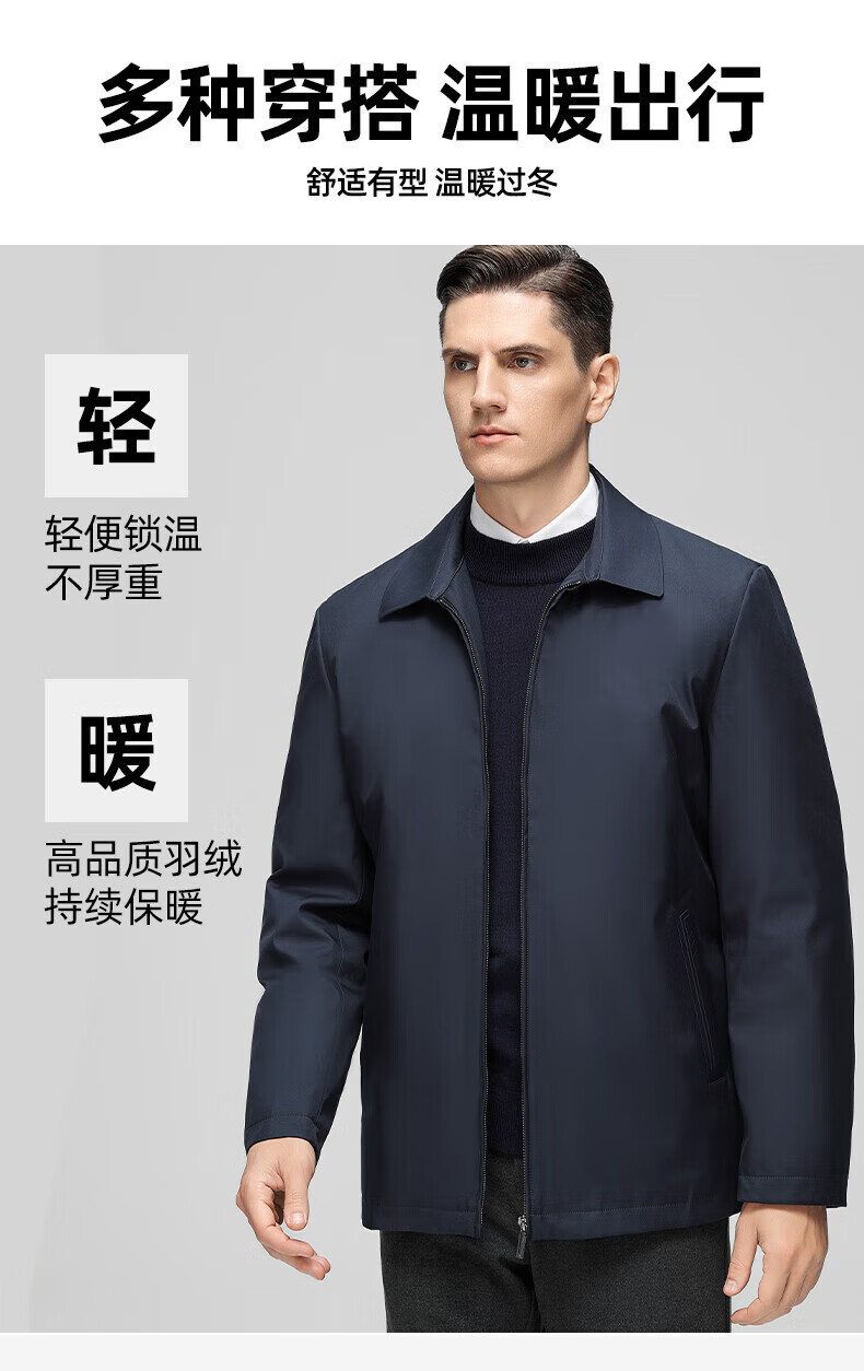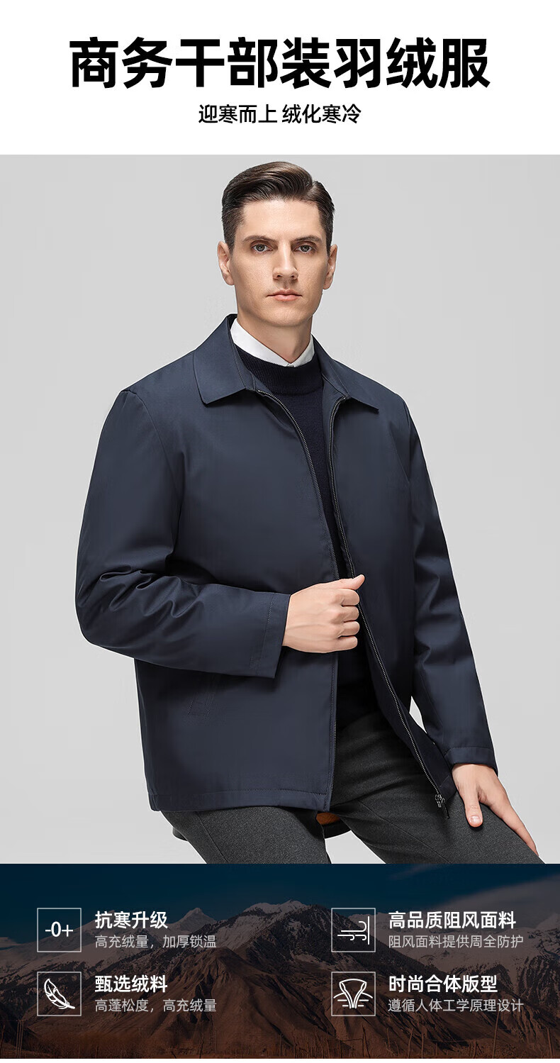 鸭鸭(YAYA)鹅绒夹克羽绒服男短款厚款一衣多穿保暖中老年冬季新年爸爸装外套 藏青 L 175/92A(建议120-135斤)
