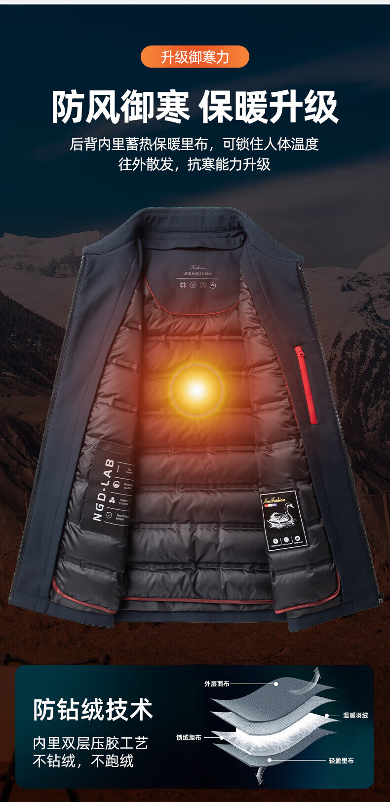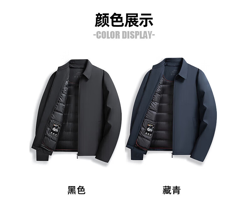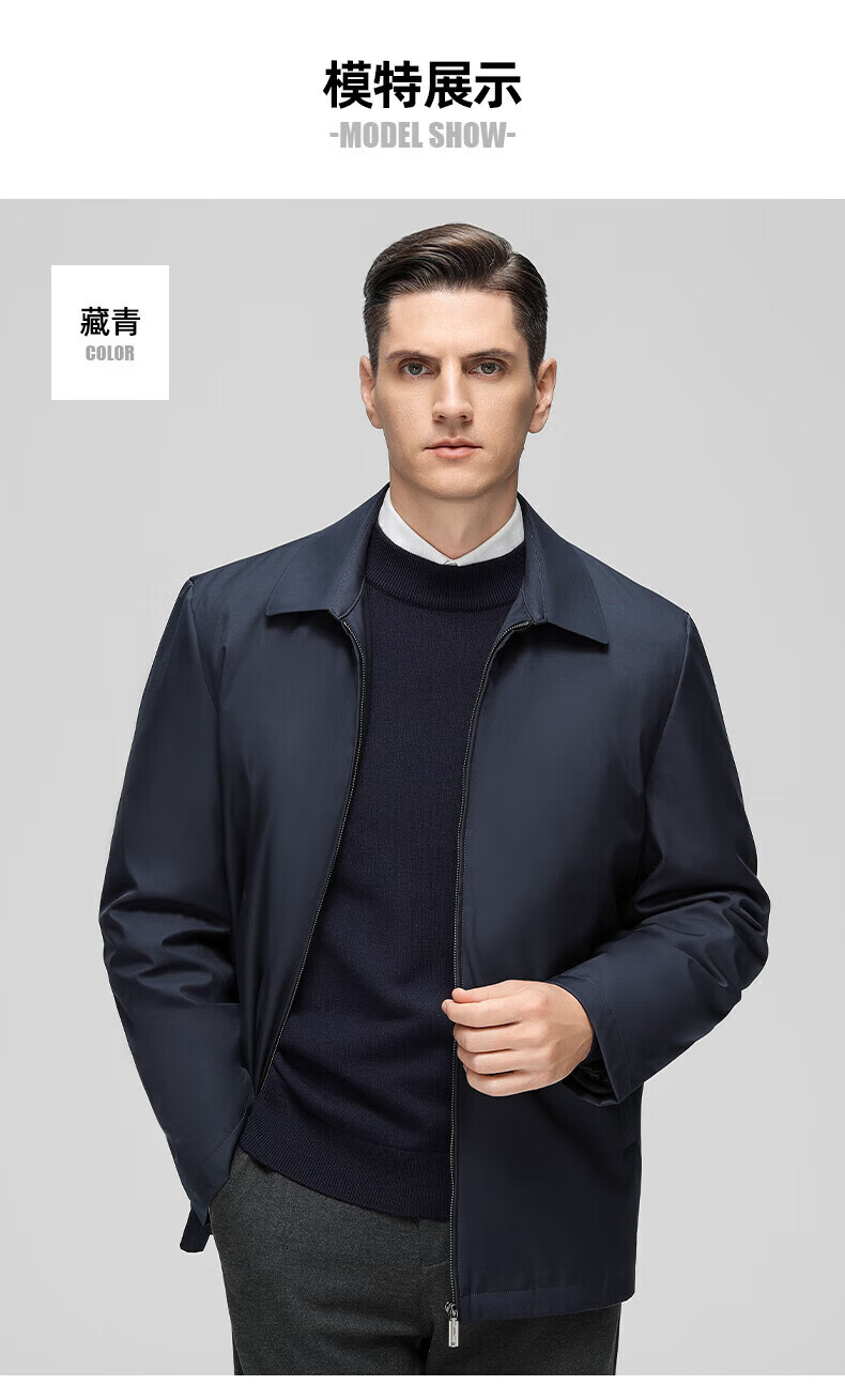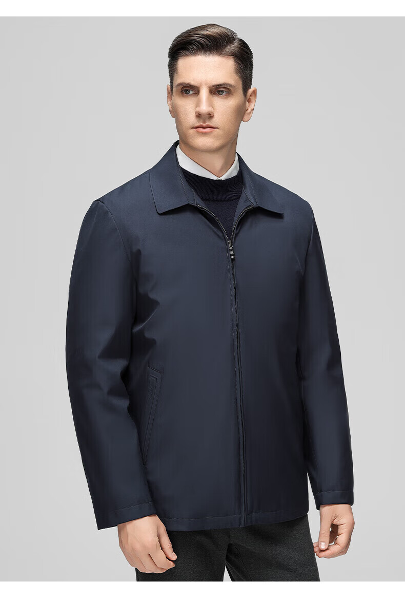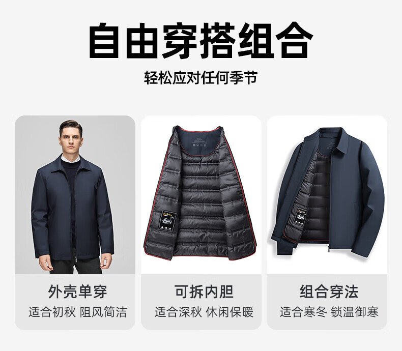 鸭鸭(YAYA)鹅绒夹克羽绒服男短款厚款一衣多穿保暖中老年冬季新年爸爸装外套 藏青 L 175/92A(建议120-135斤)