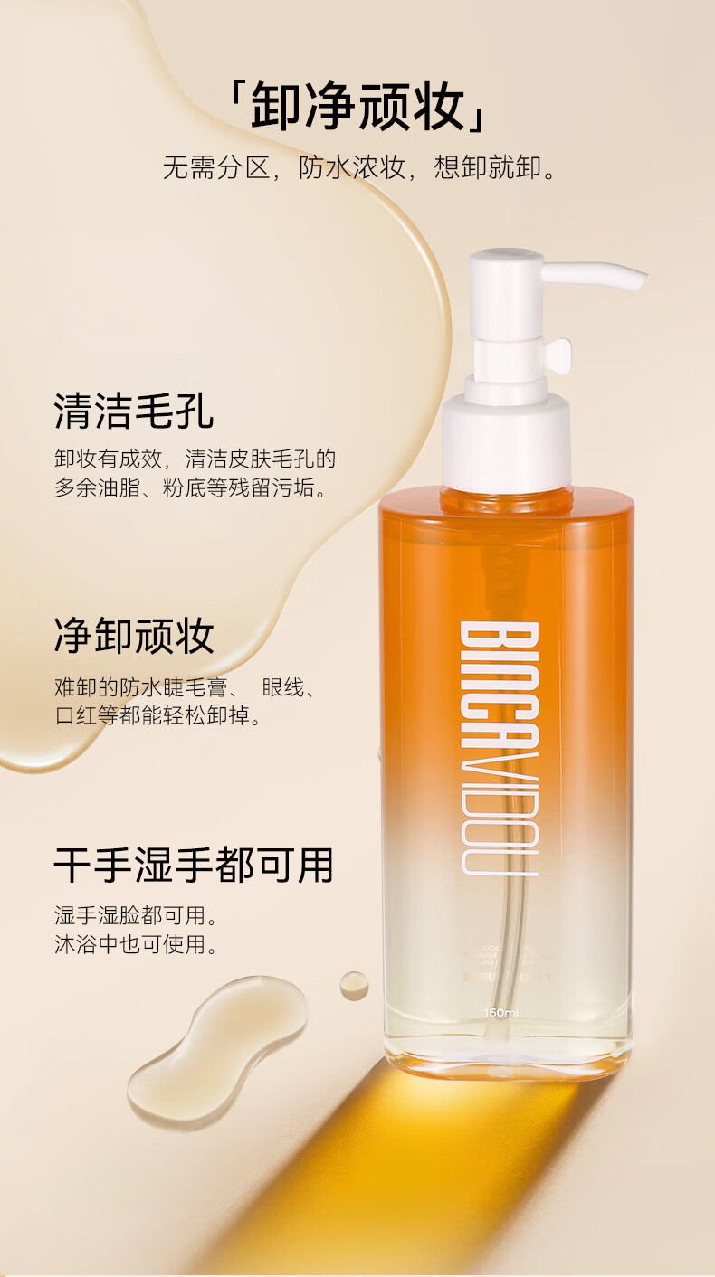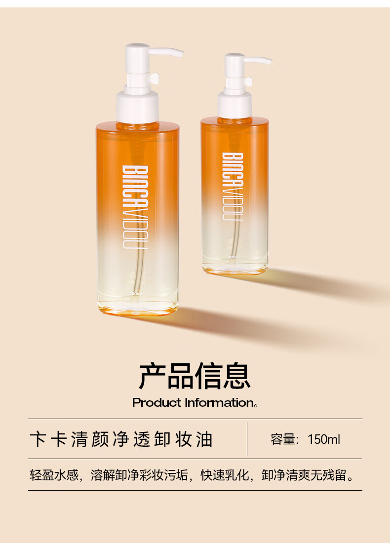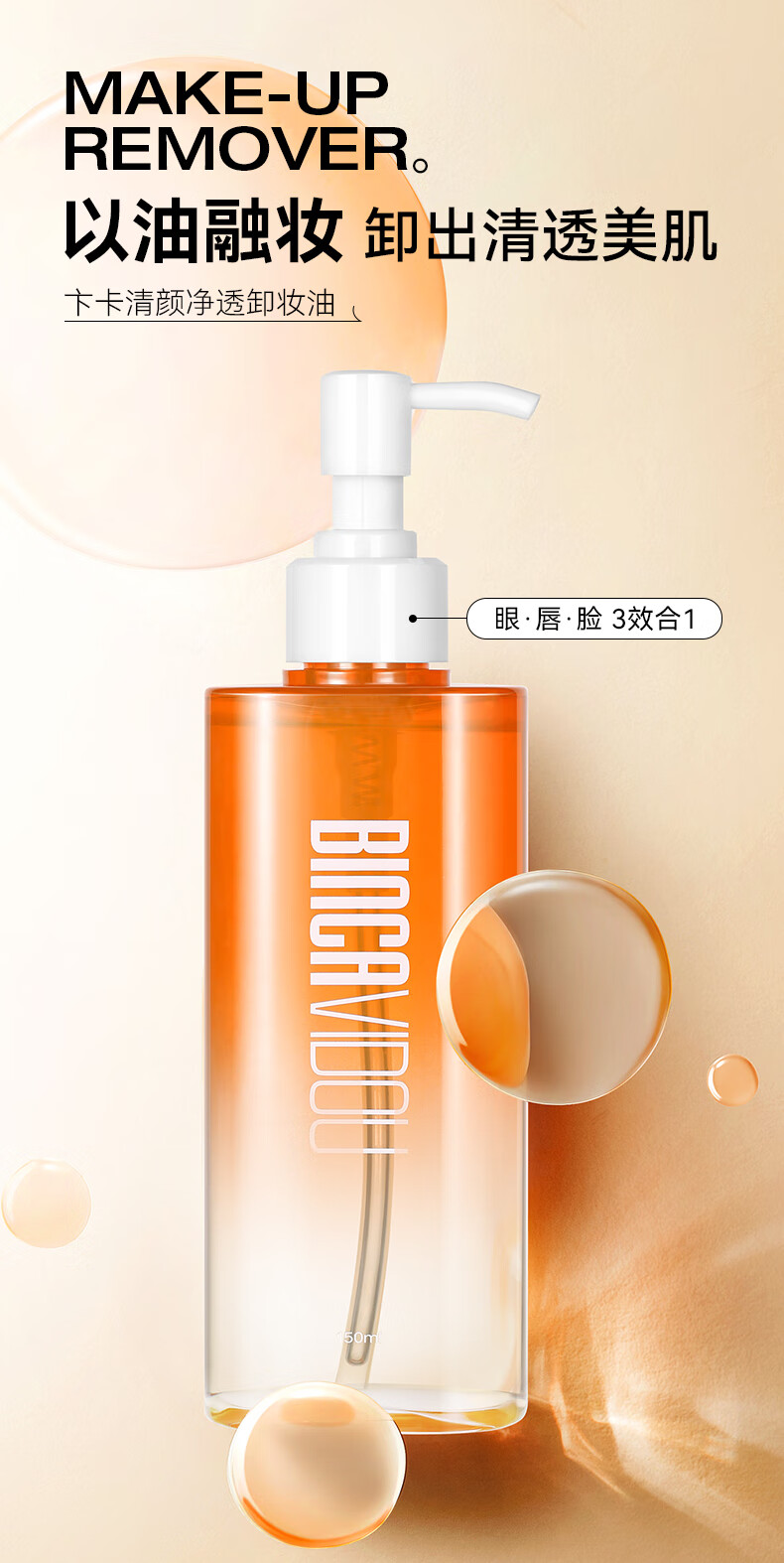 卞卡(BINCA VIDOU)清颜净透卸妆油 眼唇脸三合一温和不刺激清洁 送女生新年礼物 150ml清颜净透卸妆油