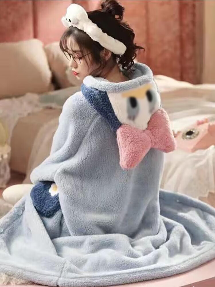 有只绵新款女士秋冬家居服加厚珊瑚绒睡衣大耳狗连帽可爱睡袍 彩虹睡袍 绿色 均码 (80-160斤)