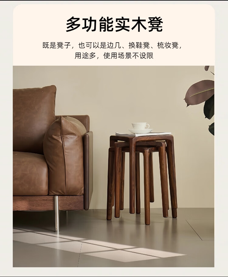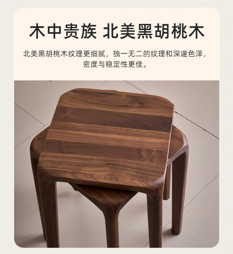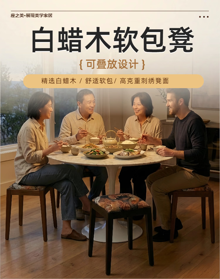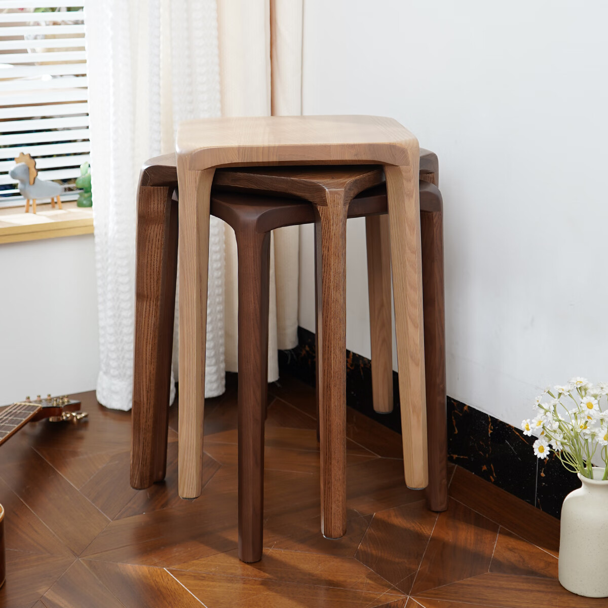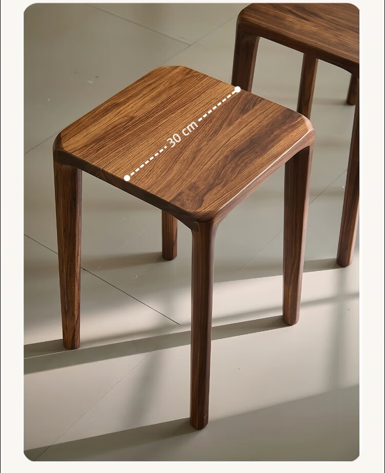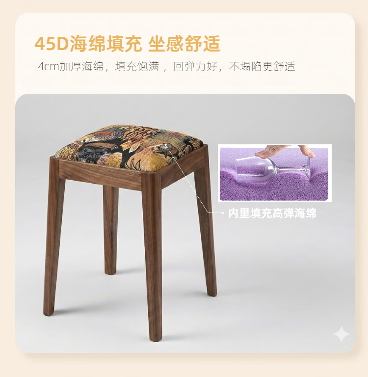 座之美实木可叠放凳子乌金木白蜡木家用加厚结实凳子软包凳45cm坐高叠凳 【软包方凳】白蜡木-黑色 | 百鸟争鸣