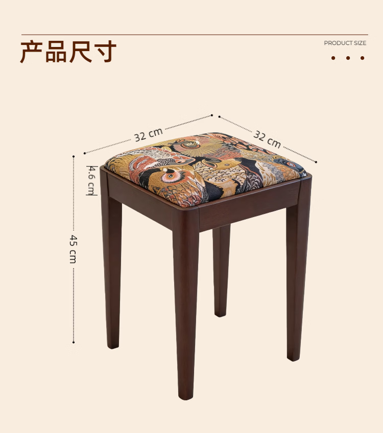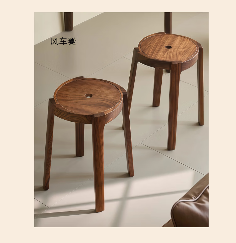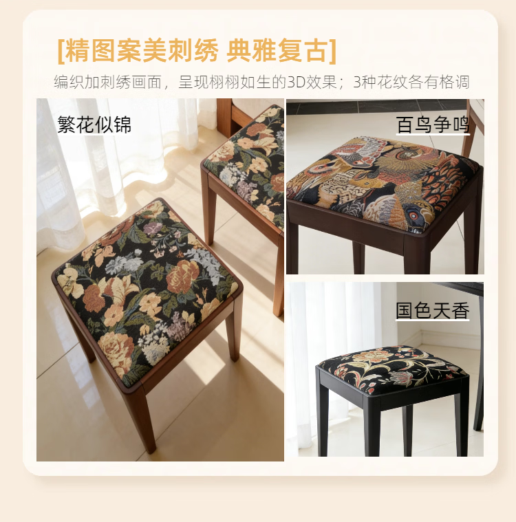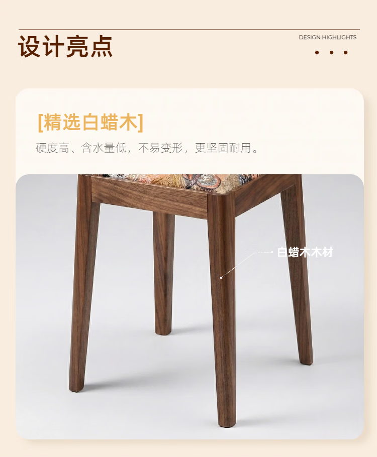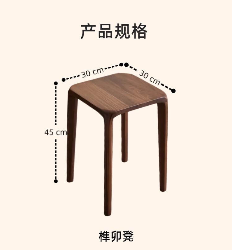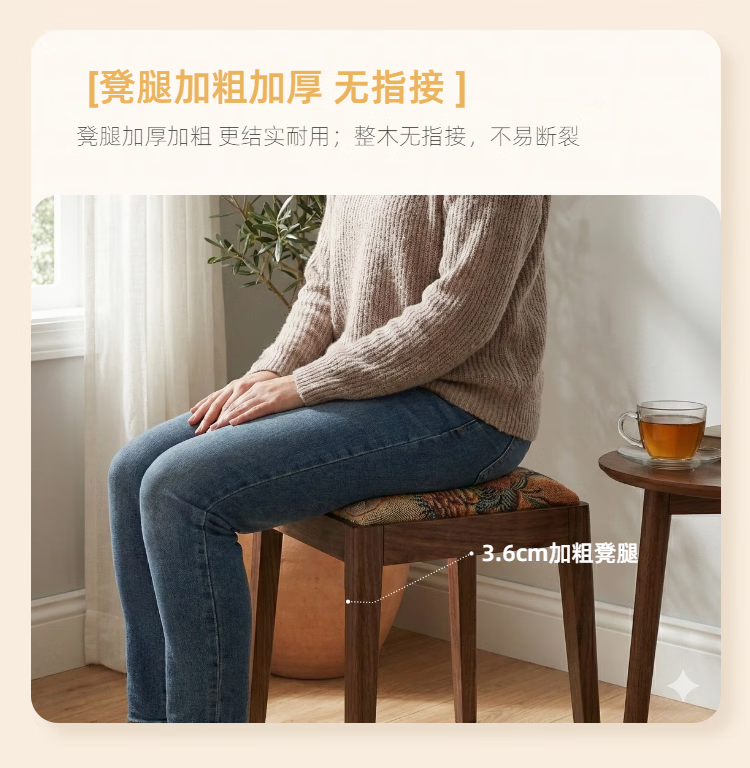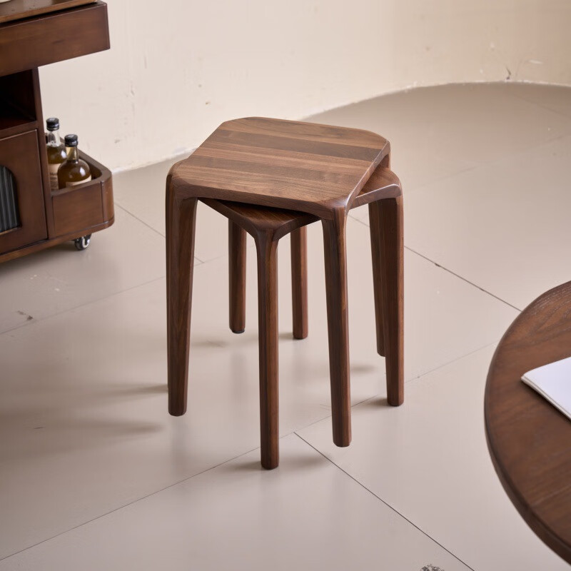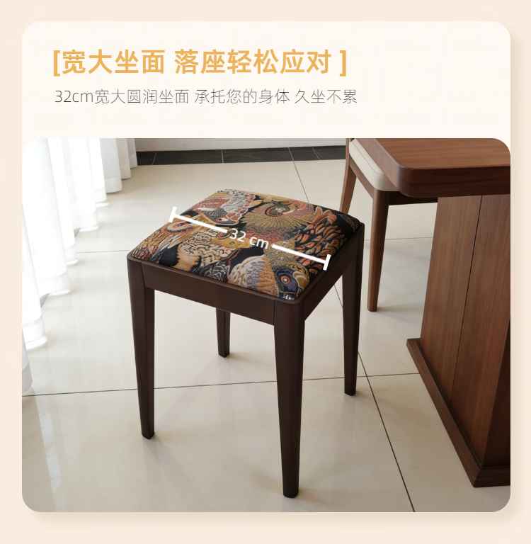 座之美实木可叠放凳子乌金木白蜡木家用加厚结实凳子软包凳45cm坐高叠凳 【软包方凳】白蜡木-黑色 | 百鸟争鸣