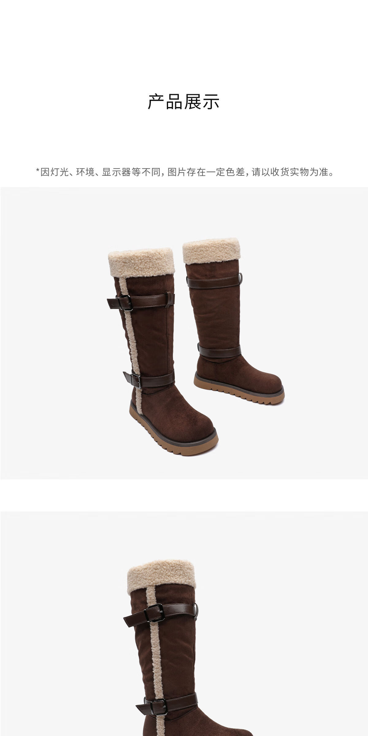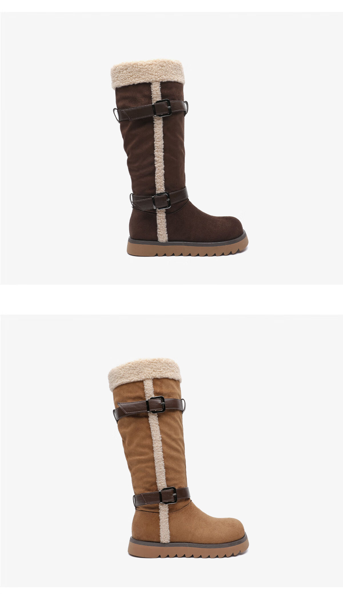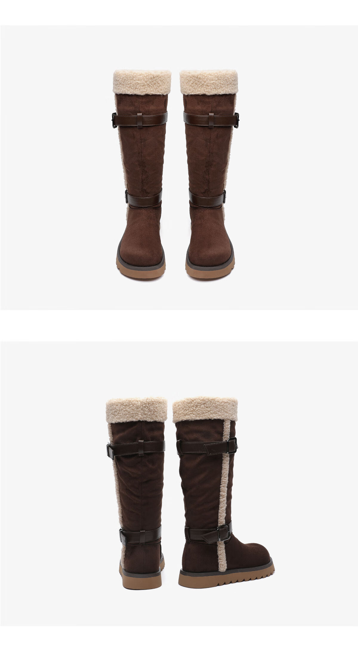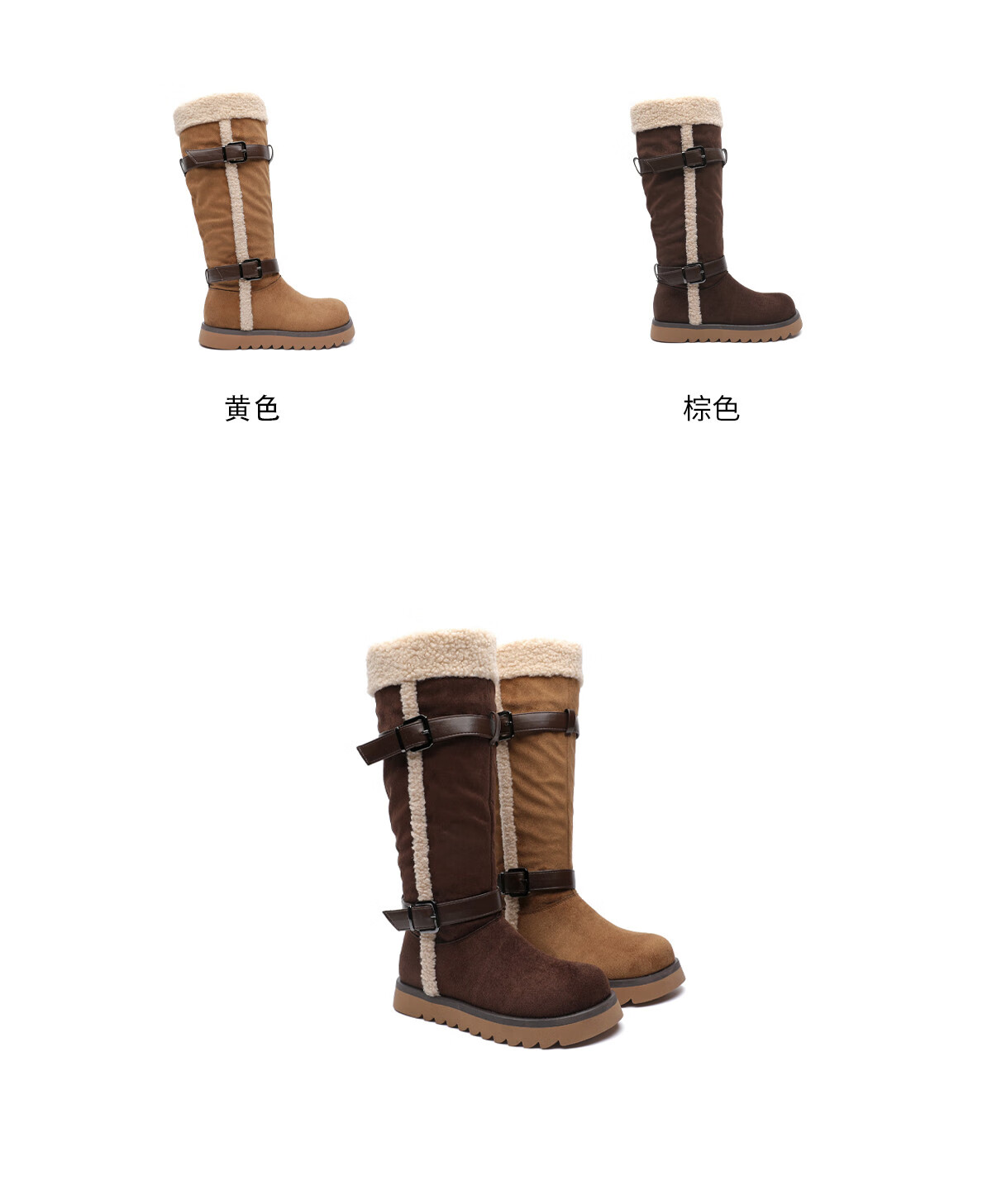 月芽儿加绒加厚皮带扣2025冬季新款翻边雪地靴女防滑保暖长靴 绒里棕色03T 34