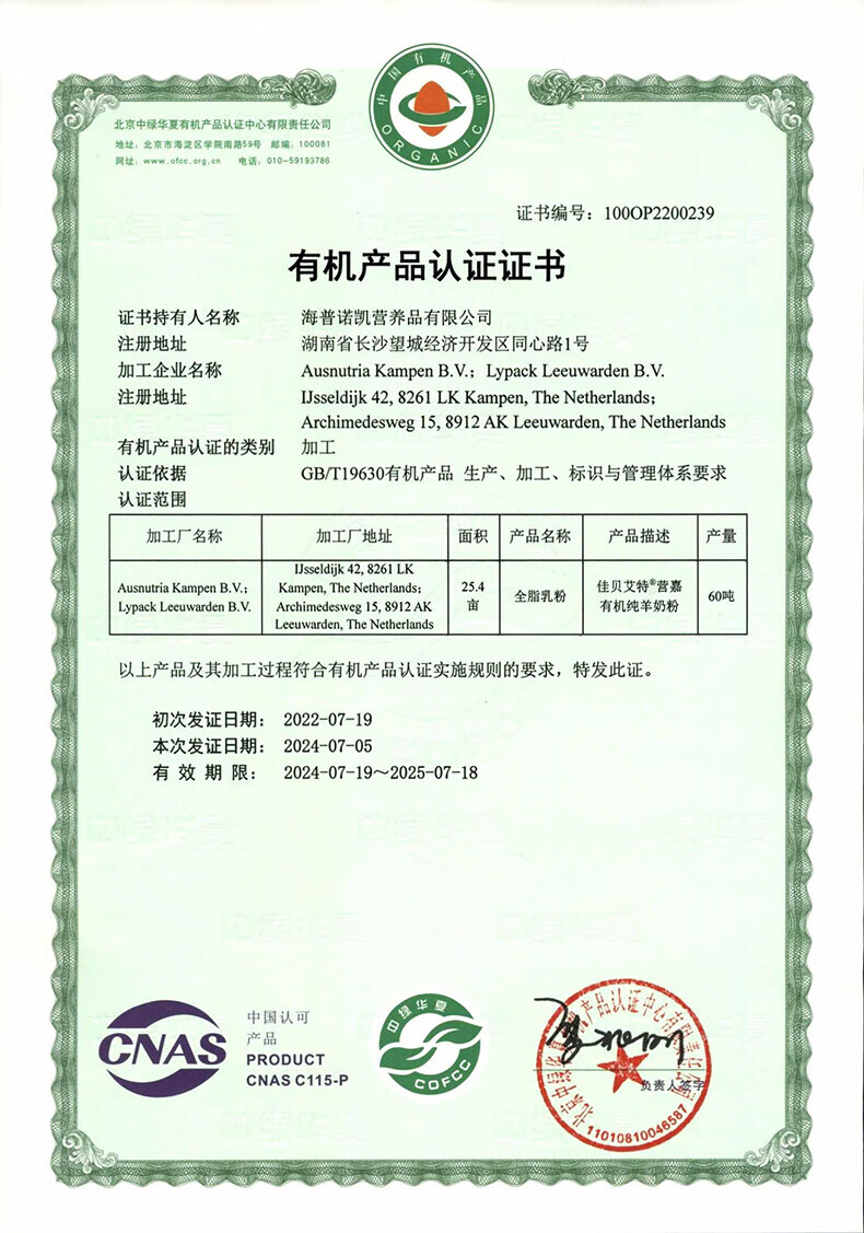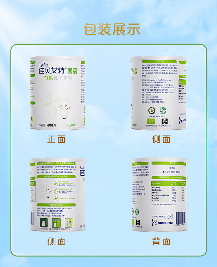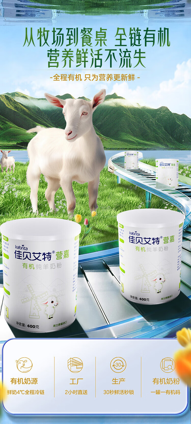 佳贝艾特(Kabrita)羊奶粉营嘉有机3.8倍原生高钙中老年成人荷兰原装进口青少年400g 【有机纯羊奶粉】400g*1罐