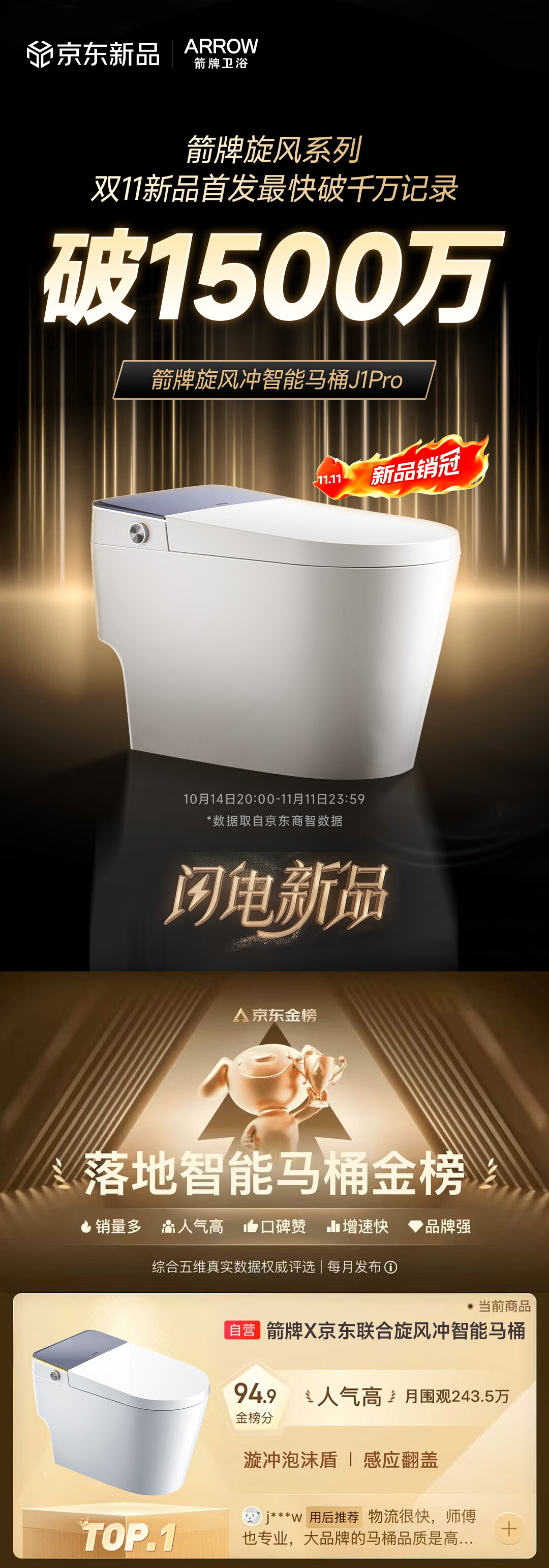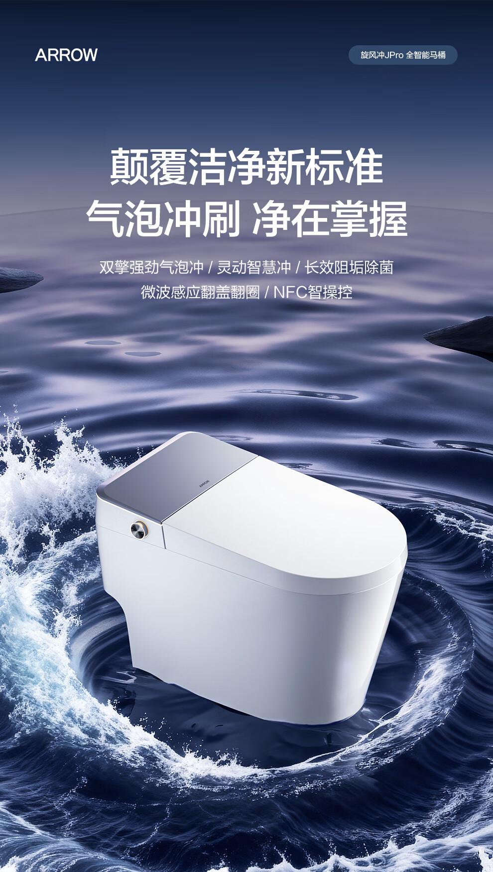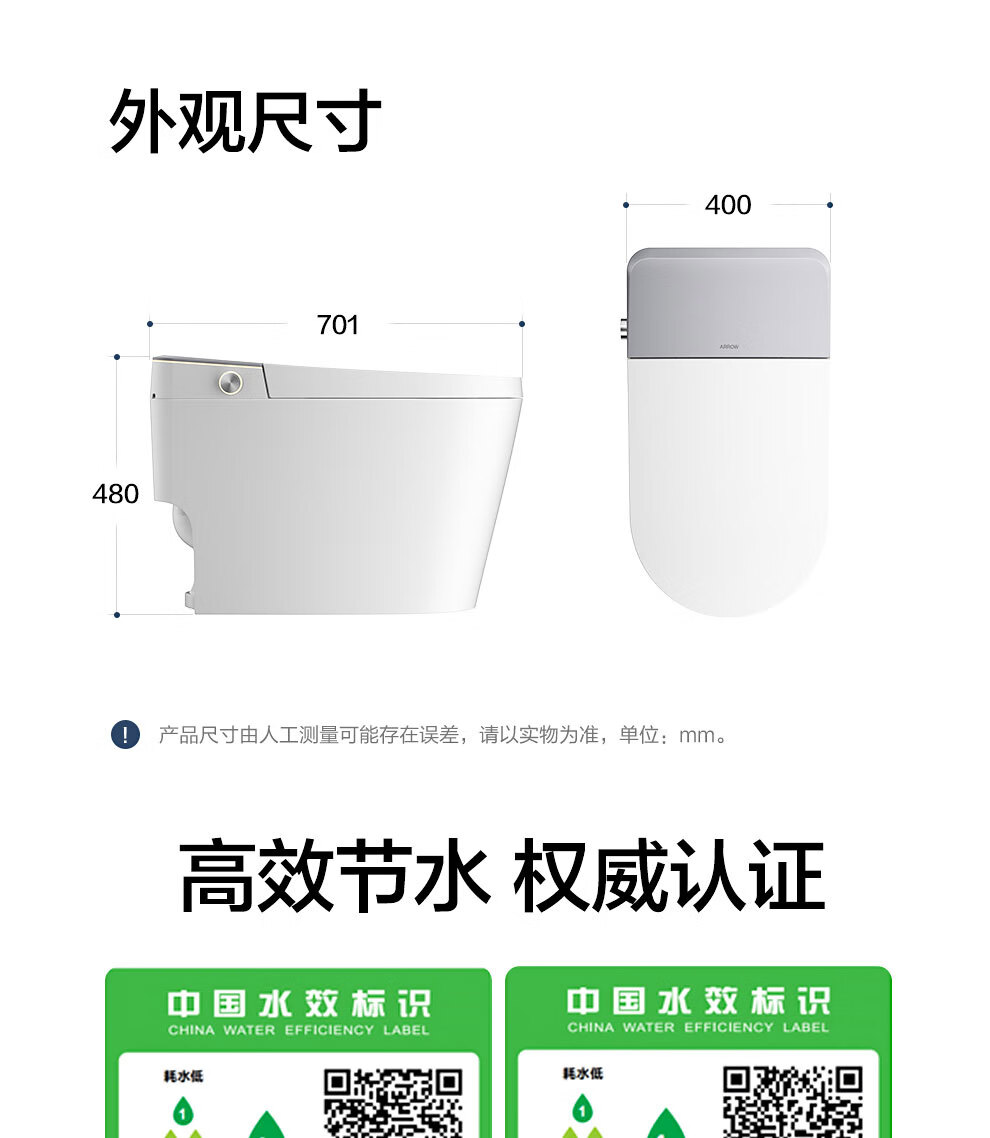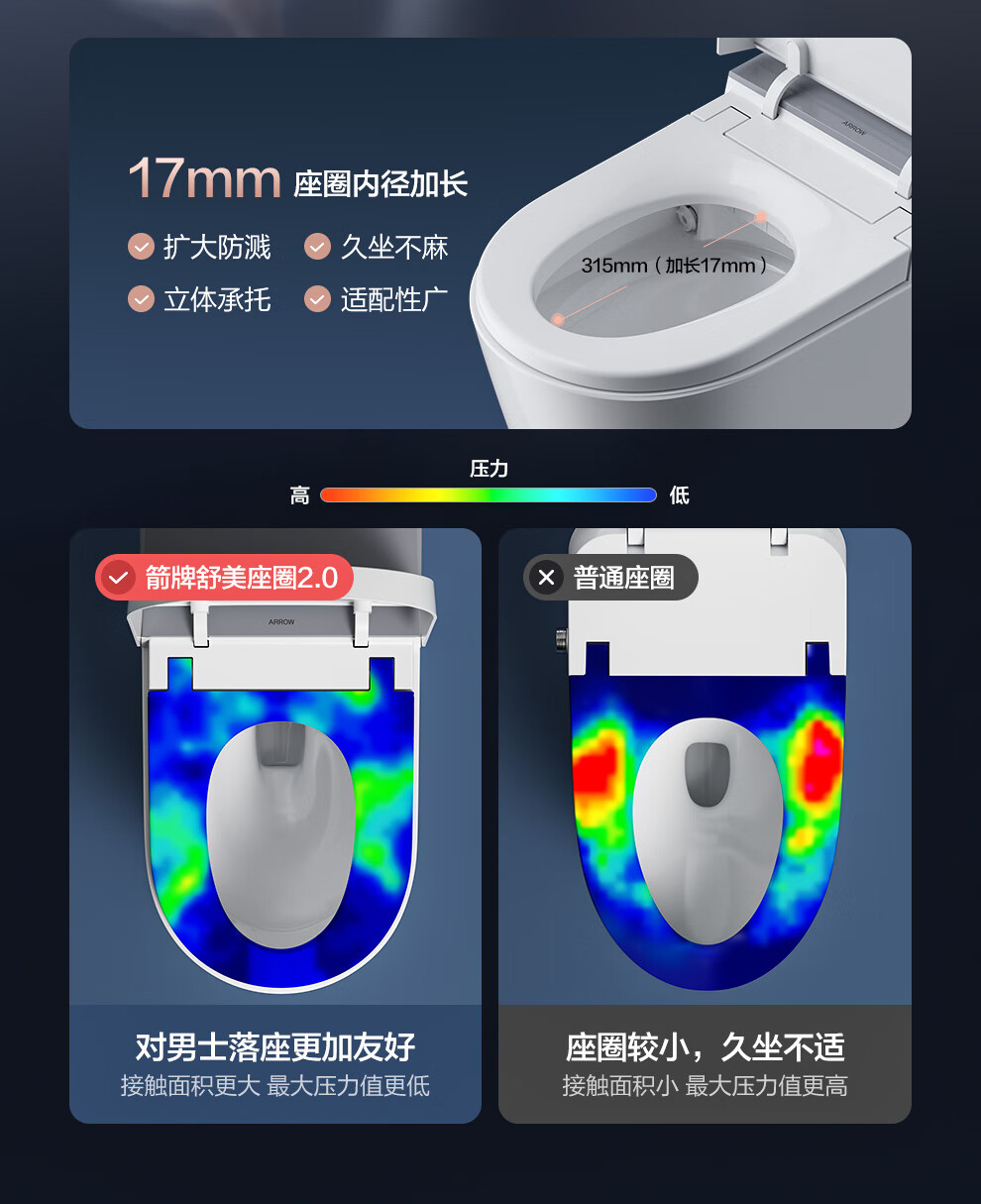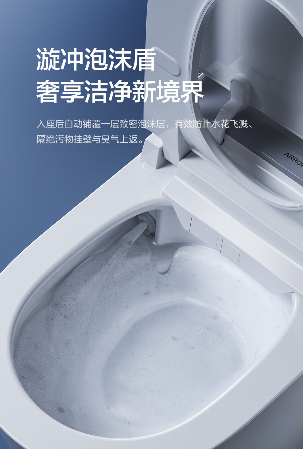 箭牌(ARROW)智能马桶京东联合旋风冲J1Pro旋风魔力泡自动翻盖1208-PM 305坑距