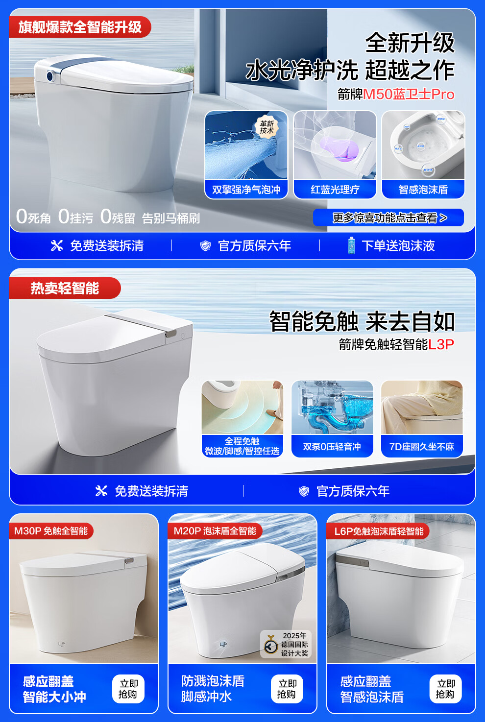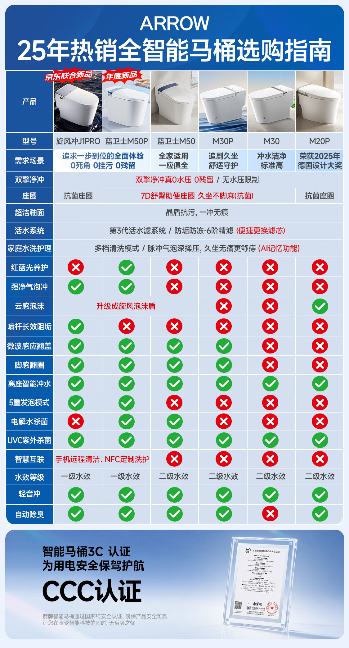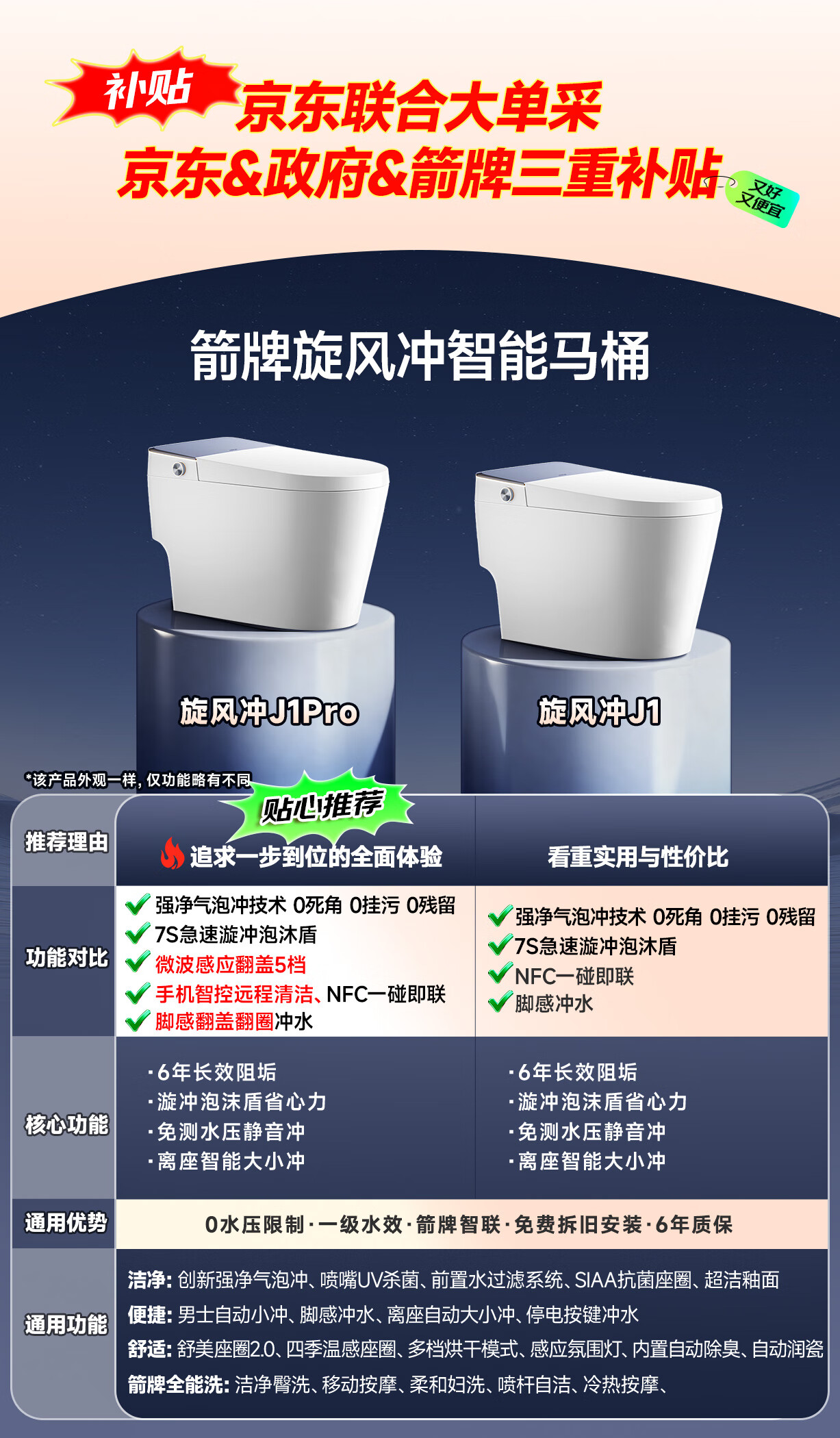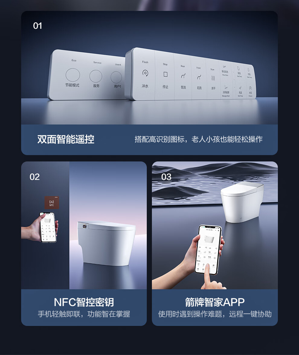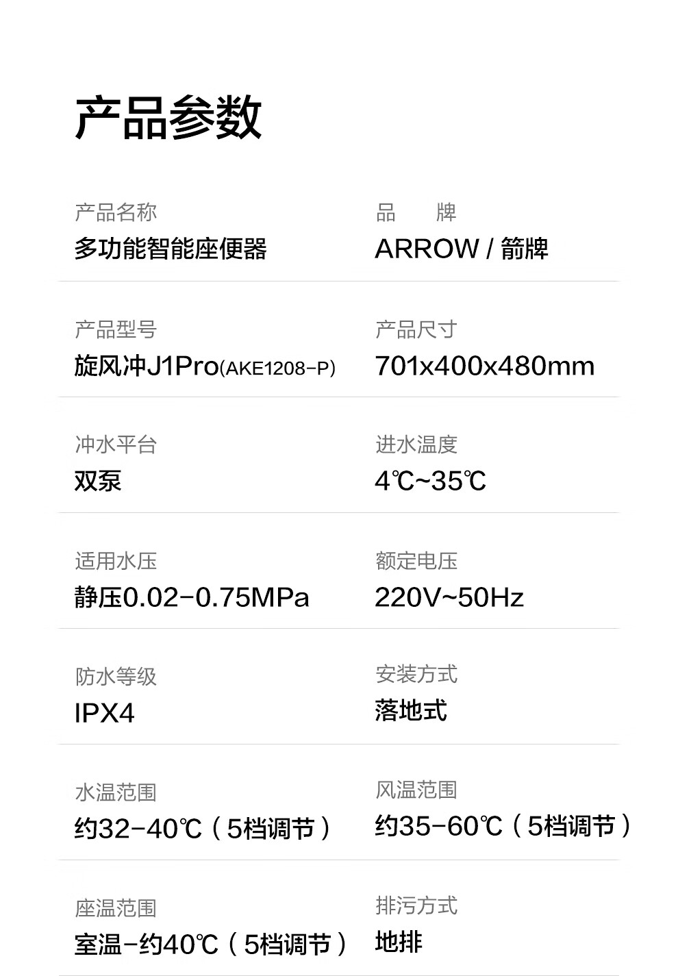 箭牌(ARROW)智能马桶京东联合旋风冲J1Pro旋风魔力泡自动翻盖1208-PM 305坑距