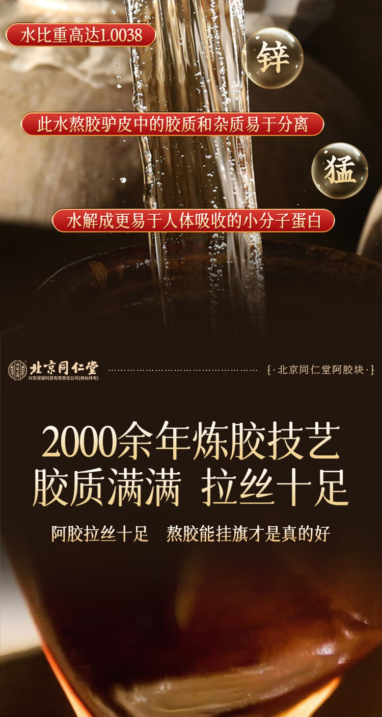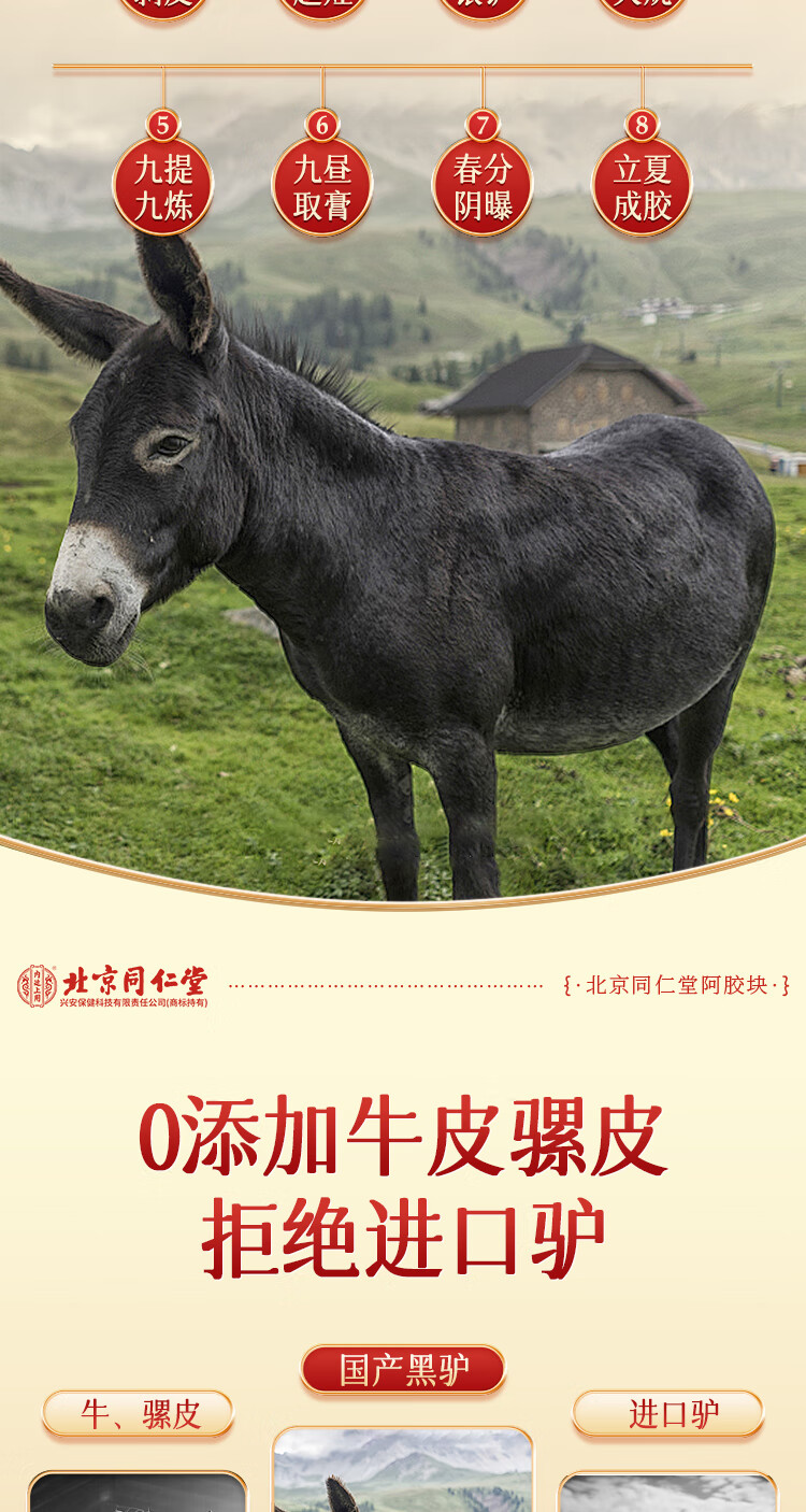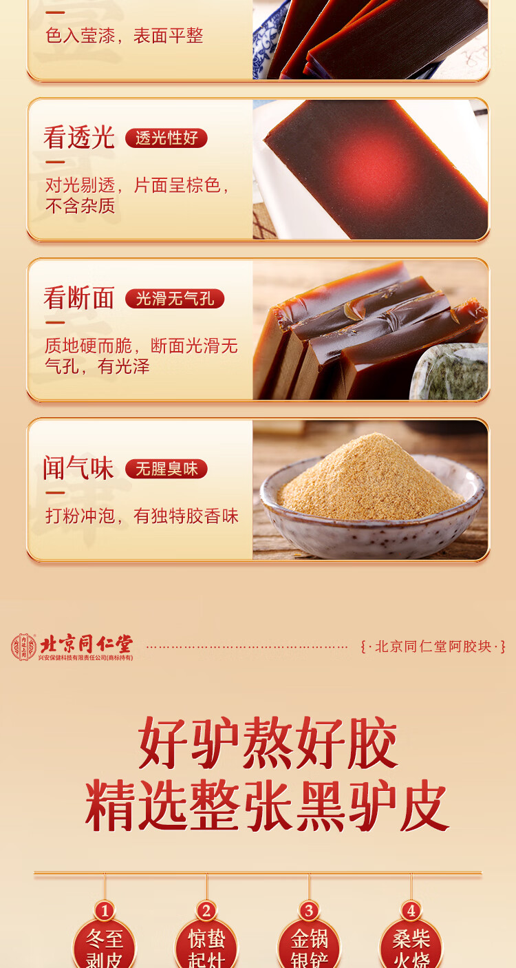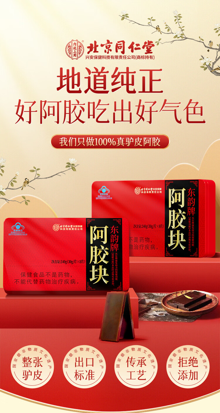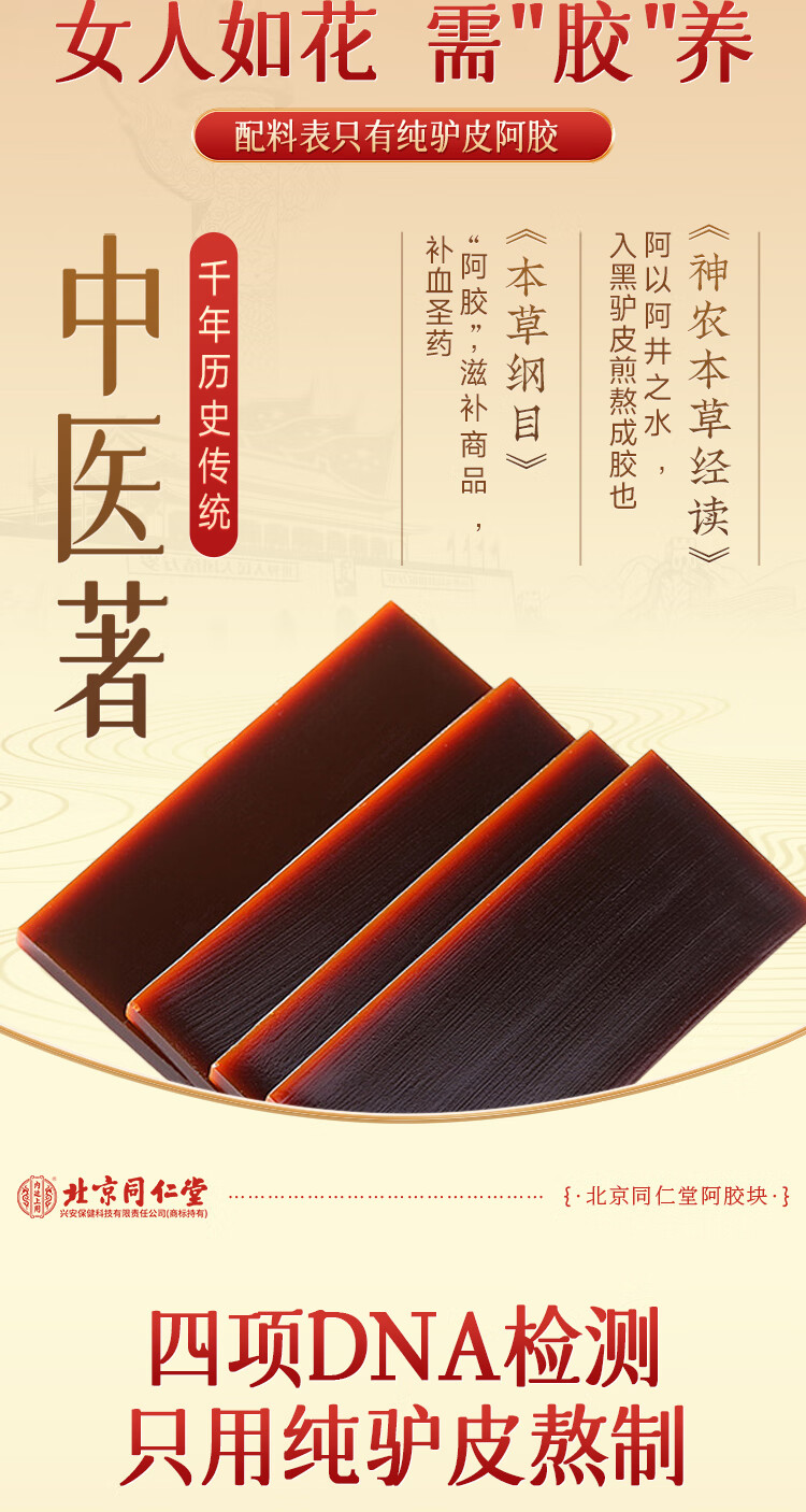 内廷上用北京同仁堂阿胶块240g 100%真驴皮熬制补养气血可打粉熬糕滋补品