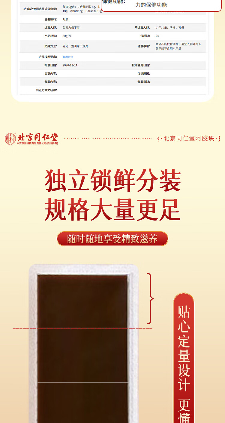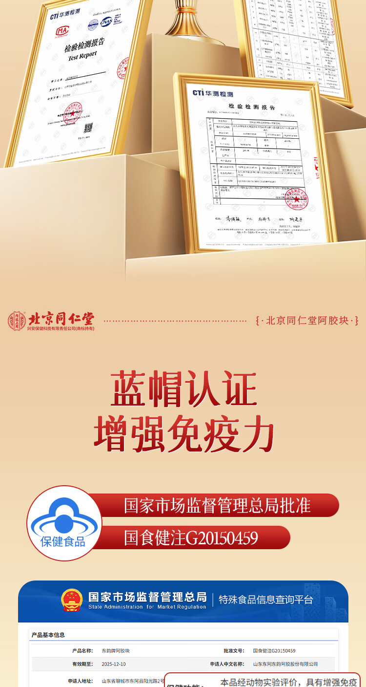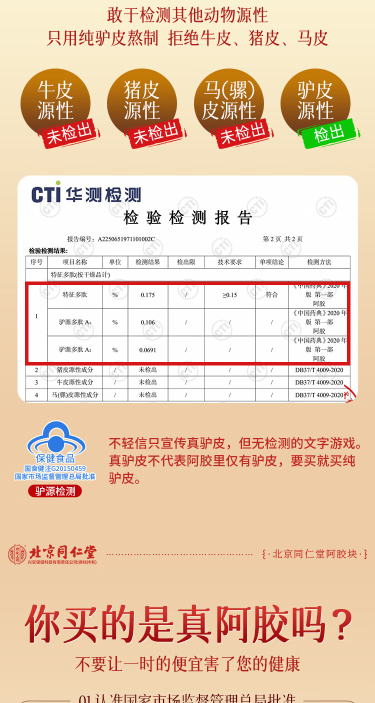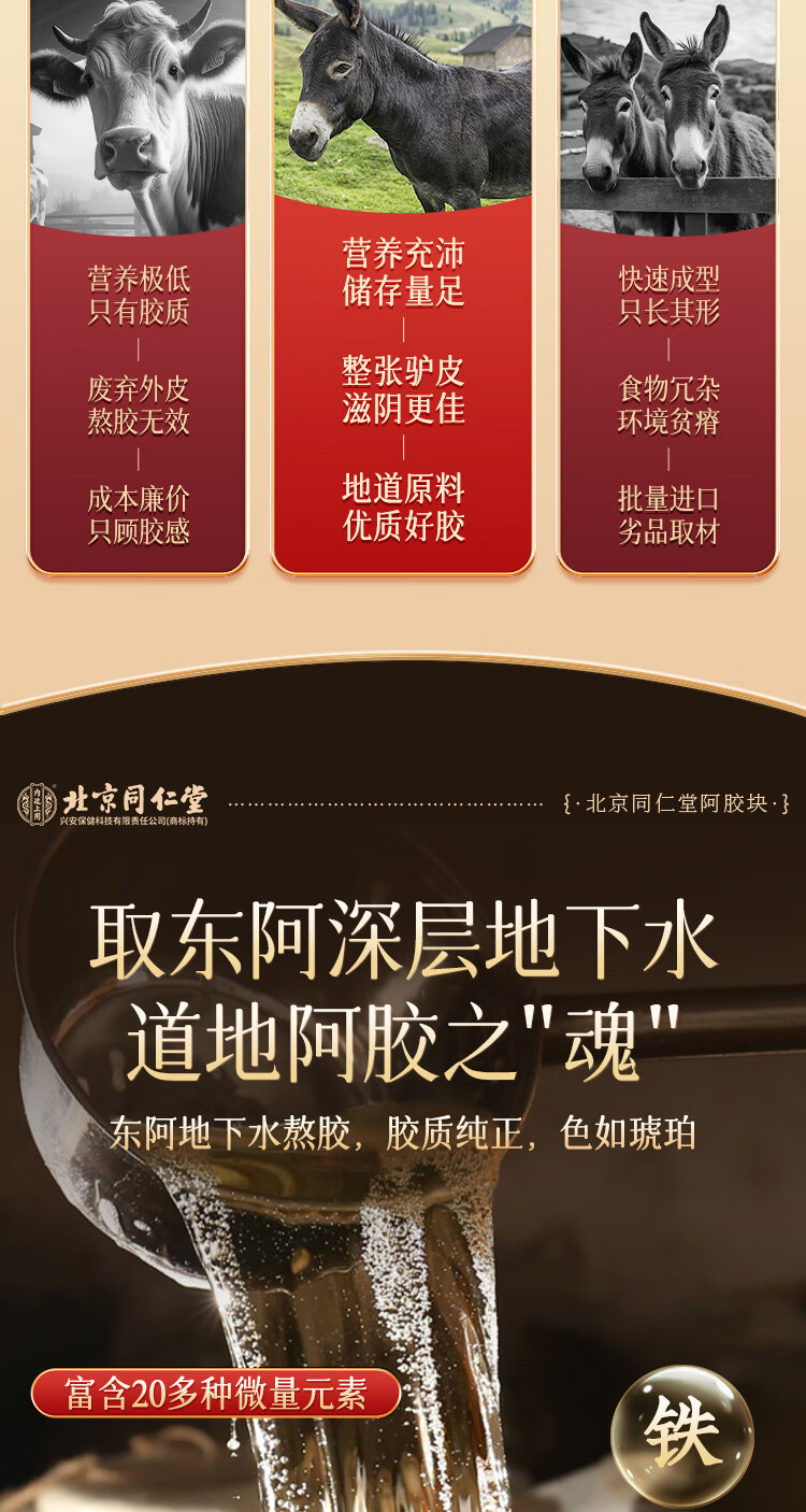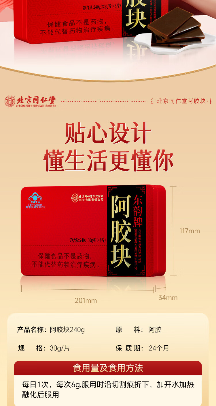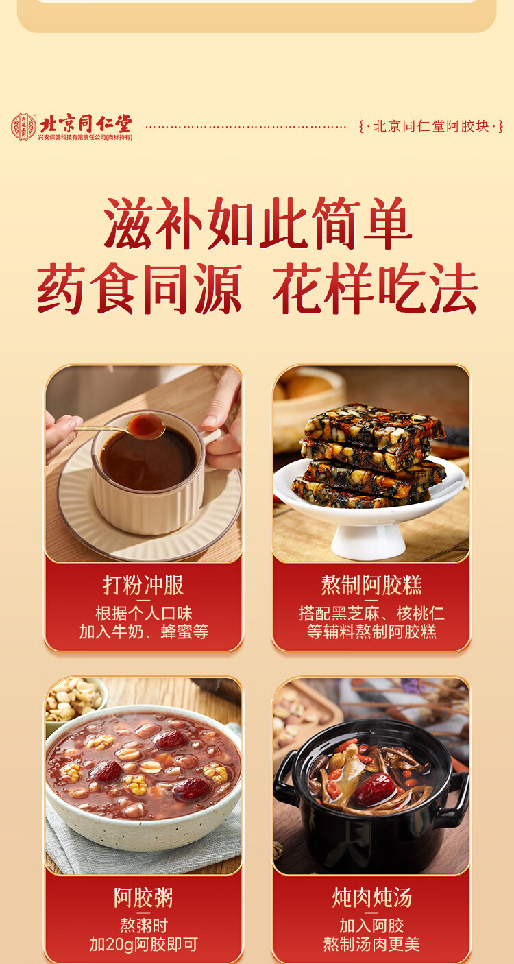内廷上用北京同仁堂阿胶块240g 100%真驴皮熬制补养气血可打粉熬糕滋补品