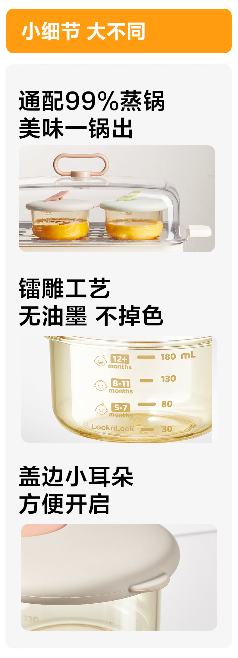 乐扣乐扣宝宝辅食盒食物存储盒蒸蛋碗婴儿辅食分装盒ppsu外出便携带盖小碗