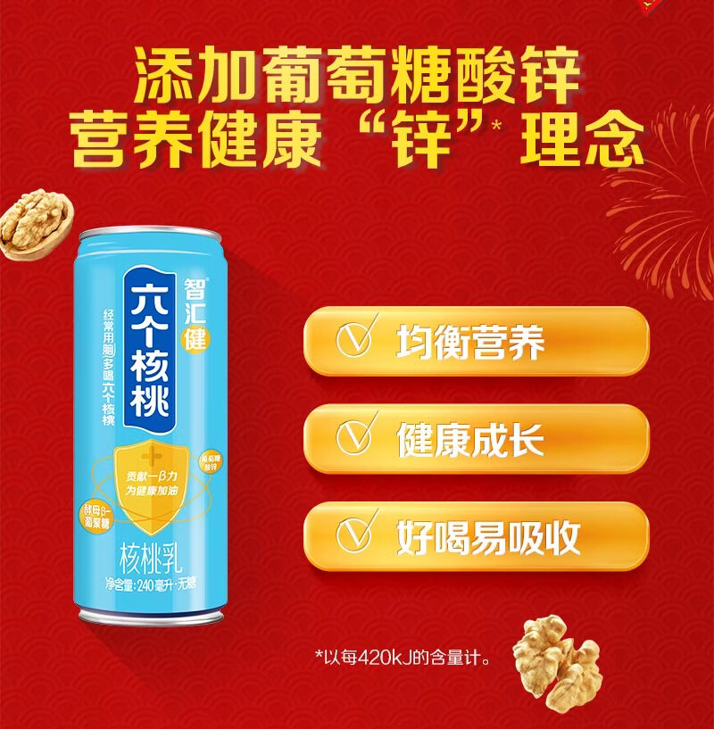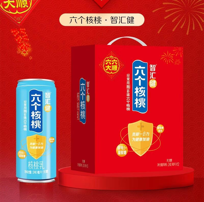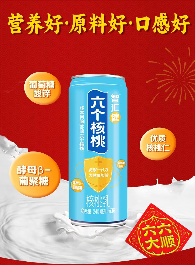 六个核桃智汇健无糖核桃乳240ml*12罐*2箱植物蛋白饮料【年货好礼】