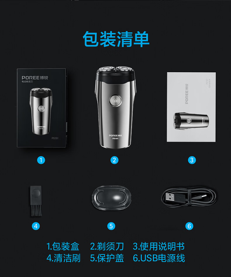 飞科博锐电动剃须刀男士刮胡刀充电便携双头旋转式胡须刀迷你款 生日礼物送爸爸老公 PS191