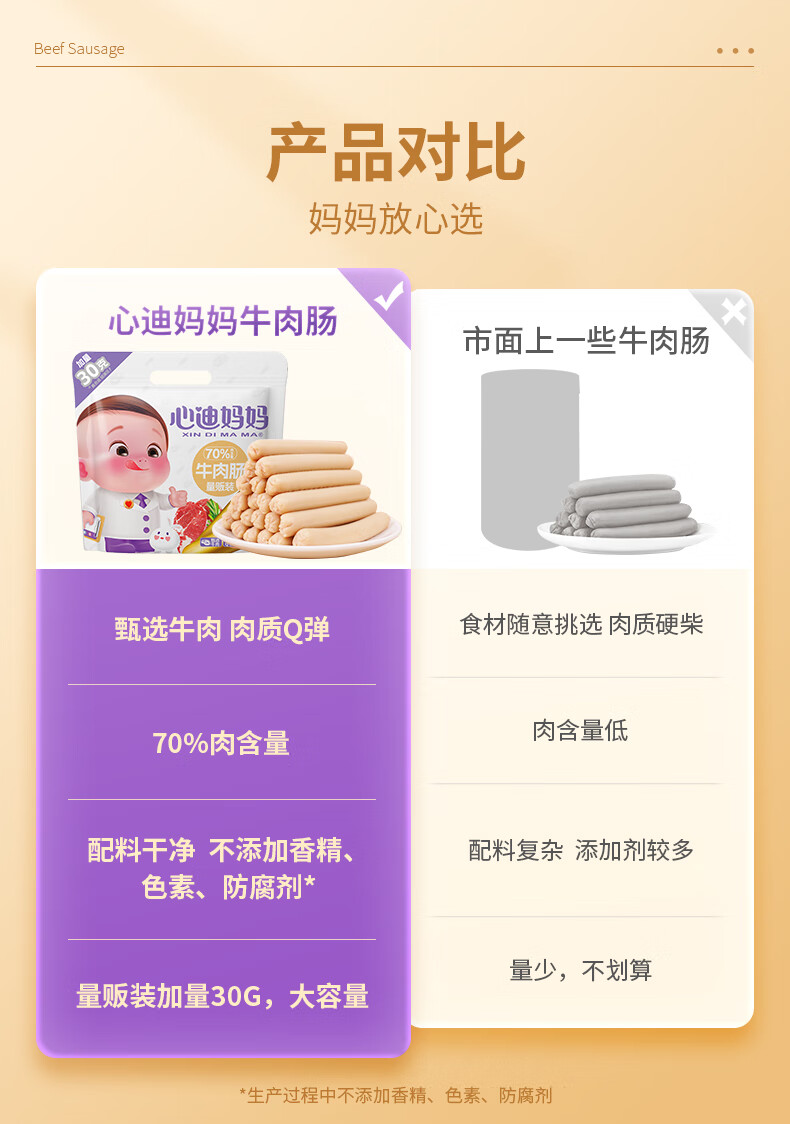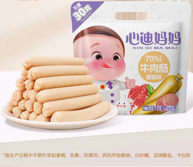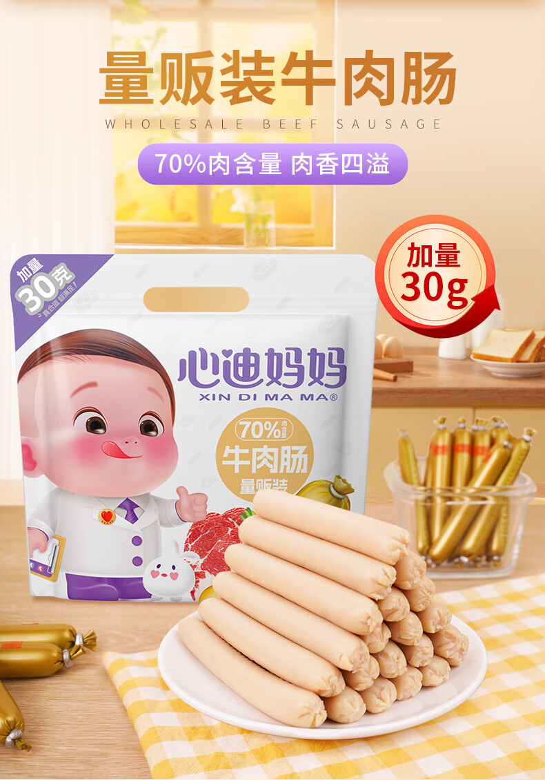 心迪妈妈牛肉肠量贩装480g/60支(加量30g) 宝宝零食儿童早餐营养即食火腿
