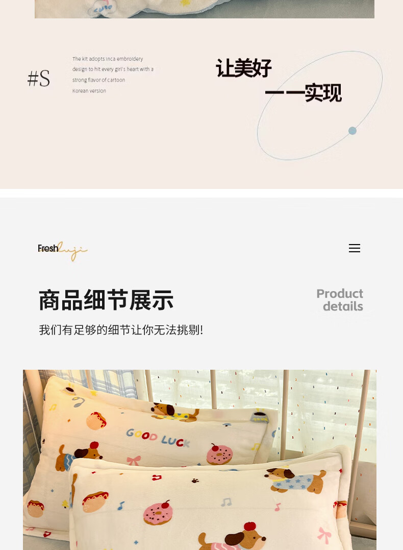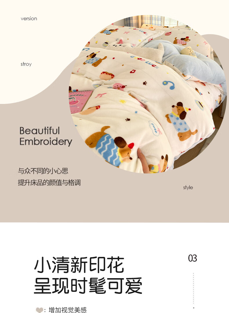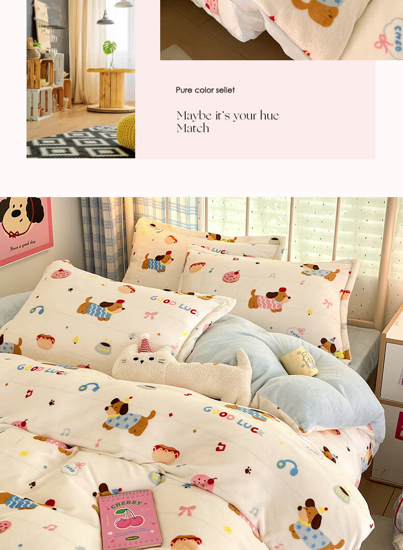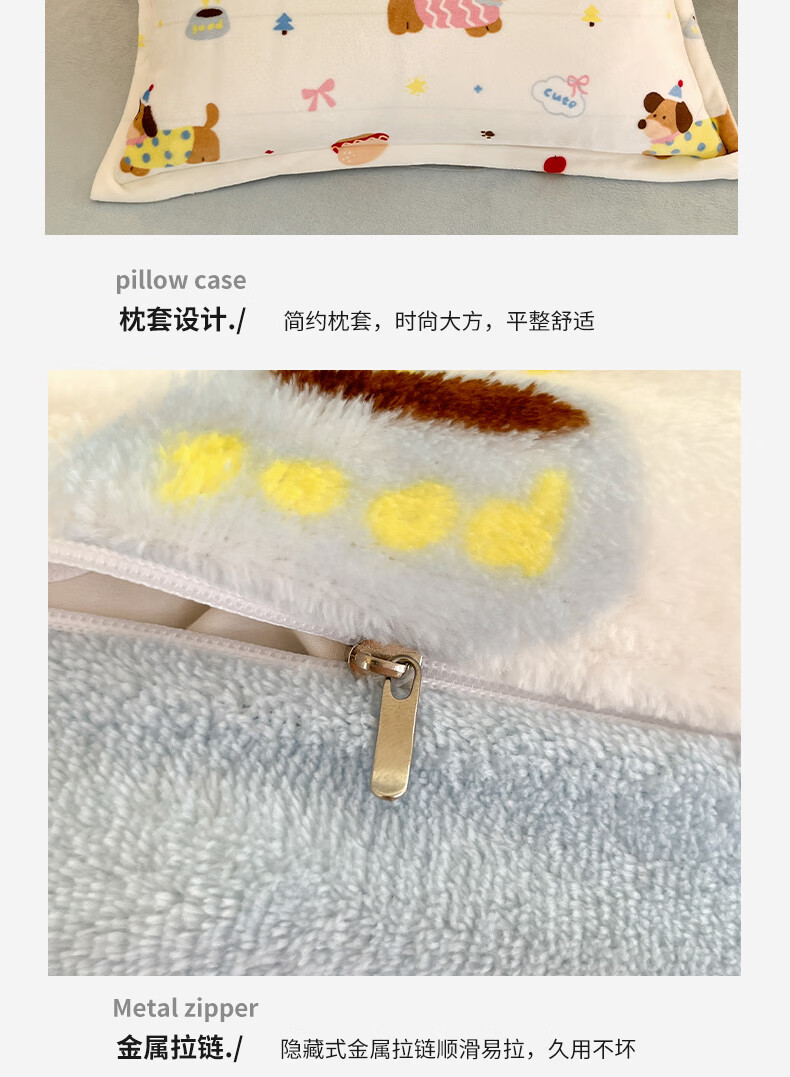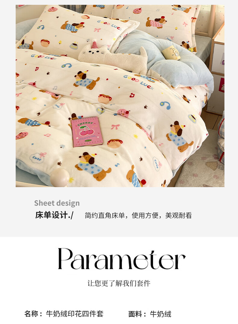 猫人(MiiOW)卡通牛奶绒床上四件套 珊瑚绒冬季加厚被套床单床笠单双人三件套 快乐腊肠蓝 0.9 床单款 三件套(被套150*200cm)