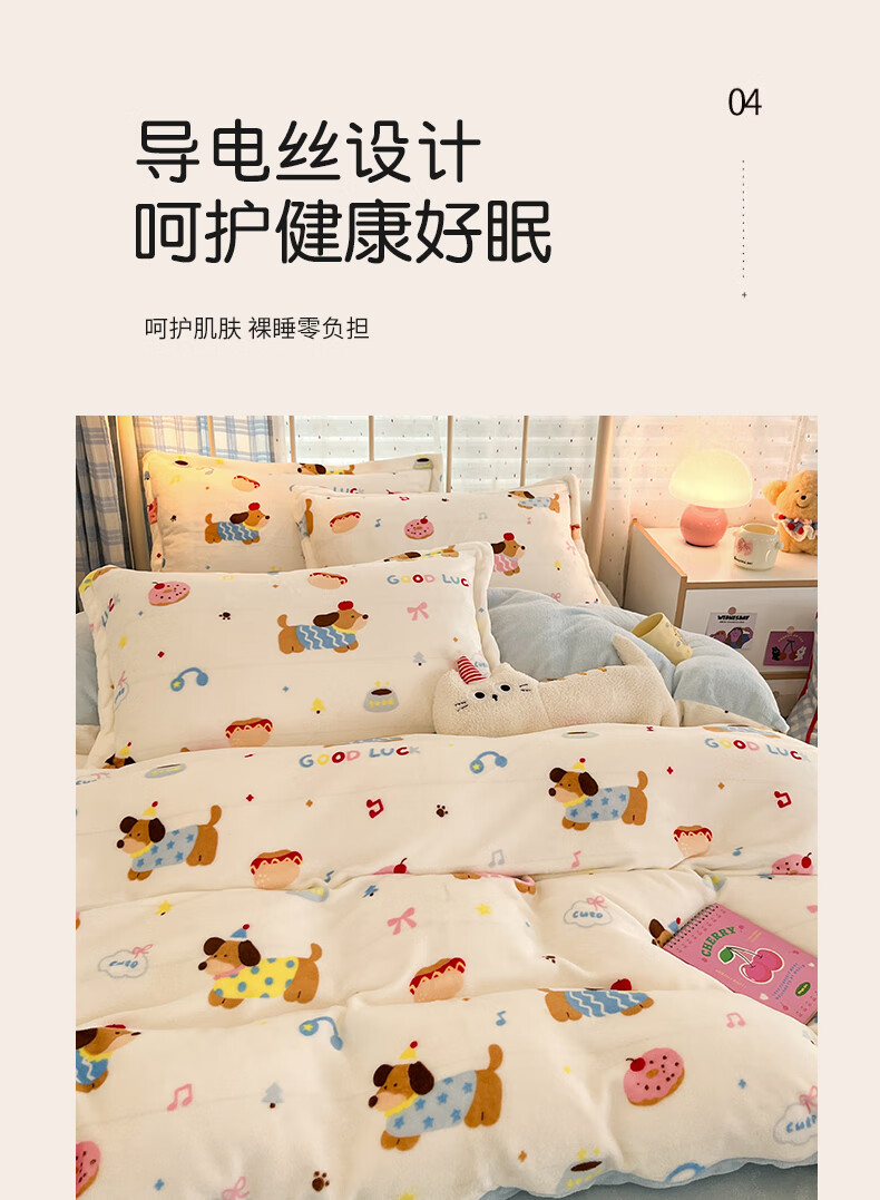 VJE小清新牛奶绒四件套冬季双面绒抗静电床单被套学生宿舍三件套床品 背带兔 三件套1.2m 床单款 -被套150*200cm