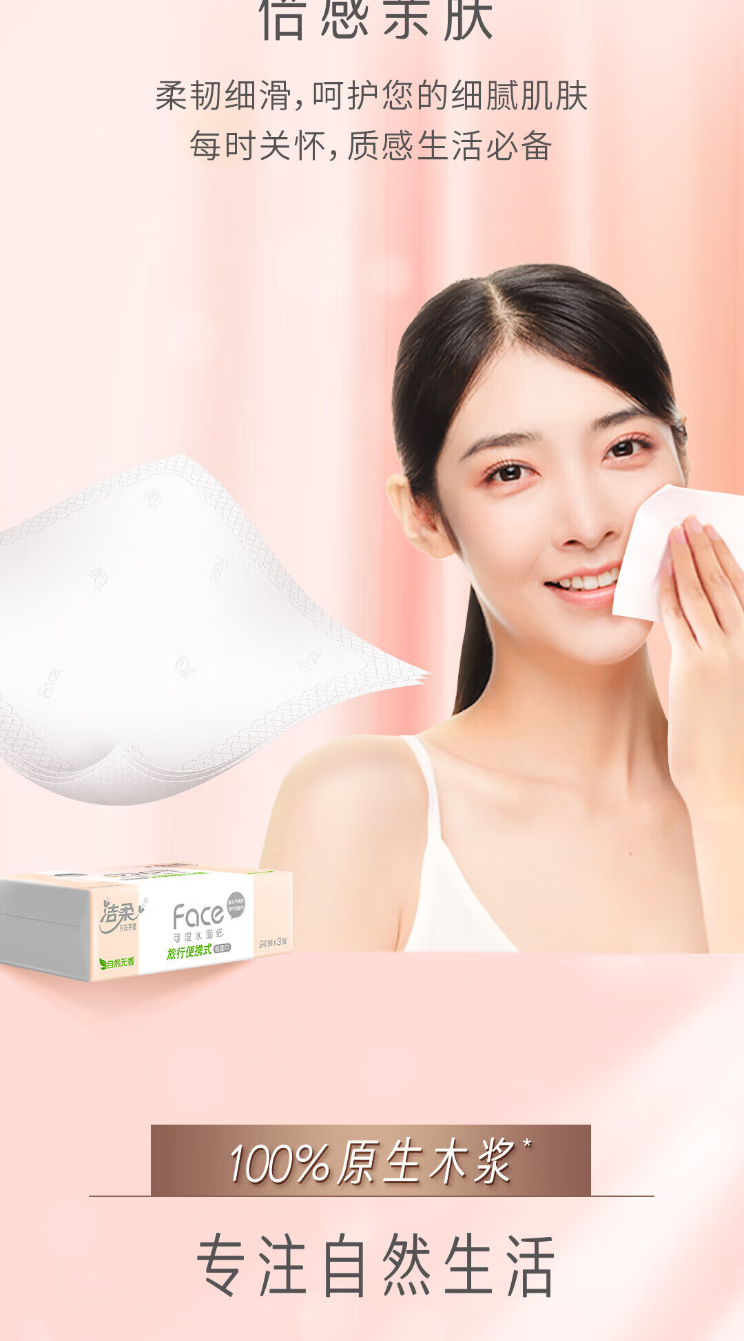 洁柔一次性洗脸巾平纹挂抽两用柔软亲肤母婴可用卸妆洁面一次性擦脸巾 100抽*3包【经典款】