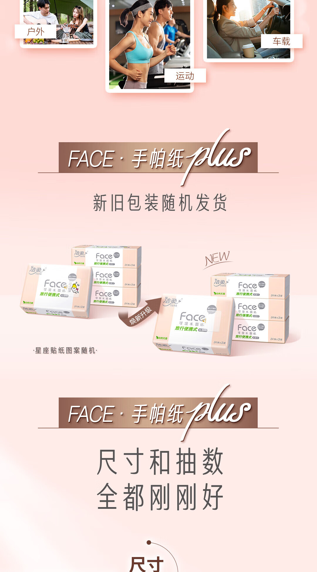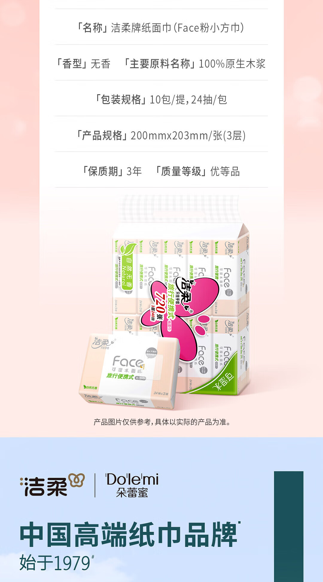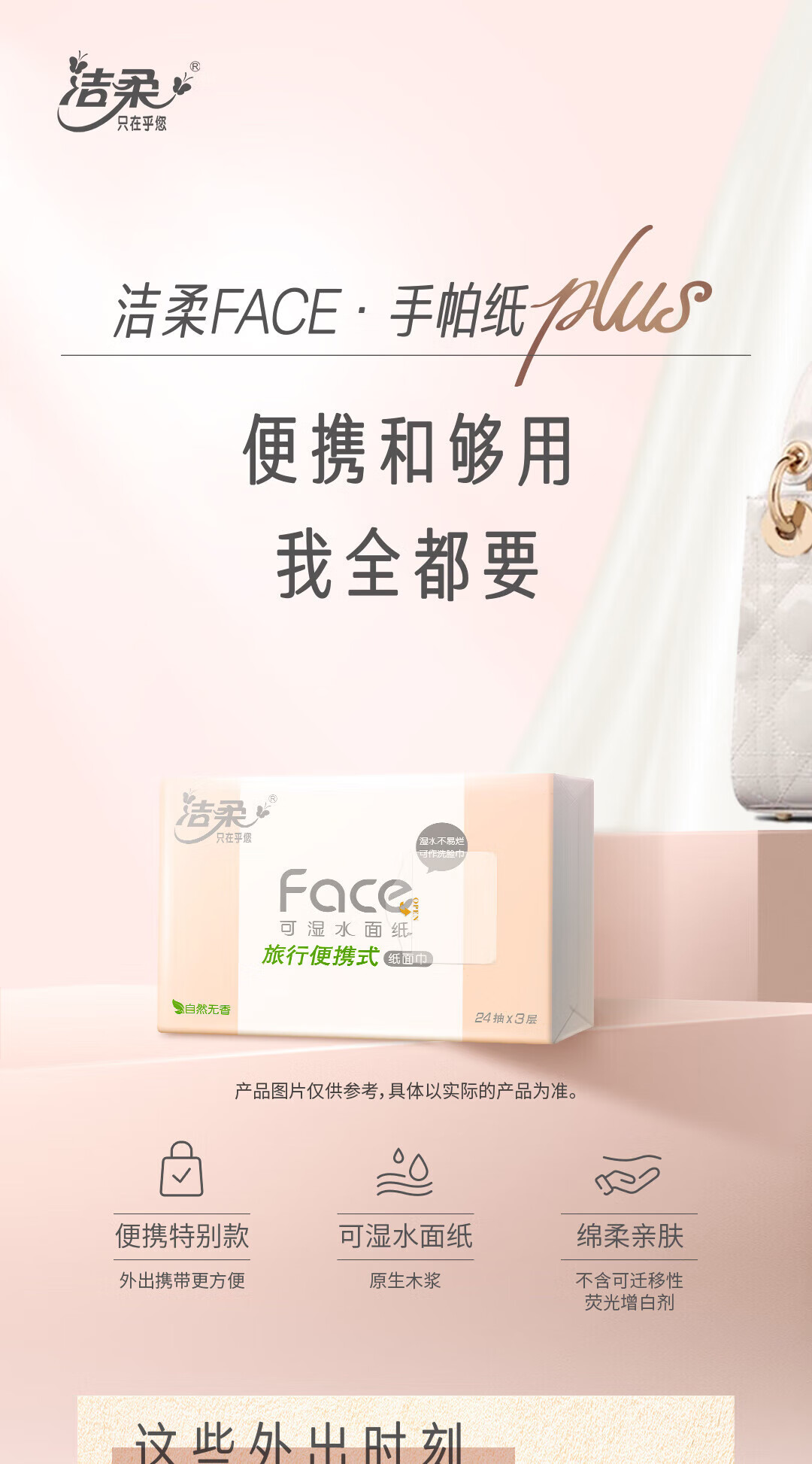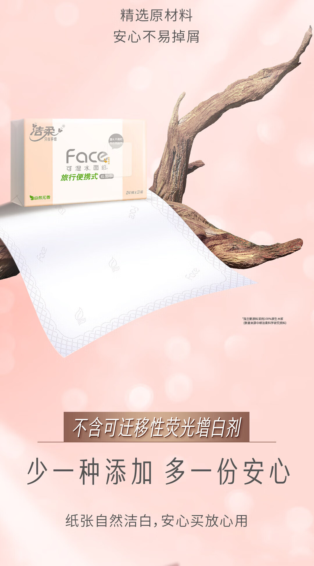 洁柔抽纸粉Face花园面巾纸软抽餐巾纸家庭用卫生纸擦手纸干湿两用 3层 72张*3包