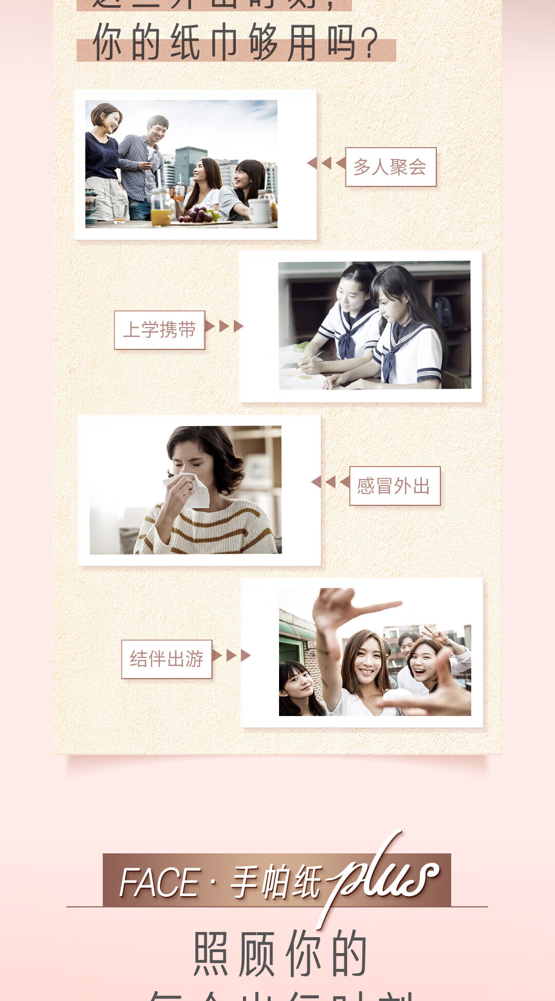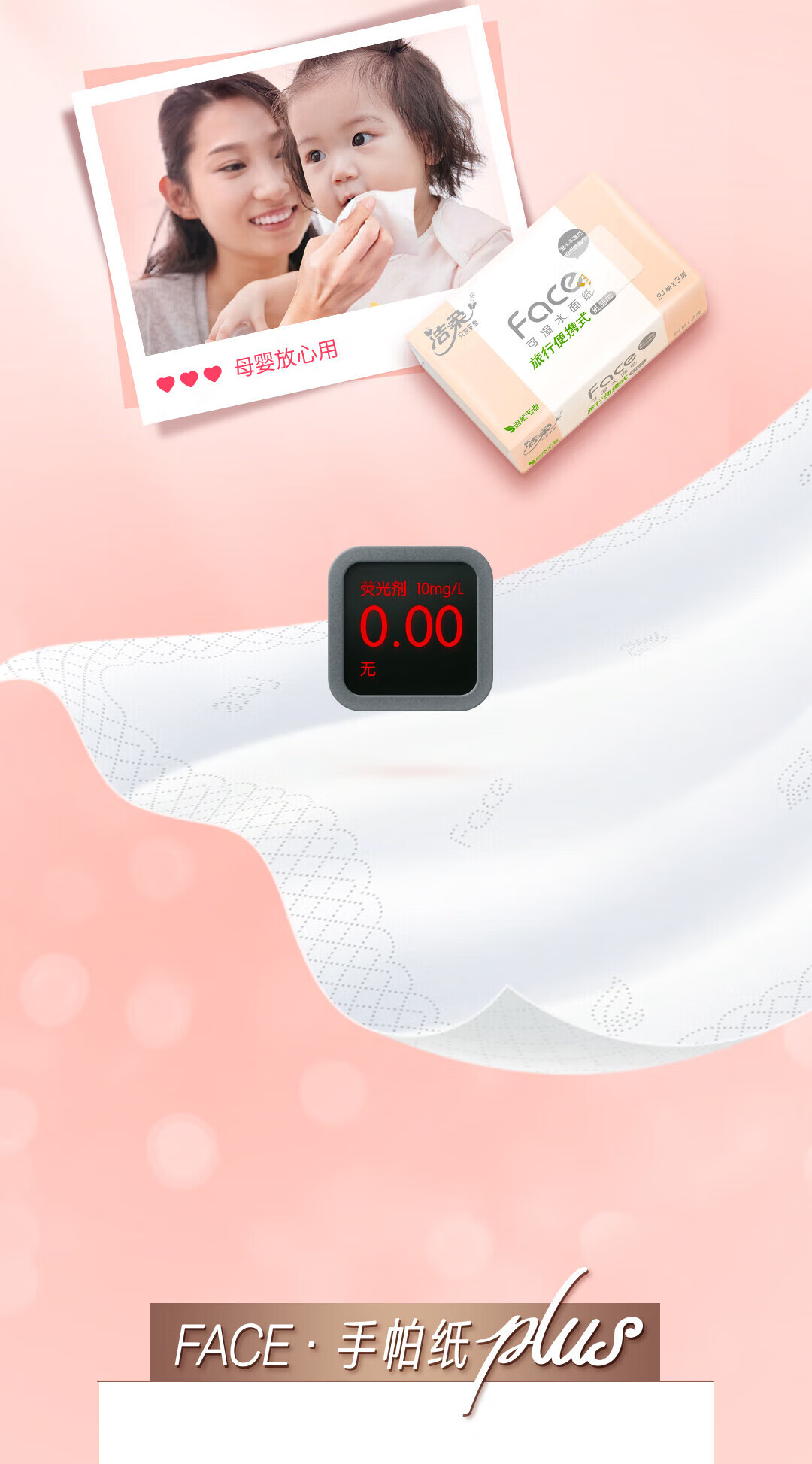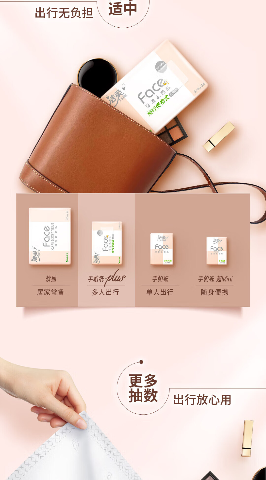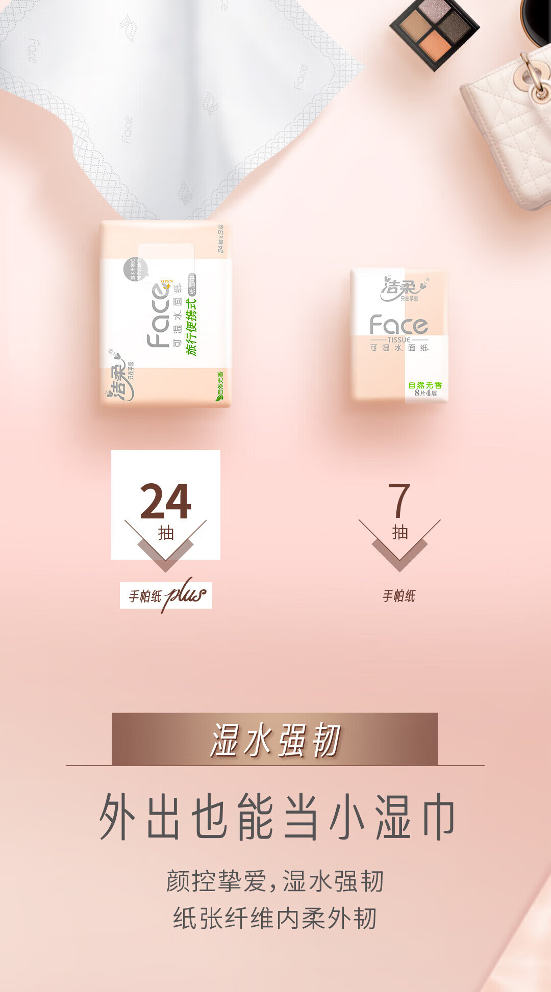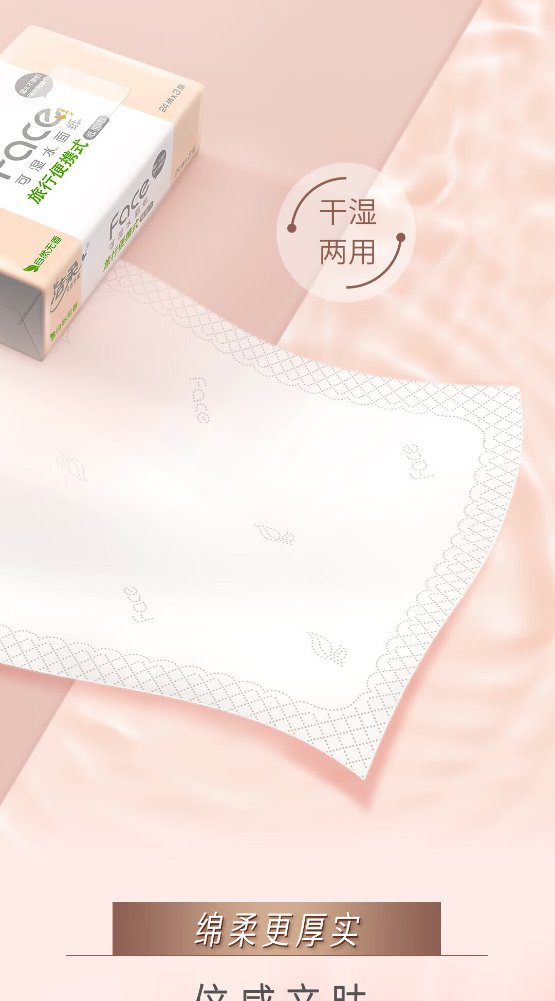 洁柔抽纸粉Face花园面巾纸软抽餐巾纸家庭用卫生纸擦手纸干湿两用 3层 72张*3包