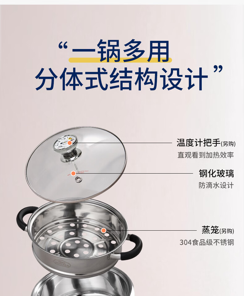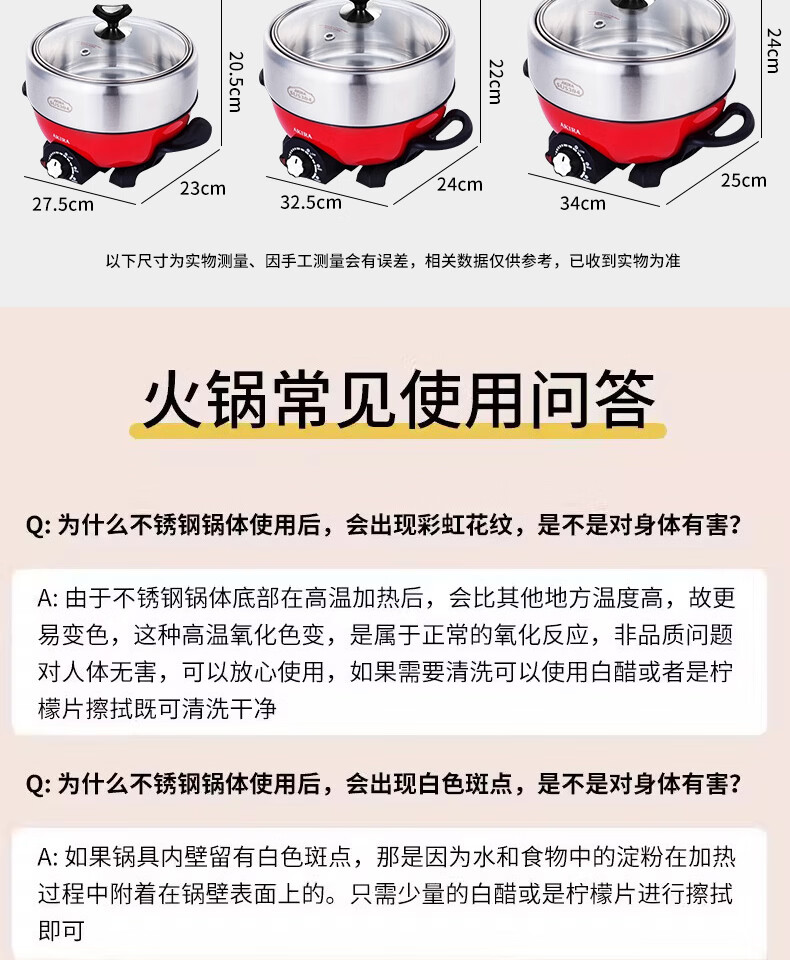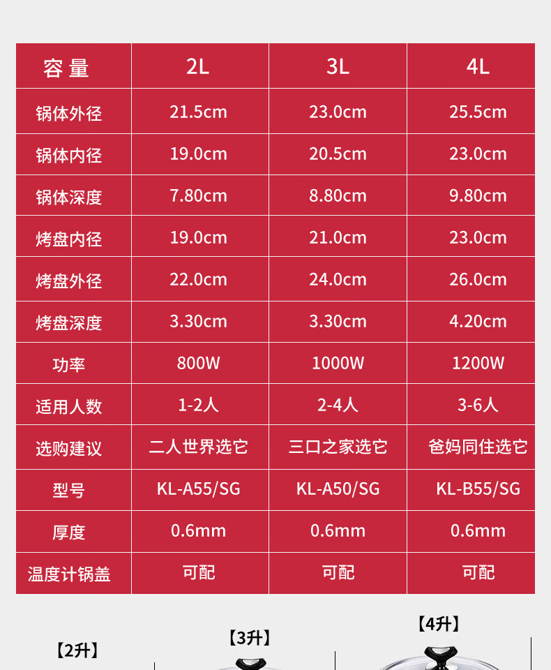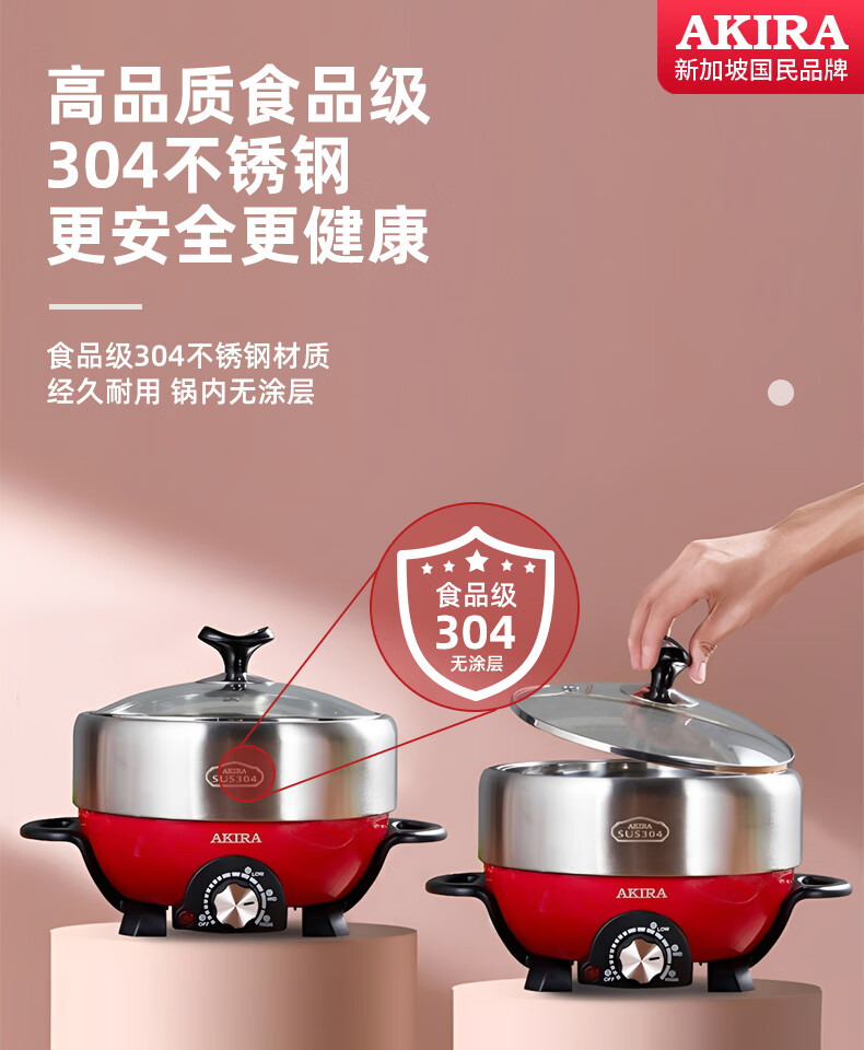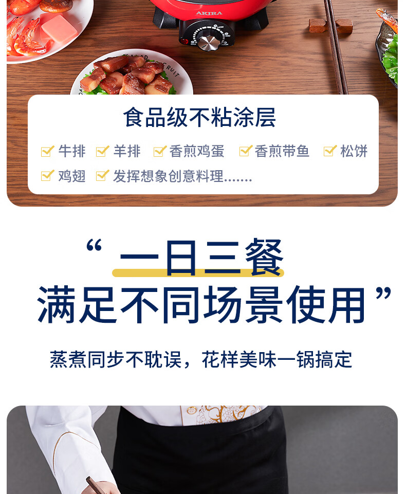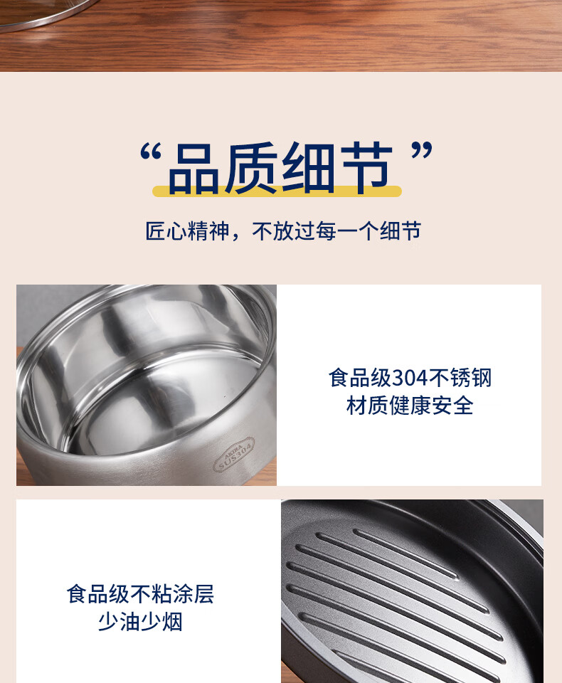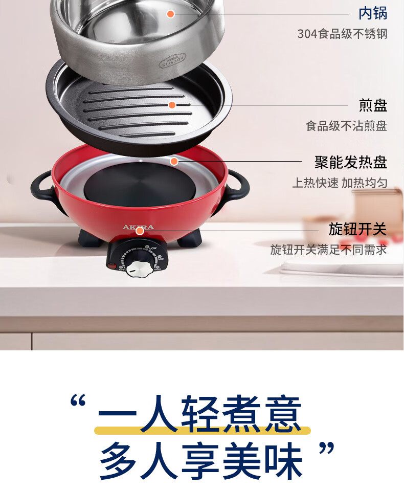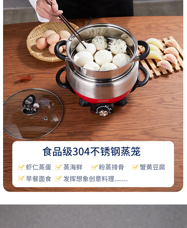 爱家乐电火锅电热锅烧烤盘加厚不锈钢多功能分体式火锅家用迷你2升A55 1-2人适用 2L 标配(无蒸笼和温度计提手)