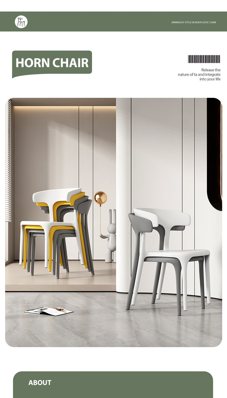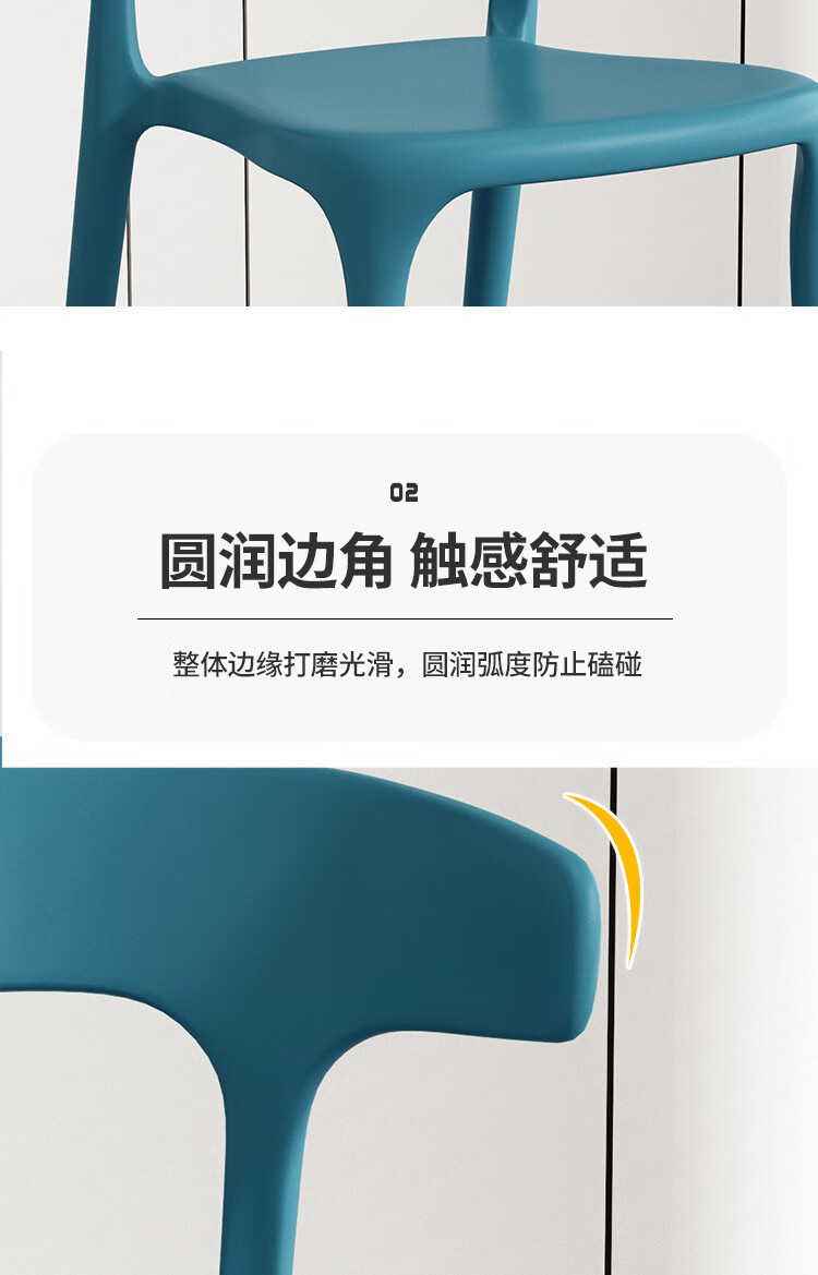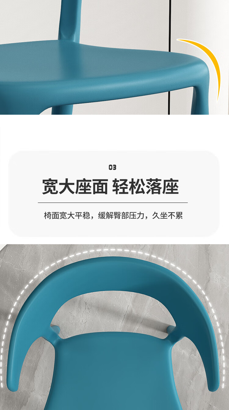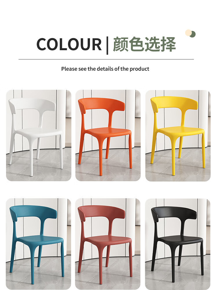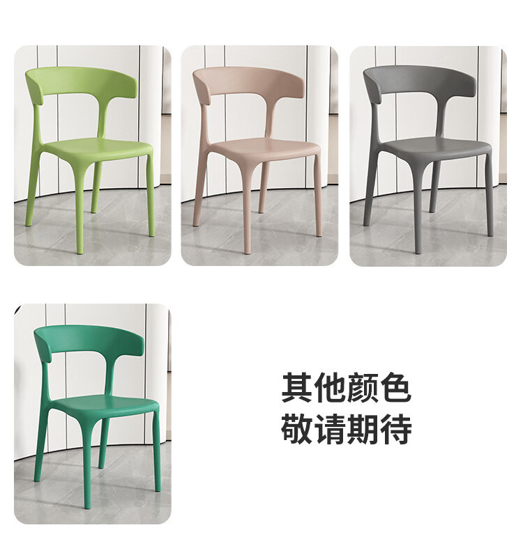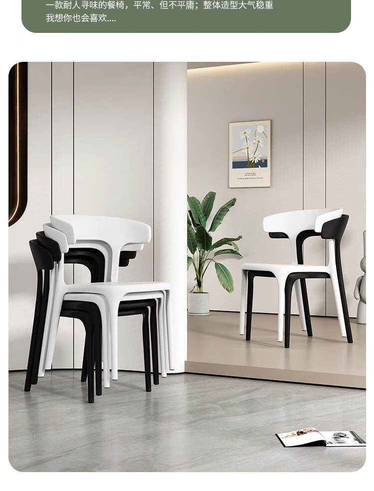 【精选】塑料餐椅家用现代简约餐厅餐桌椅网红商用实用凳子北欧休 正版加厚-神秘黑(塑料牛角椅承重500斤