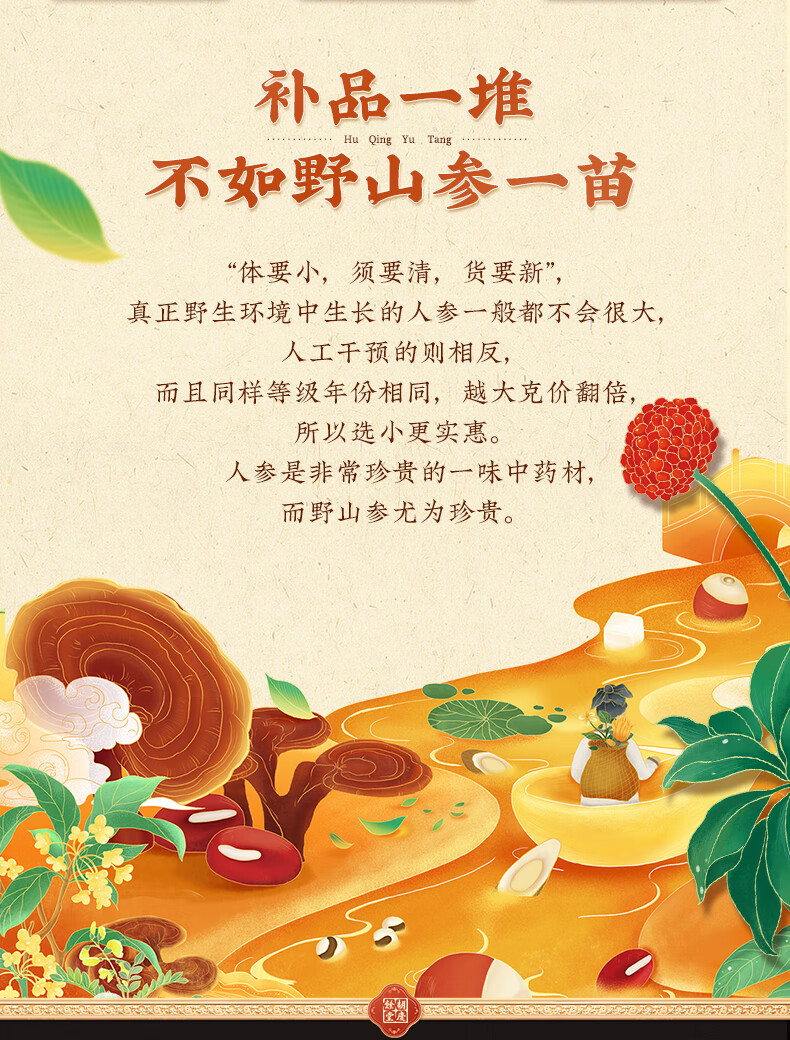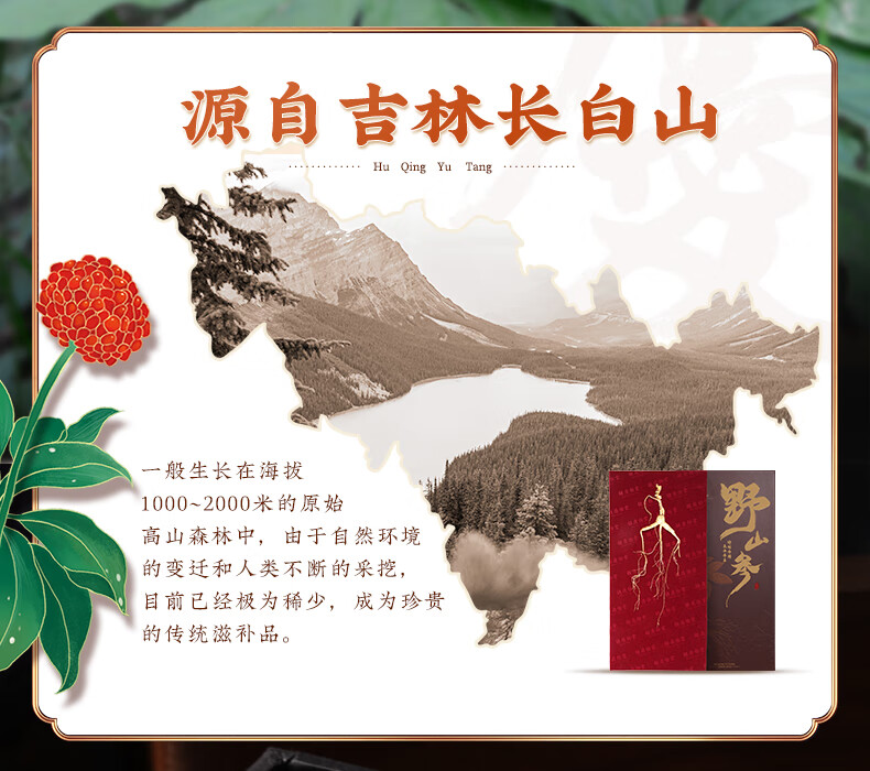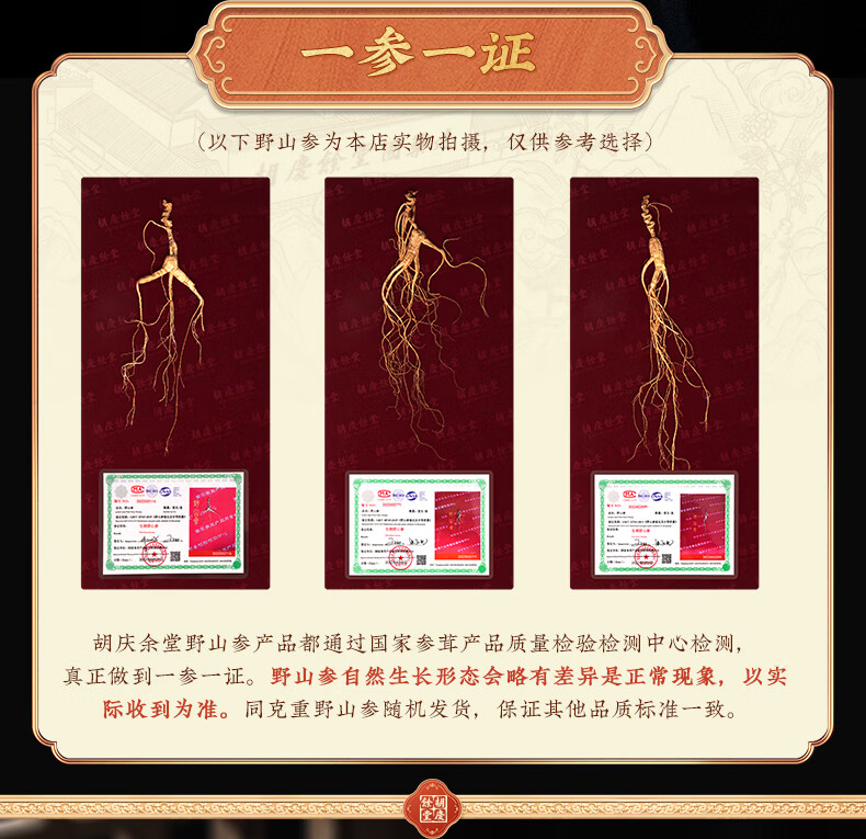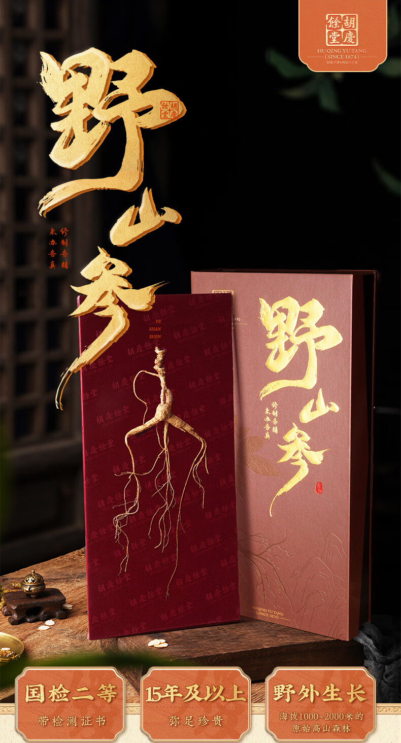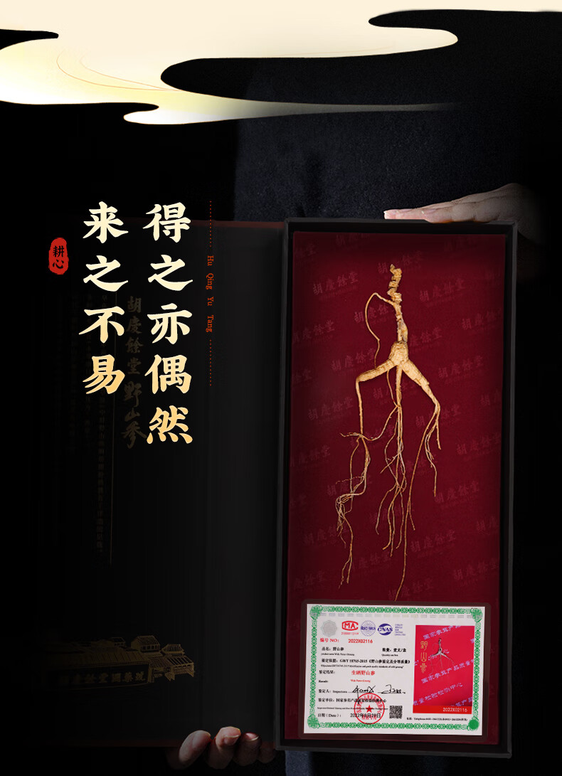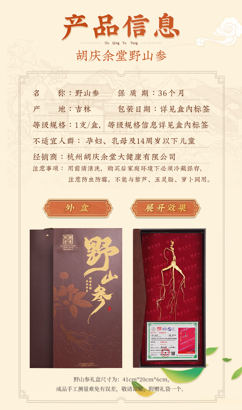 胡庆余堂长白山野山参人参国检4.5-9.8克礼盒装线下同款年货滋补品礼物 (4.8-5.0g) 1支*1盒