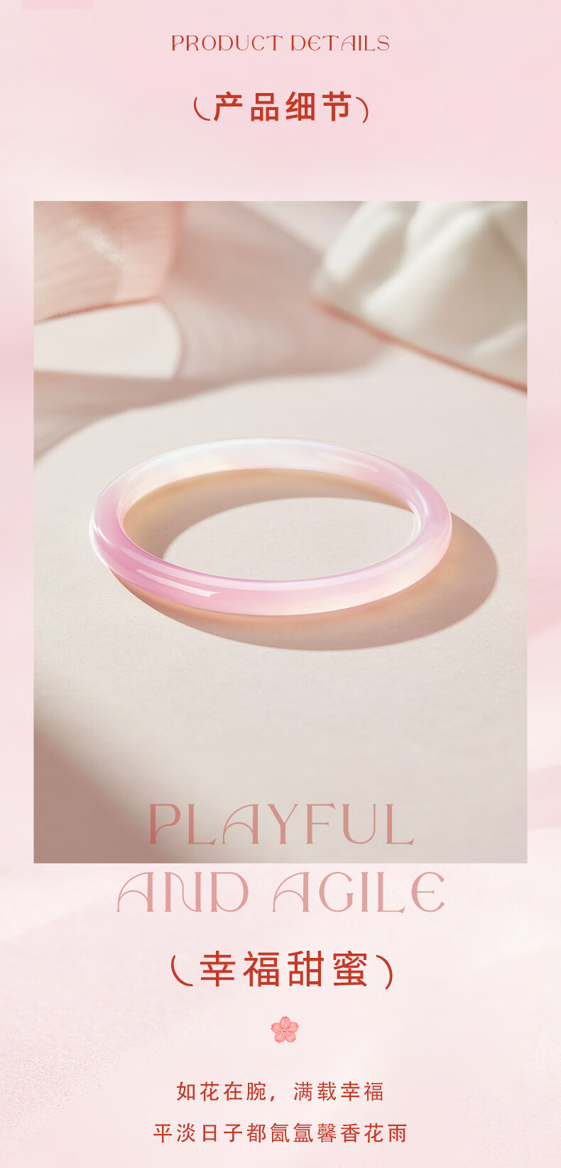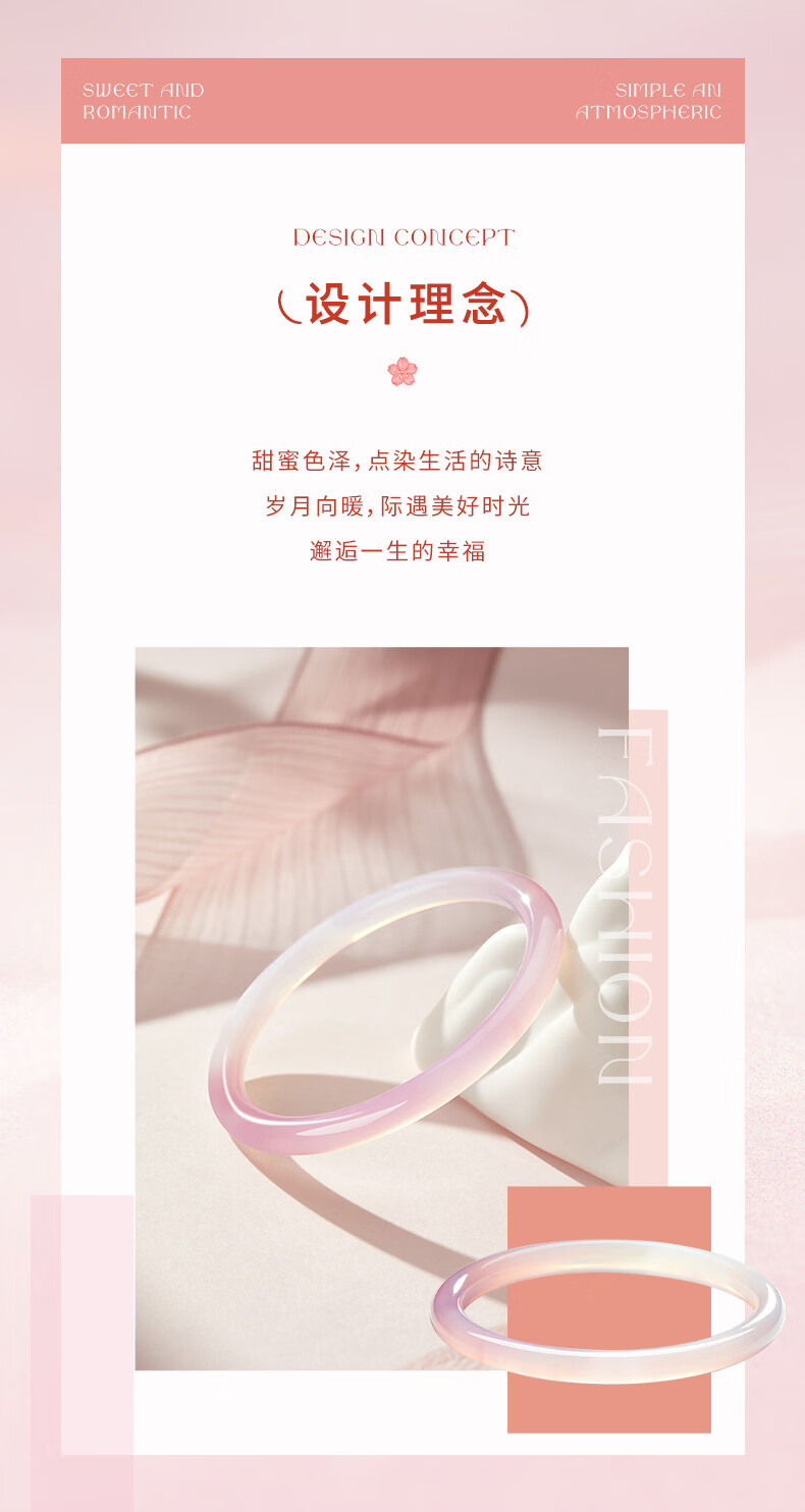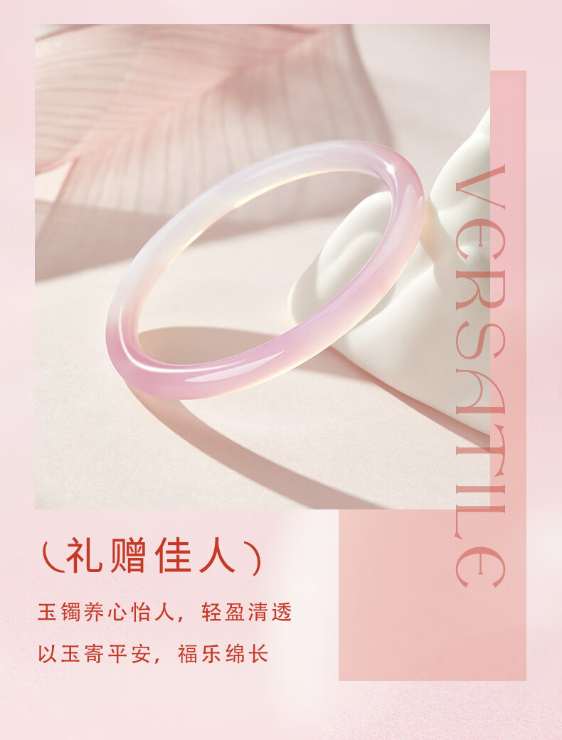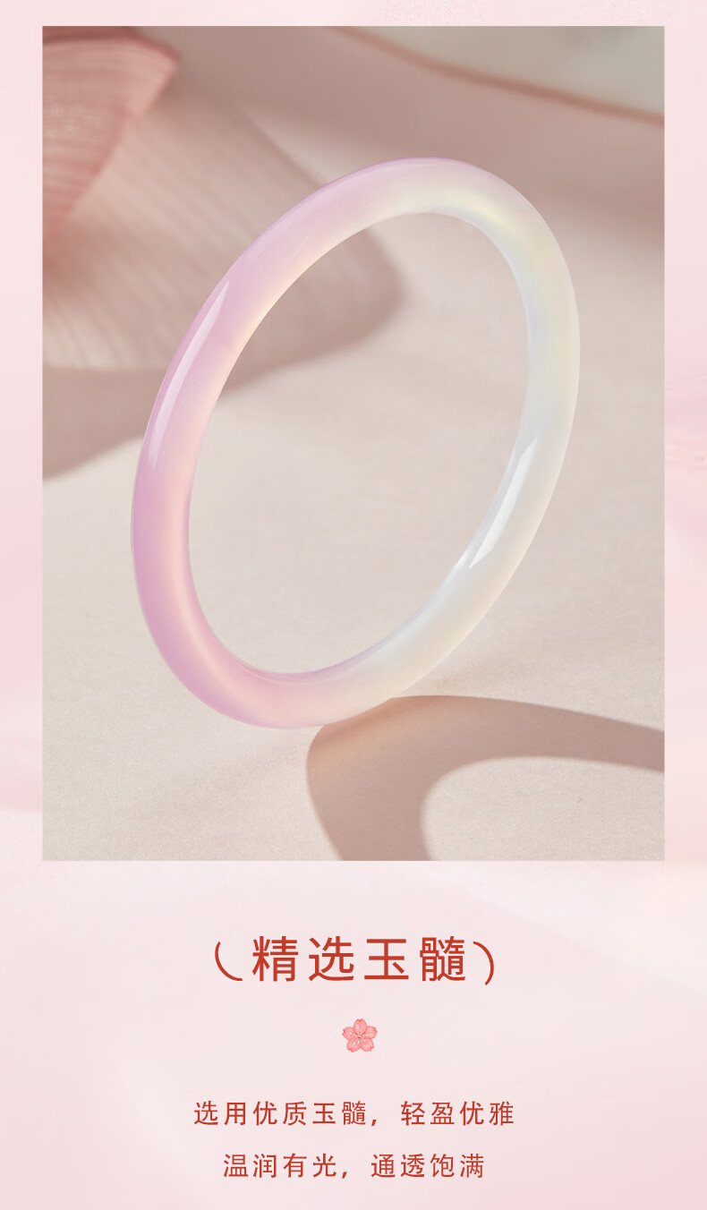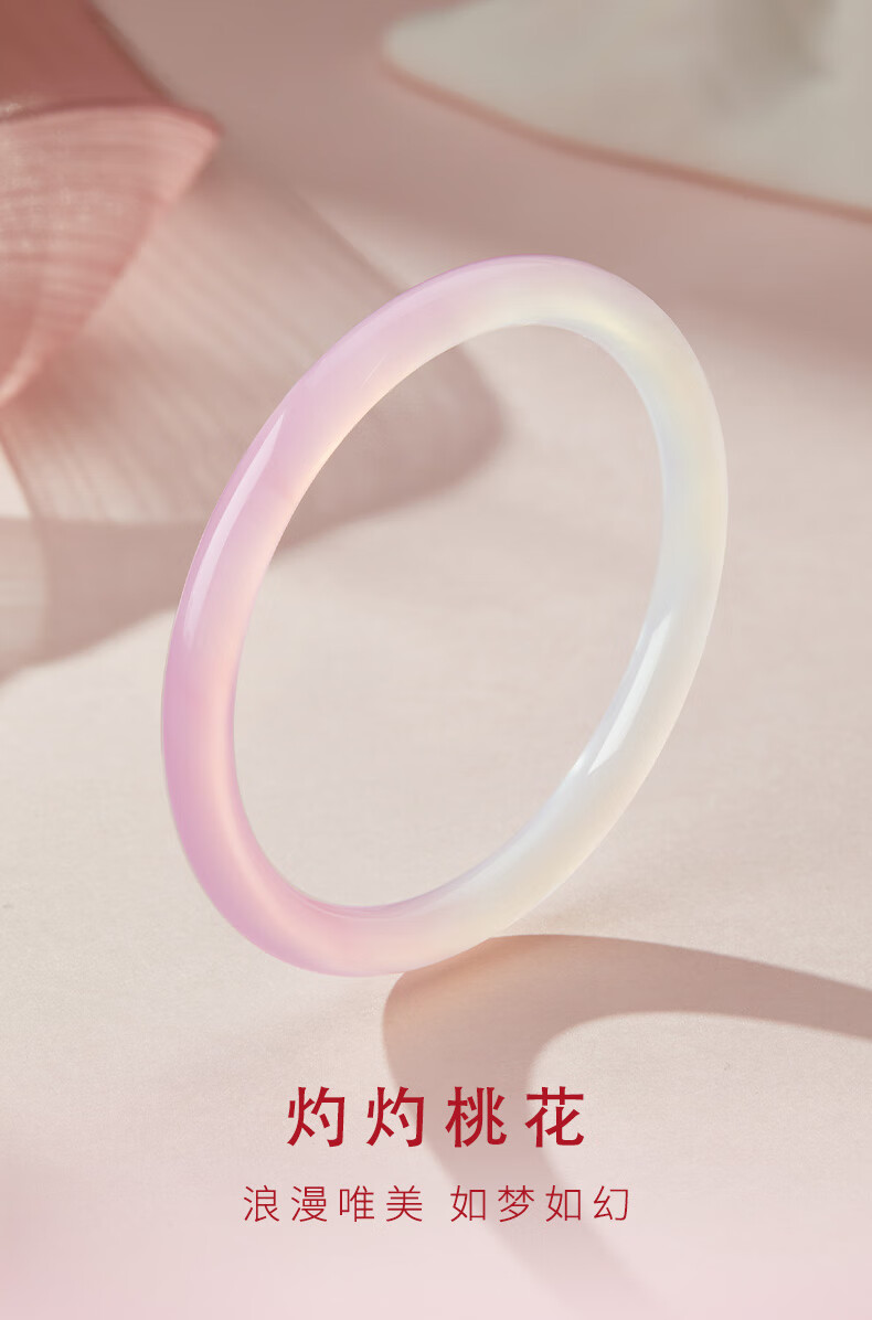 老凤祥灼灼桃花玉髓手镯叮当镯渐变粉玉镯子送女友老婆情人节生日礼物 (54-56#)