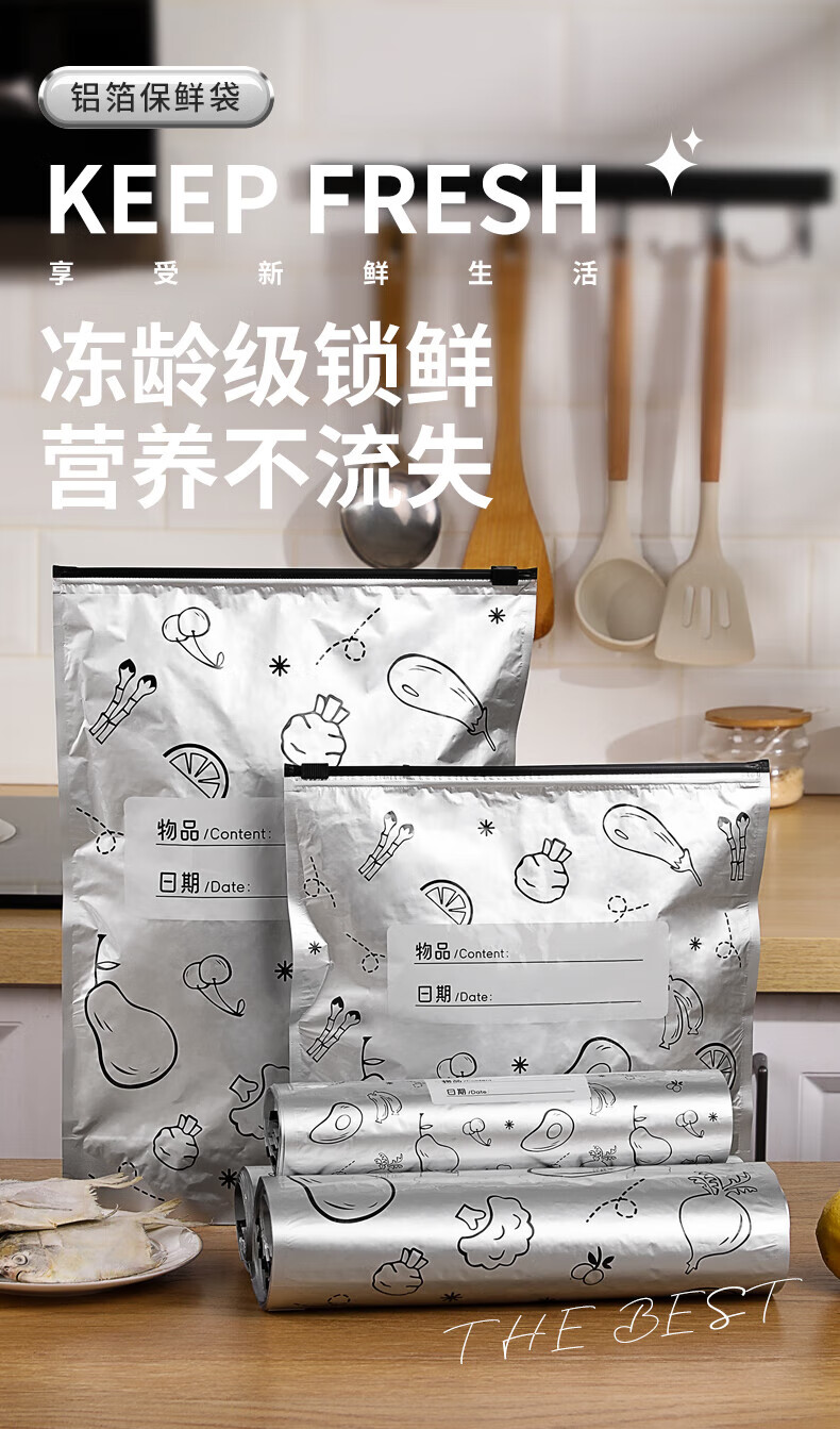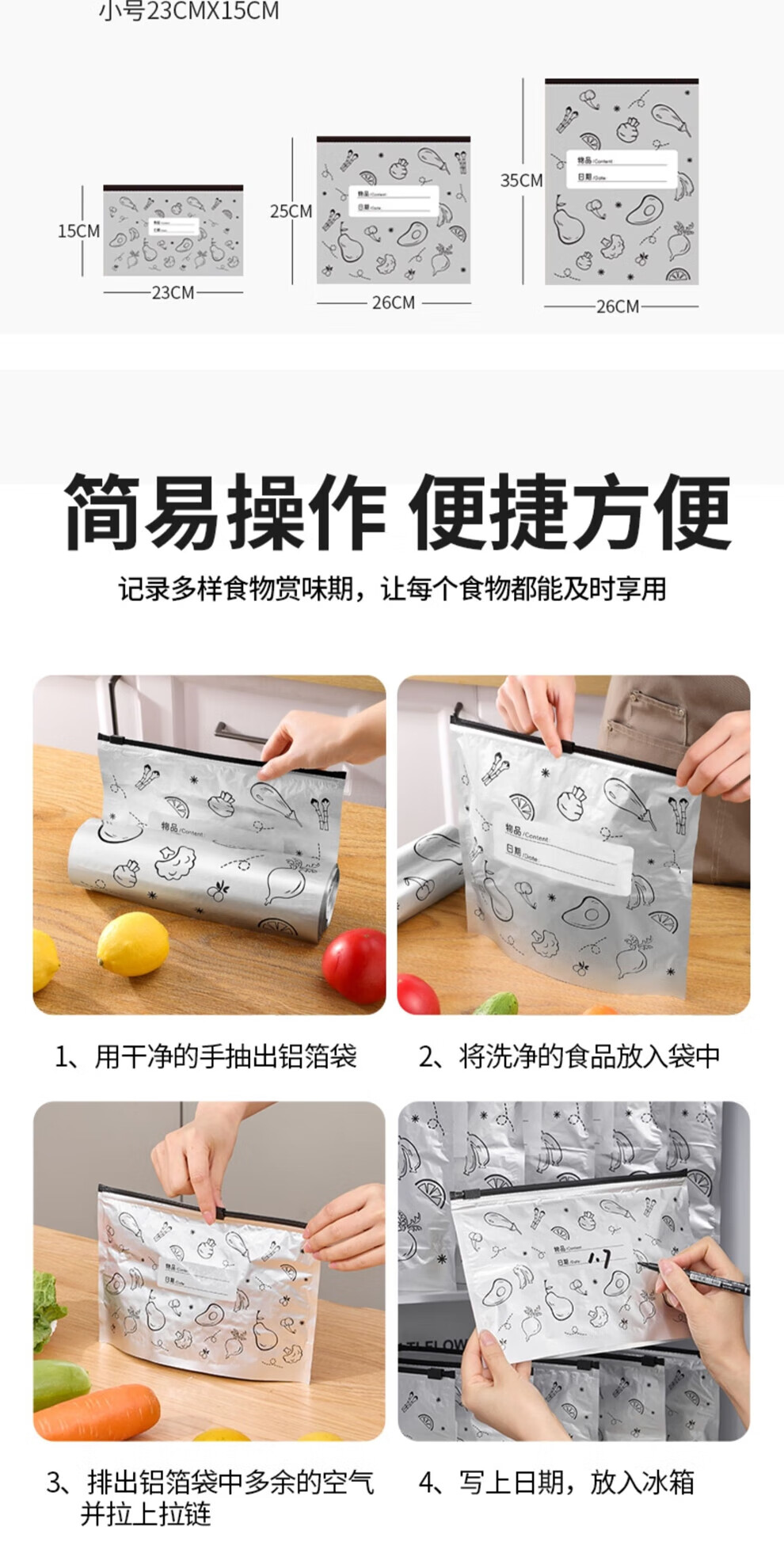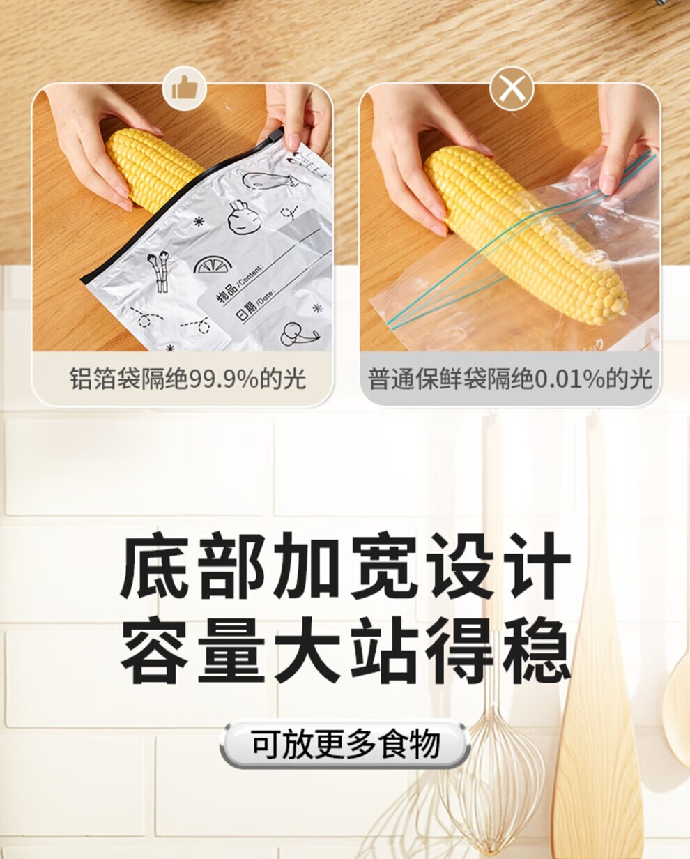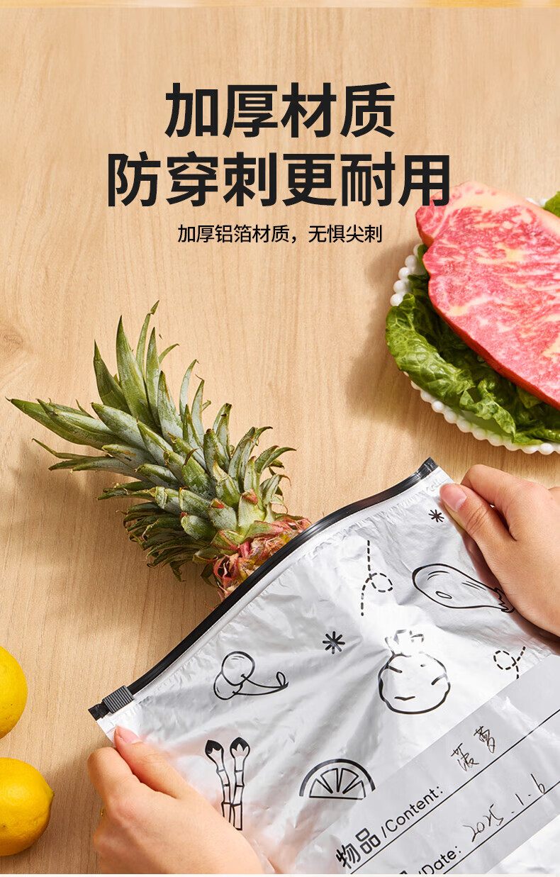 日禾盛唐铝箔保鲜袋密封袋家用加厚抗菌可放冰箱冷冻肉用食物密实自封袋 【大号-26*35cm】10只
