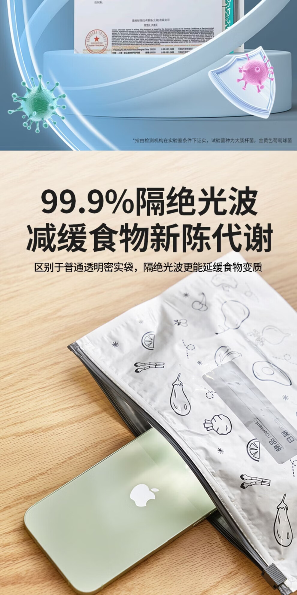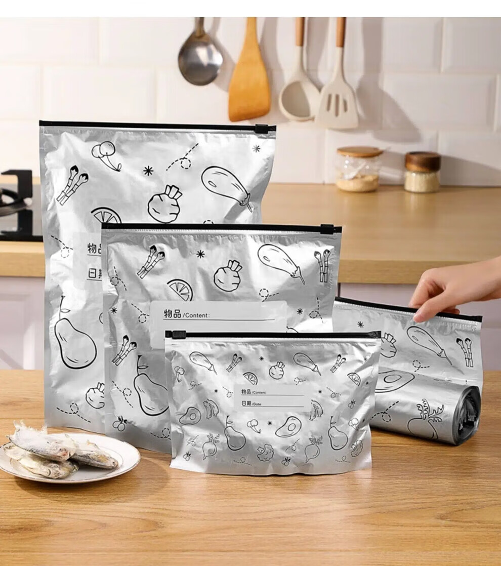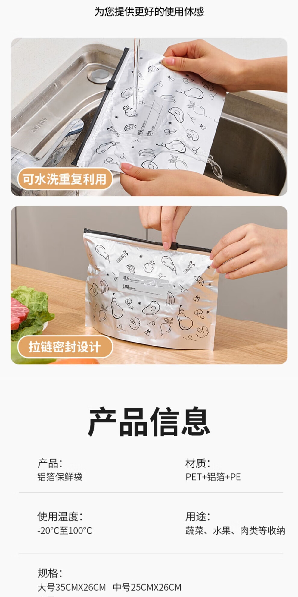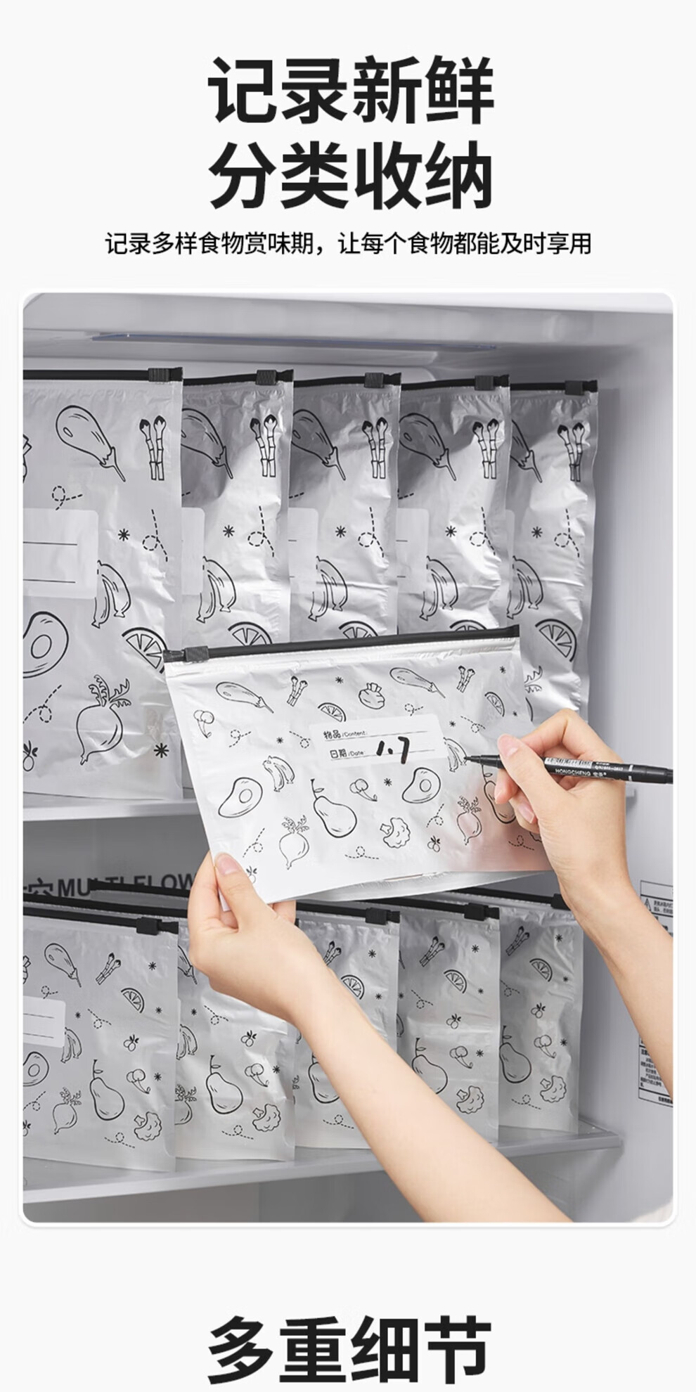 日禾盛唐铝箔保鲜袋密封袋家用加厚抗菌可放冰箱冷冻肉用食物密实自封袋 【大号-26*35cm】10只