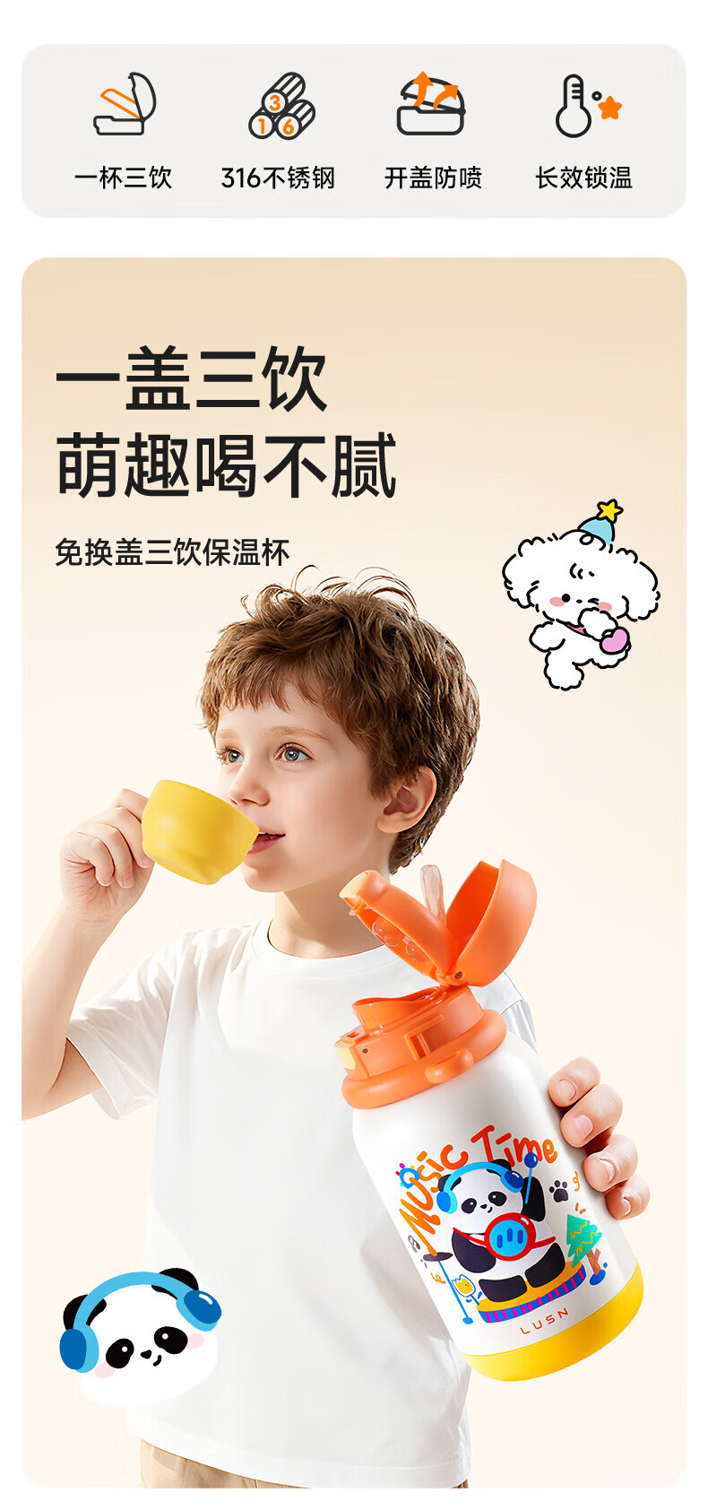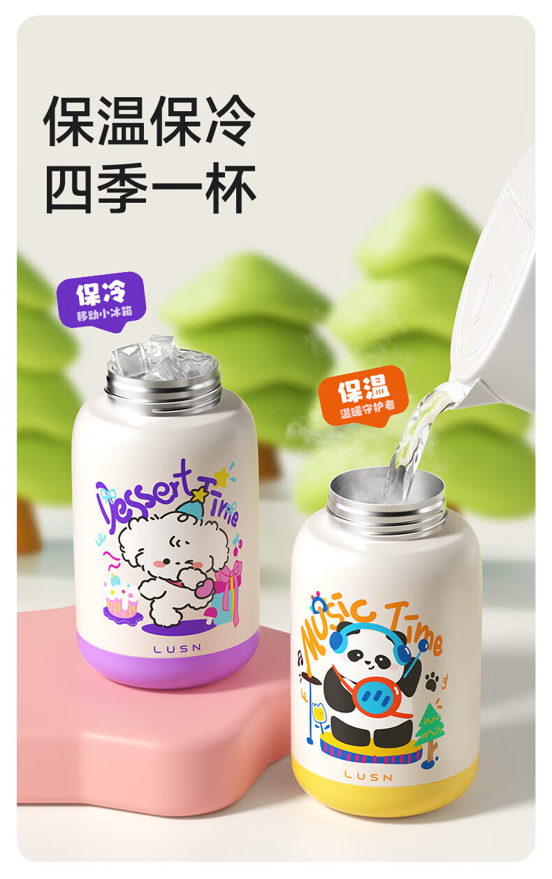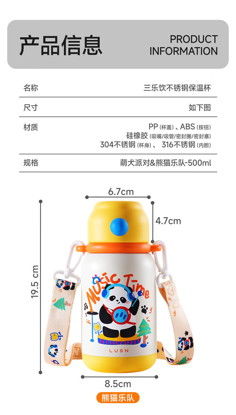 如山(LUSN)三合一保温杯儿童316可爱学饮婴幼儿吸管直饮长效保温学生便携 【大容量】花环小兔 550ml