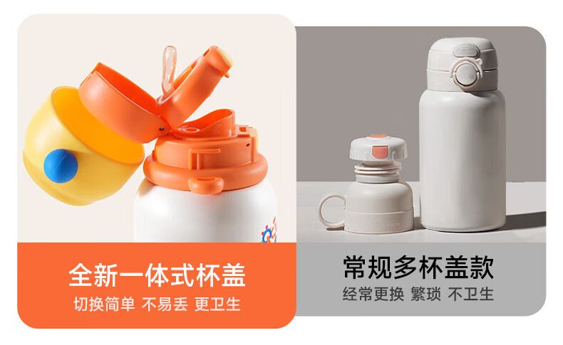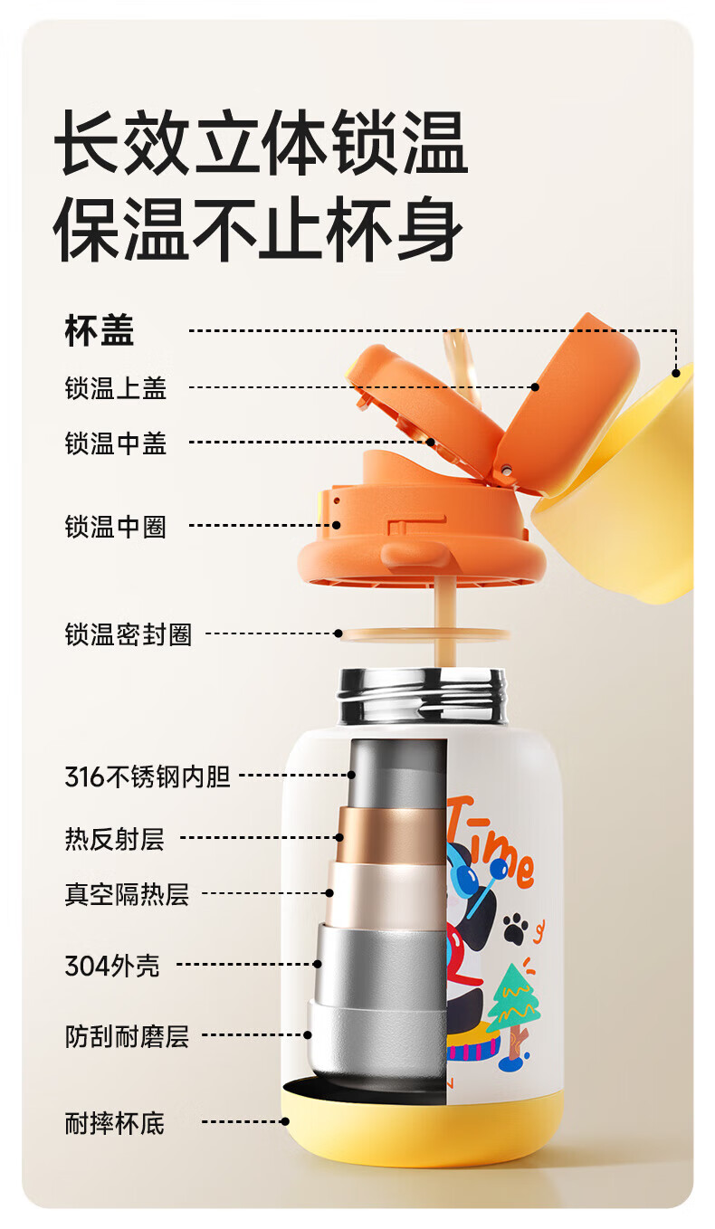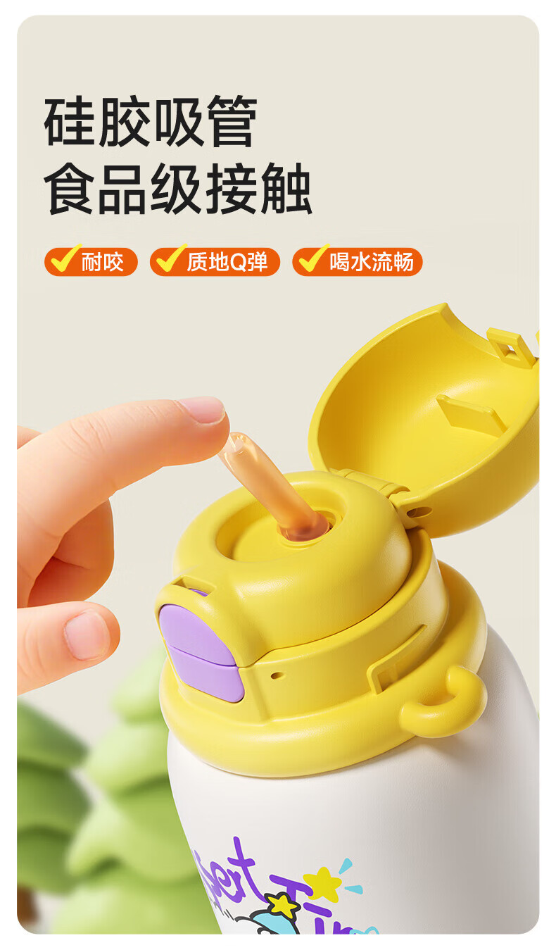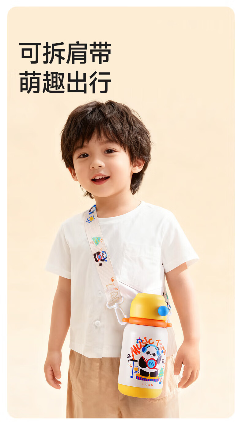 如山(LUSN)三合一保温杯儿童316可爱学饮婴幼儿吸管直饮长效保温学生便携 【大容量】花环小兔 550ml