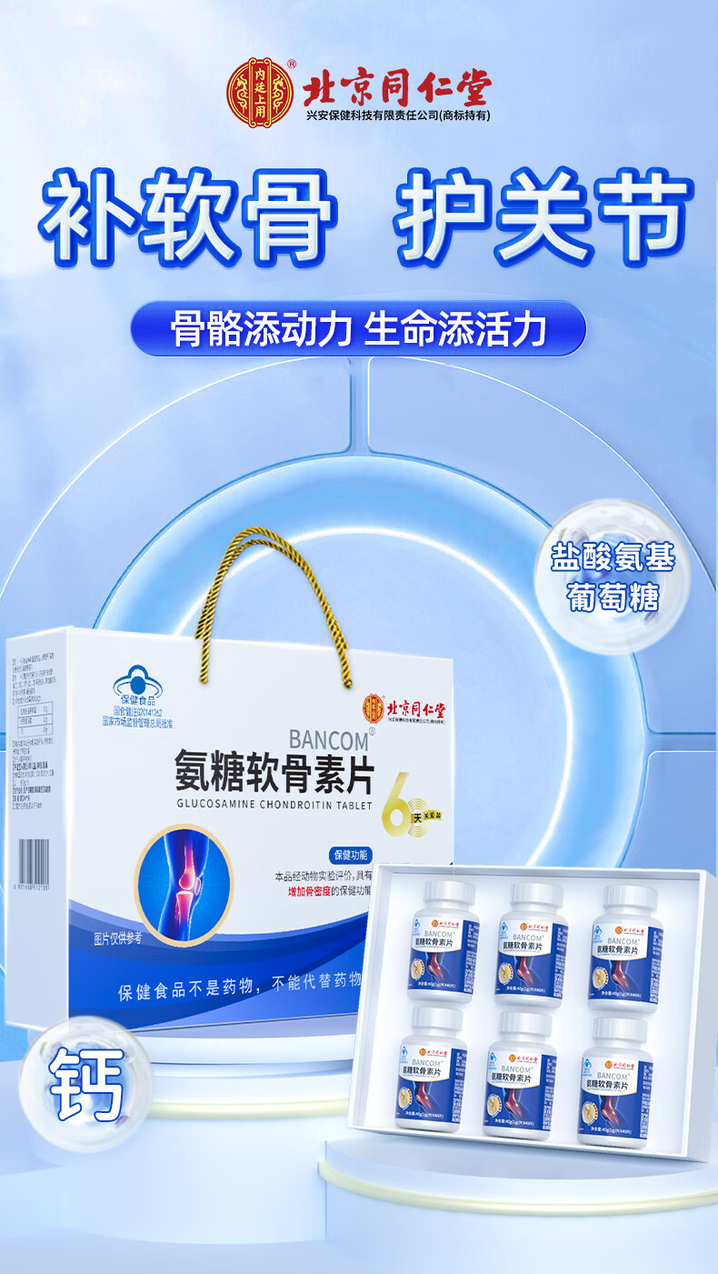 通用氨糖软骨素钙片6瓶礼盒装送长辈中老年护关节疼痛 2盒