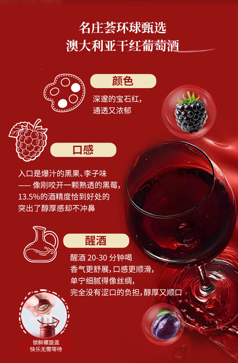 名庄荟环球甄选澳大利亚葡萄酒 干红750mL*6