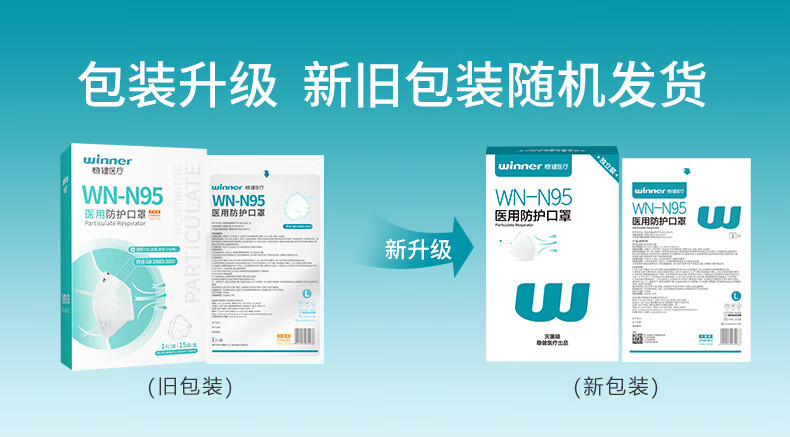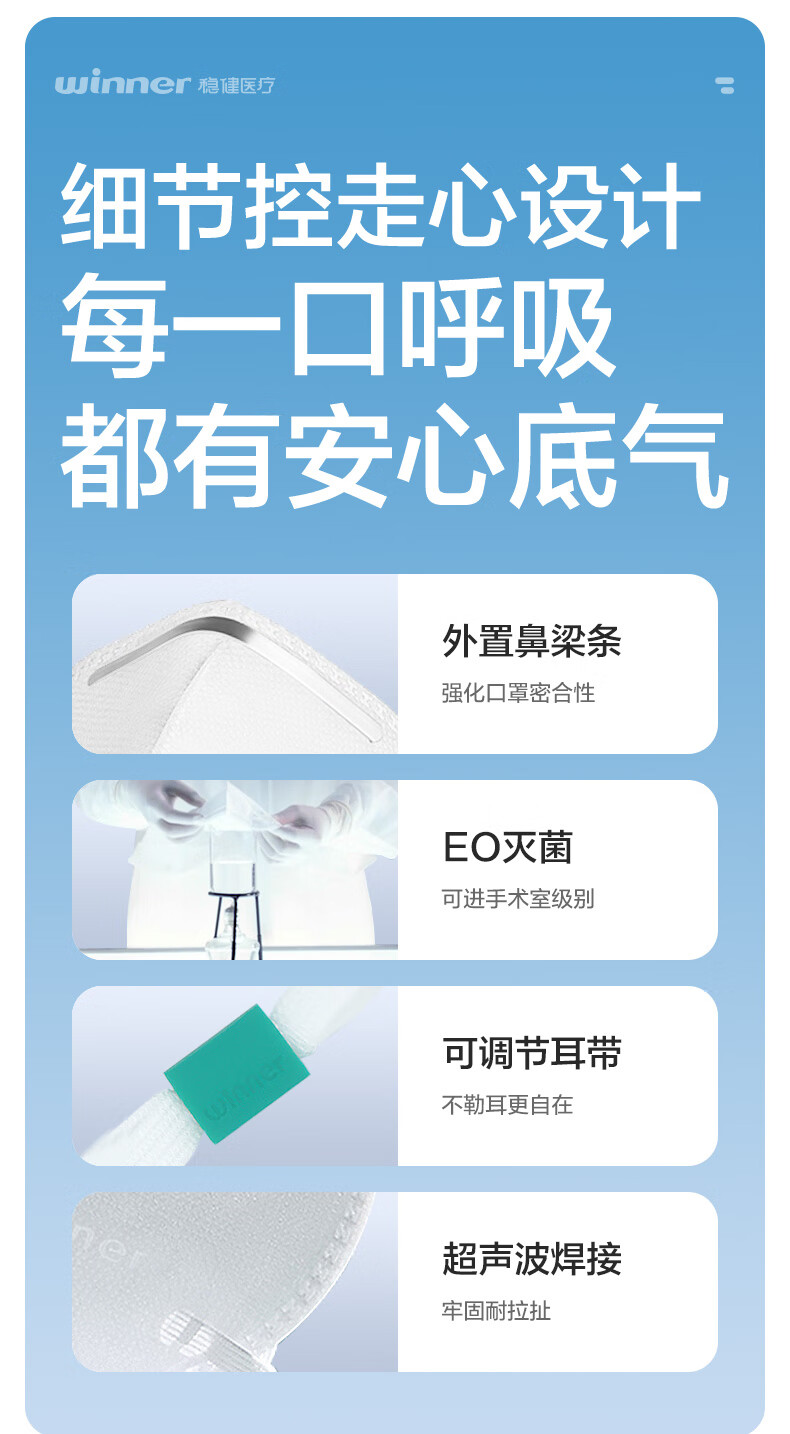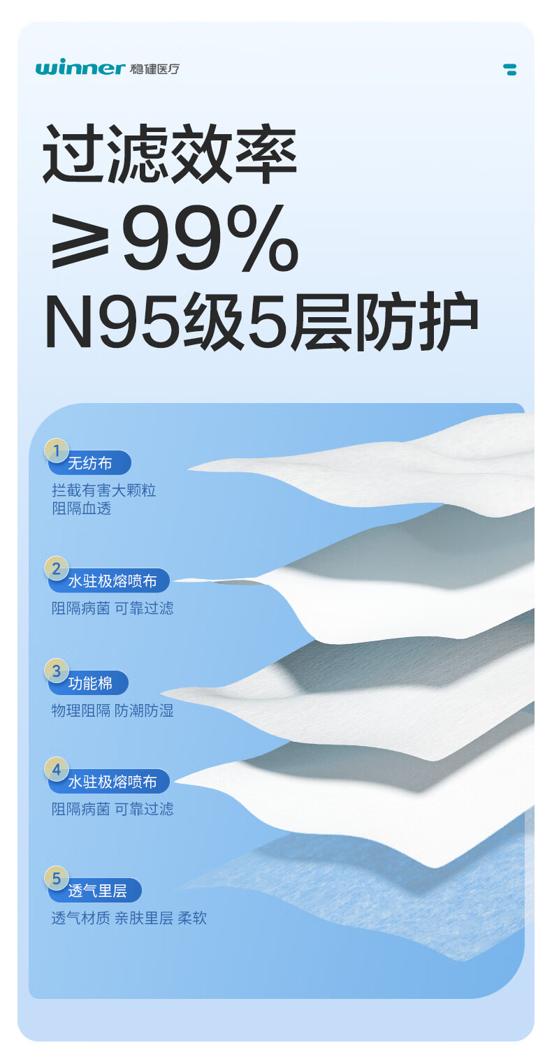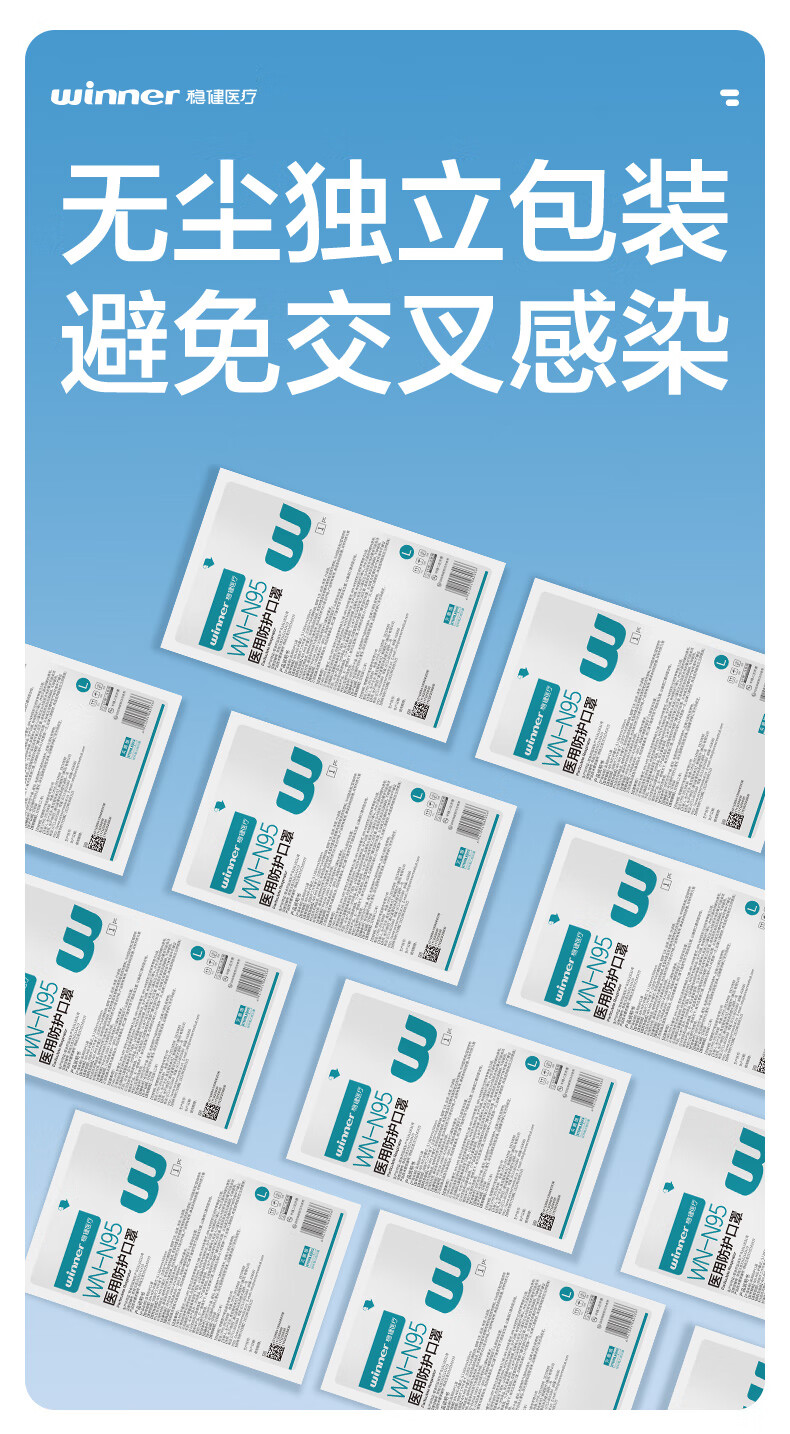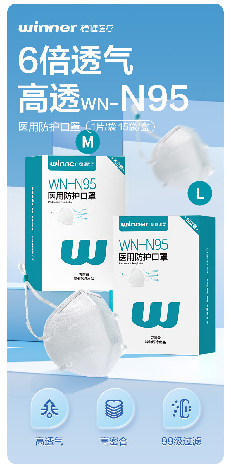 稳健一次性医用口罩N95口罩灭菌级15只独立装 五层防护防尘防雾霾M码