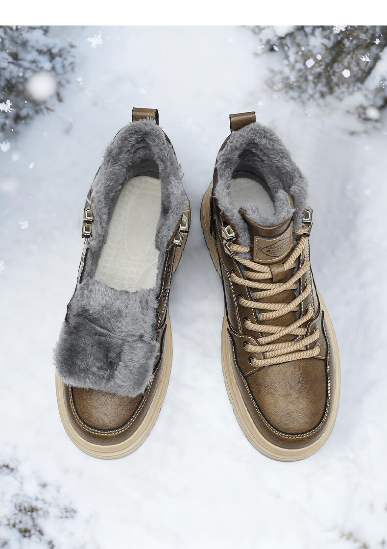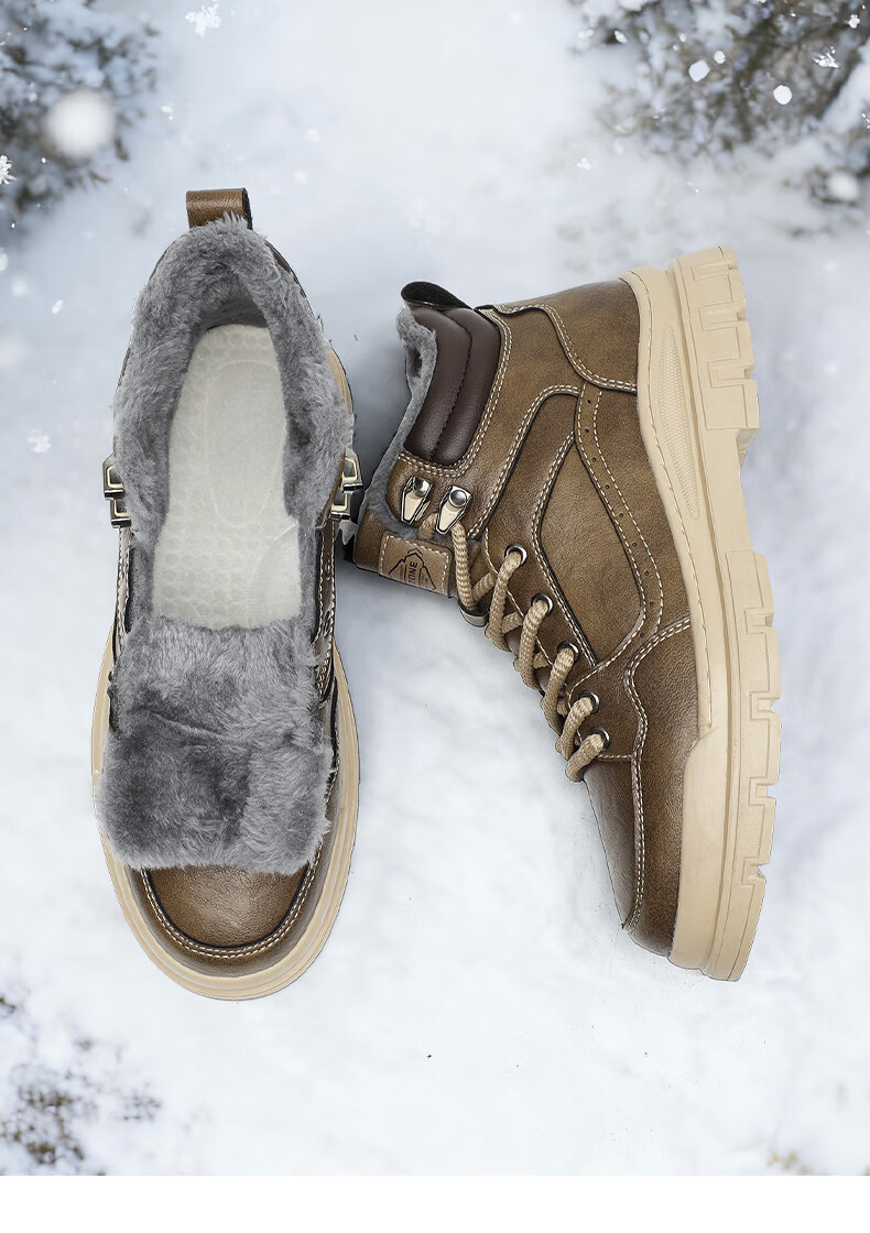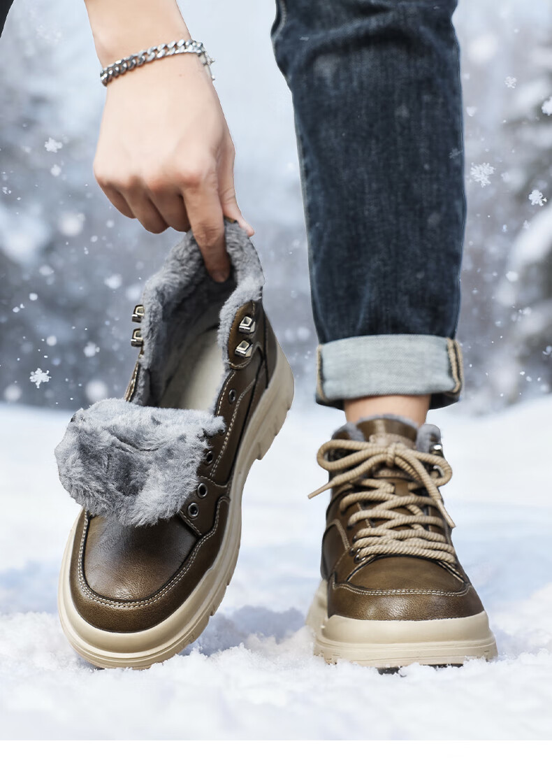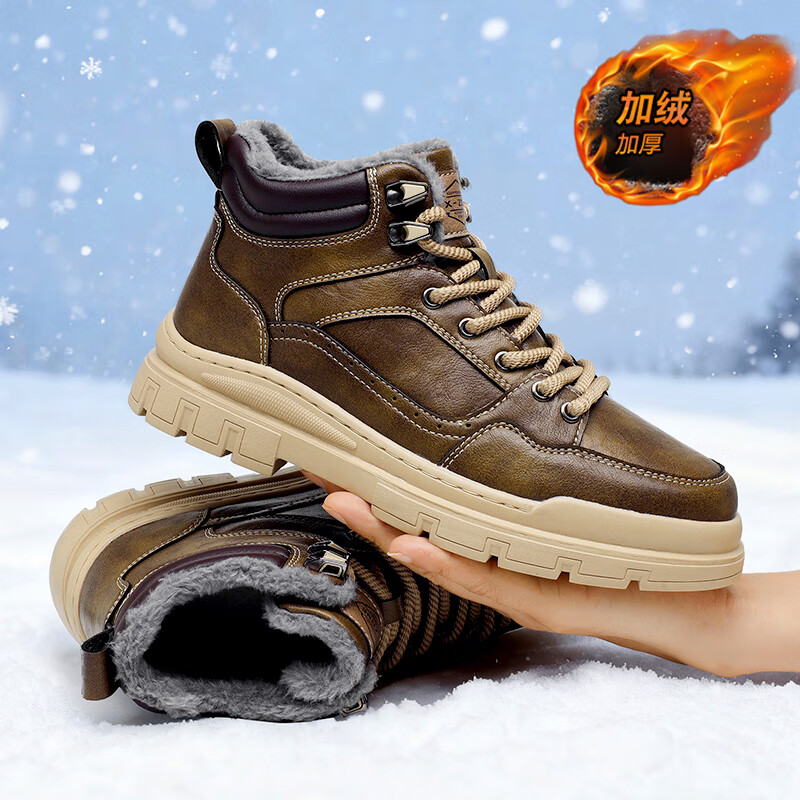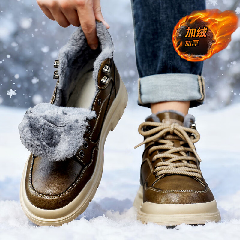 沙驰(SATCHI)男鞋【羊毛皮】防寒保暖雪地靴秋冬棉鞋舒适轻底休闲鞋男靴 卡其(H12A9G0320) 加绒 38 欧码(选小一码)