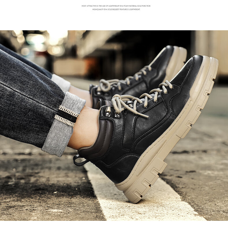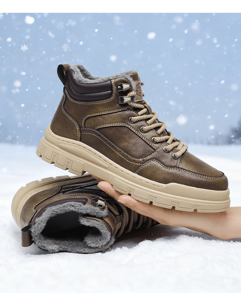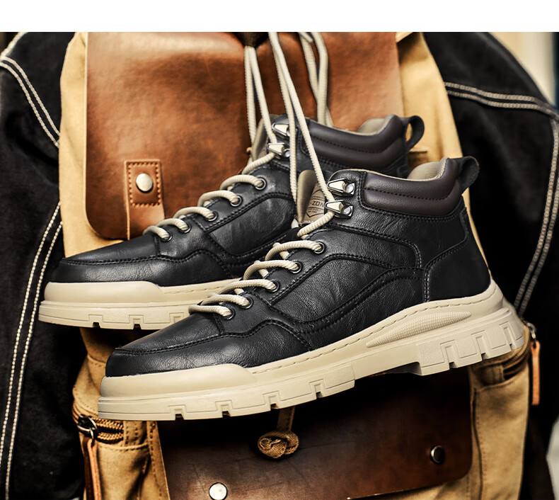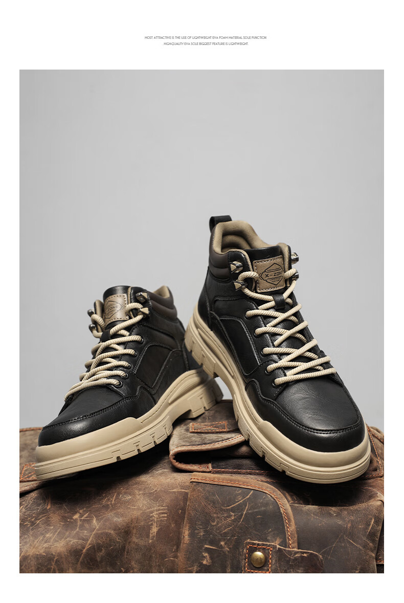 稻草人(MEXICAN)男鞋冬季真皮加绒加厚保暖中帮棉皮鞋男士户外运动防寒作训马丁靴 黑金【升级款】 39 标准运动码