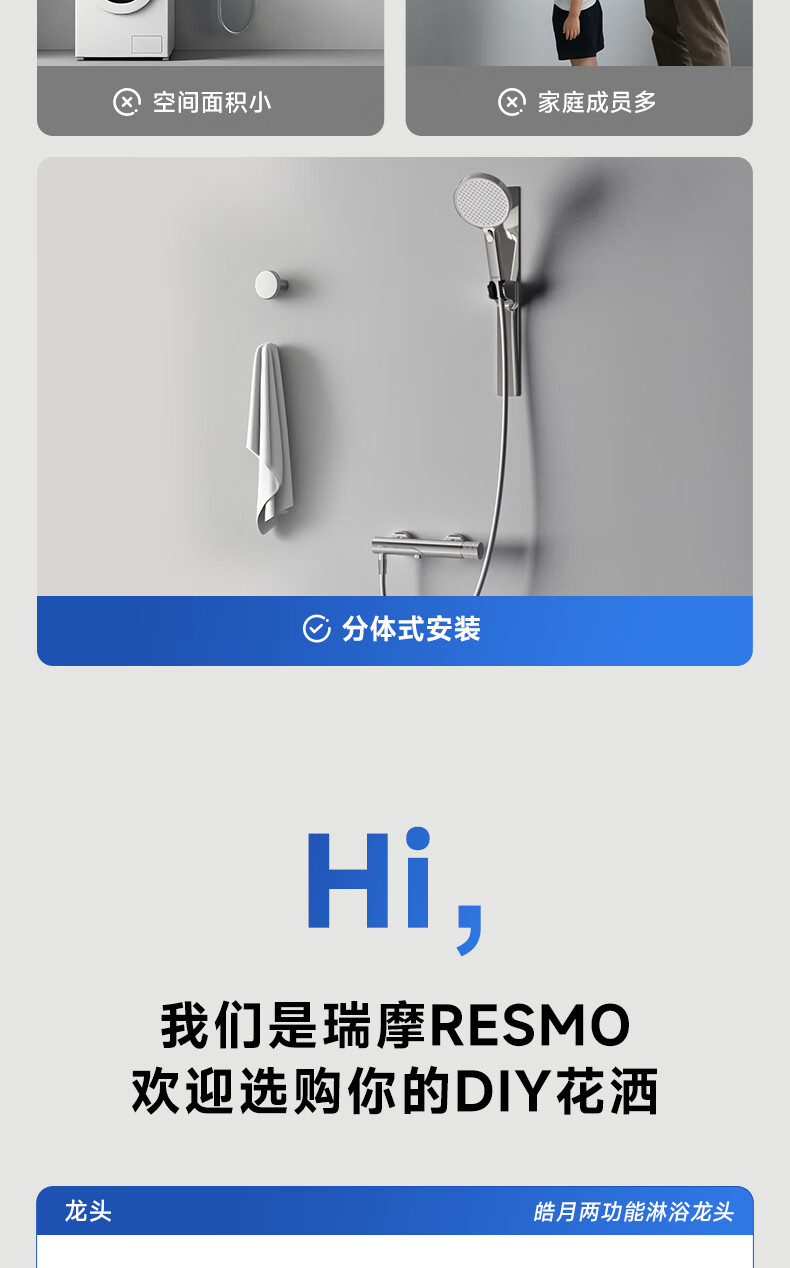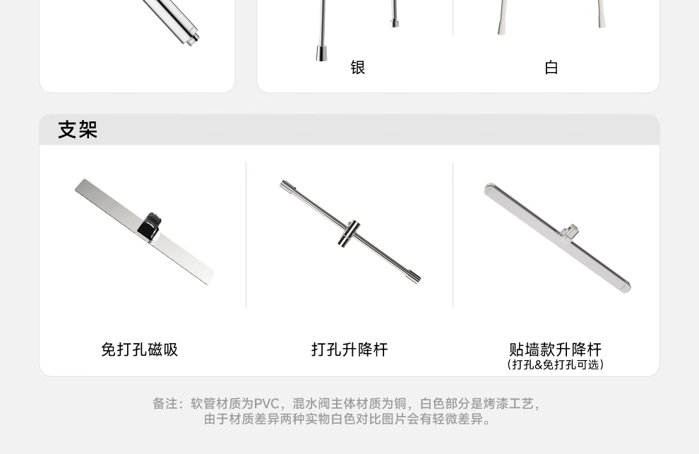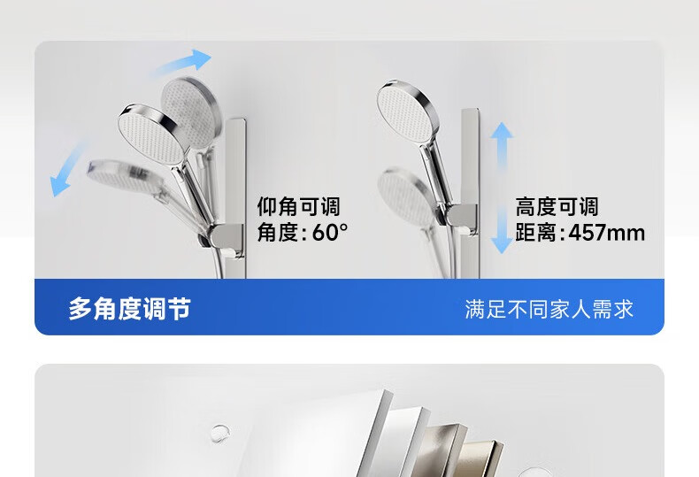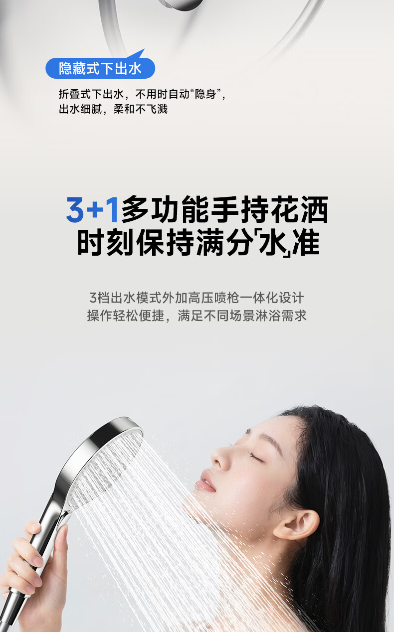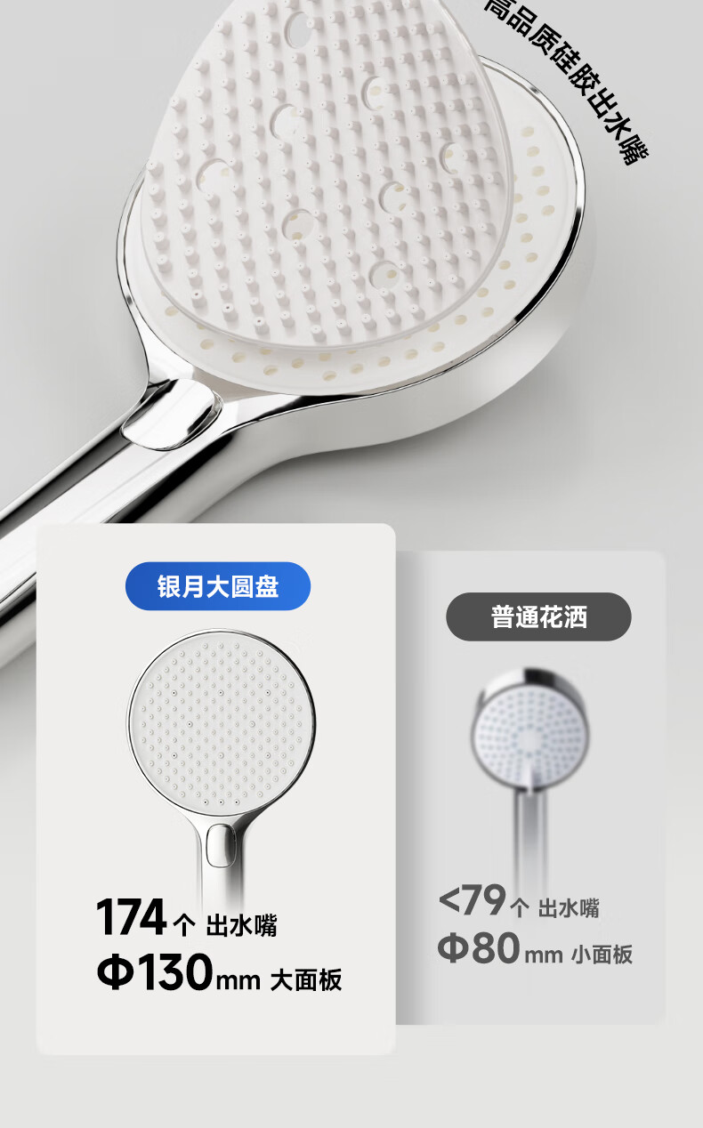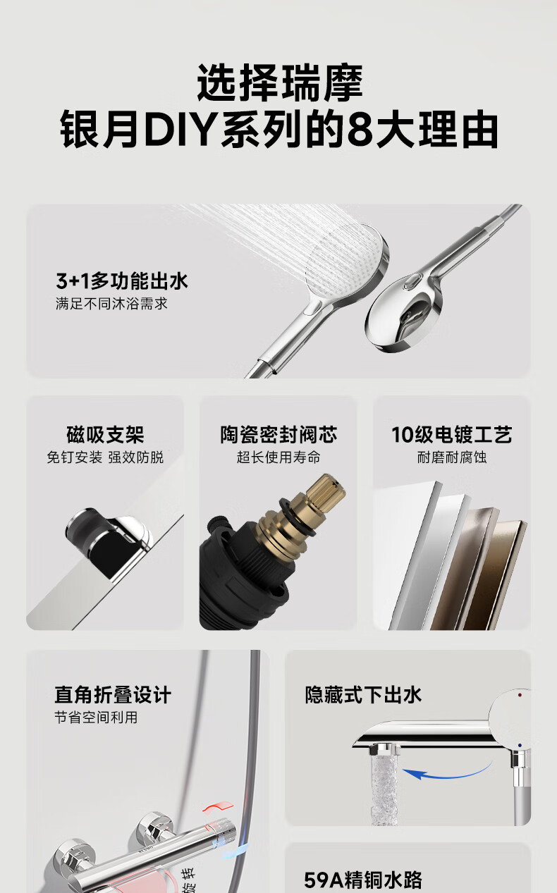 RESMO瑞摩免打孔升降杆花洒支架浴室喷头淋浴花洒软管精铜混水阀配件 【铬色】银月花洒【三档出水+喷枪清洁】