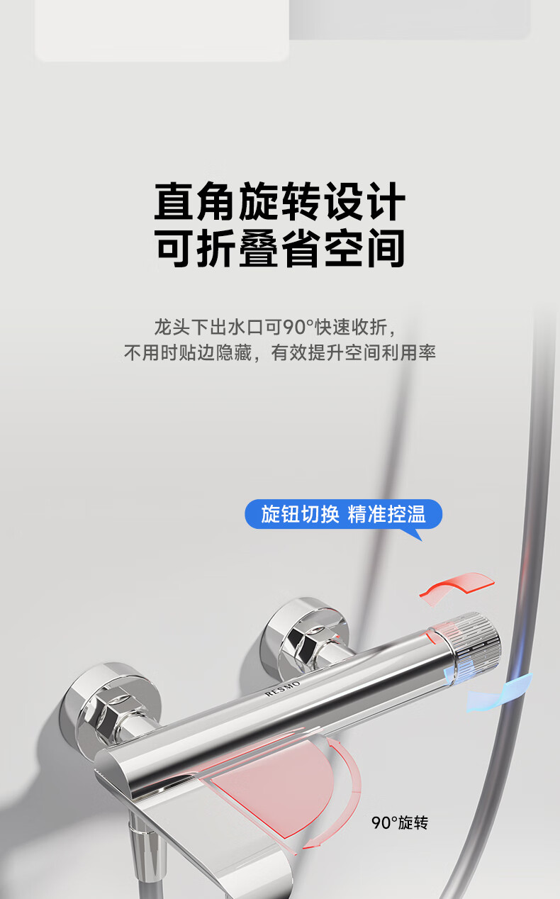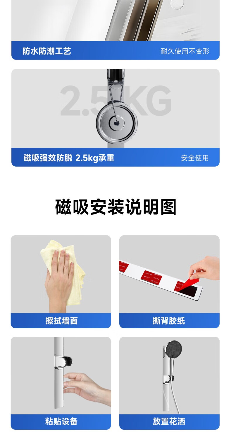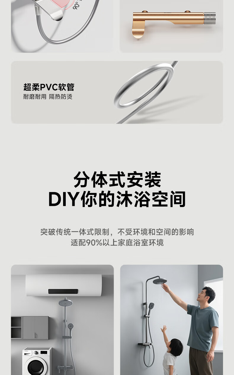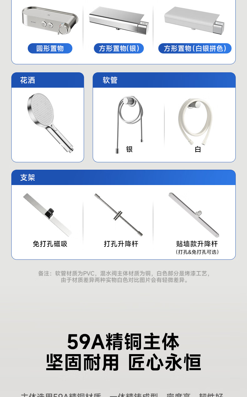 RESMO瑞摩免打孔升降杆花洒支架浴室喷头淋浴花洒软管精铜混水阀配件 【铬色】银月花洒【三档出水+喷枪清洁】