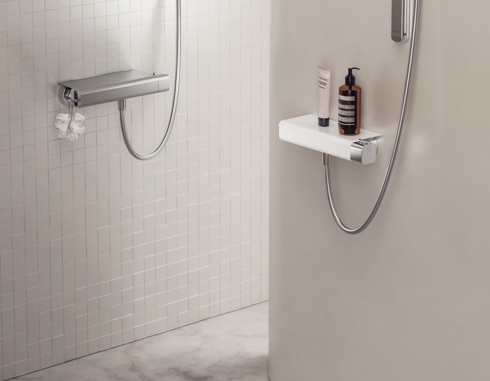 家文化(JIAWENHUA)老人坐式恒温淋浴器卫生间浴室淋浴椅多功能壁挂式淋浴凳花洒扶手 等腰梯形淋浴器月光白(分体双淋浴臂+手持)