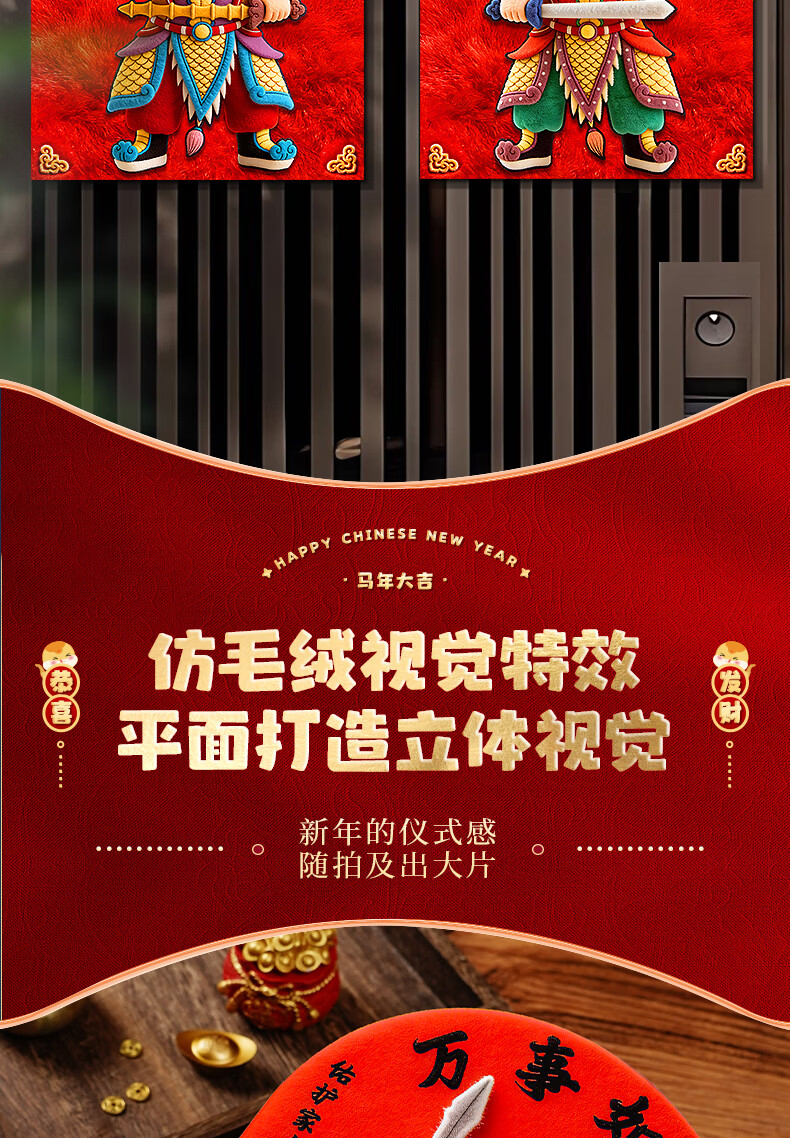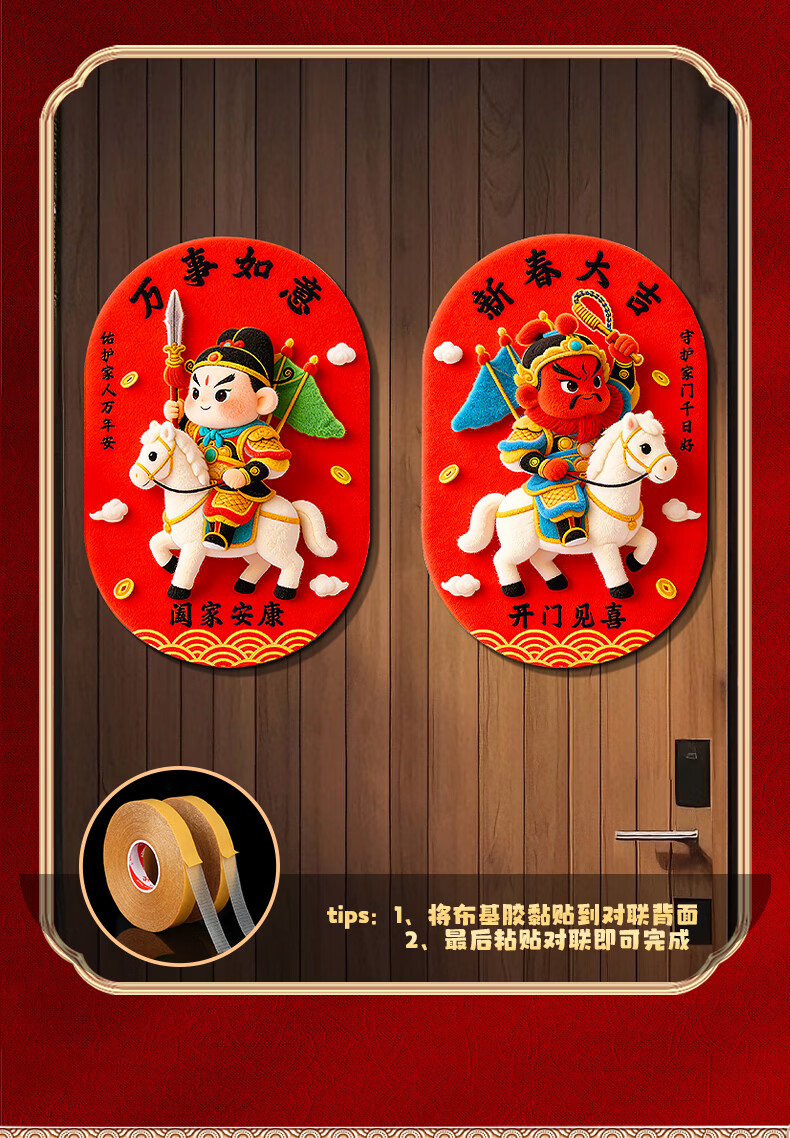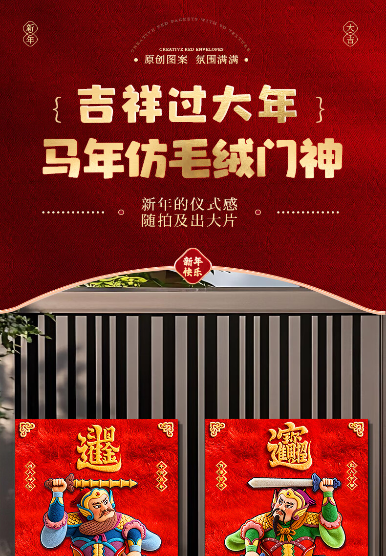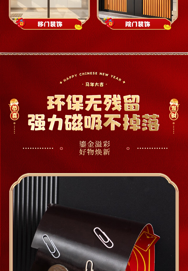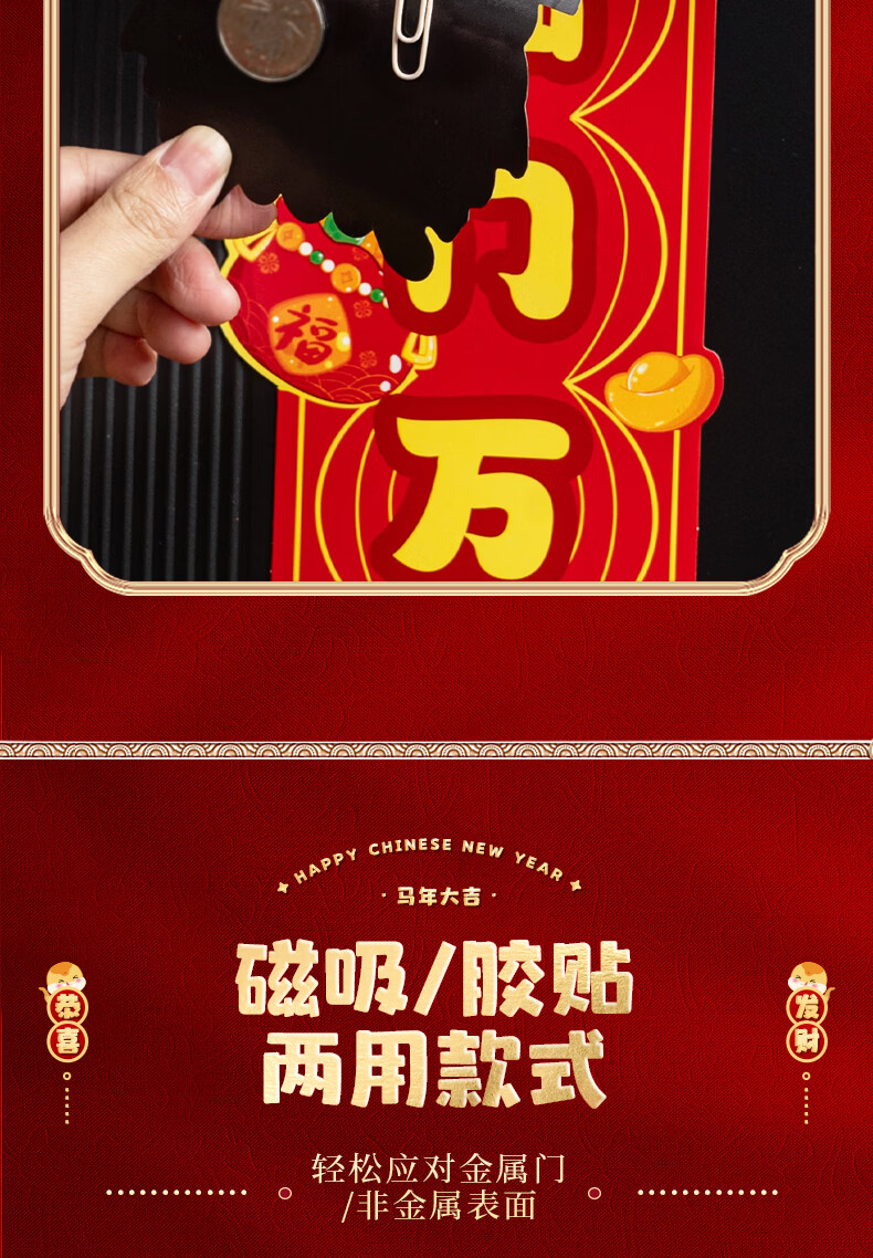 千棵树2026马年新年门神磁吸门贴福字入户门卡通对贴春节氛围场景装饰品 【一对装】新春大吉 磁吸款