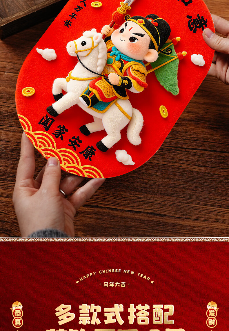 Jidaocook植绒对联2026马年新款春节家用过年大门布置新年门贴装饰磁吸春联 马迎新春对联+飞马送福挂件 植绒款