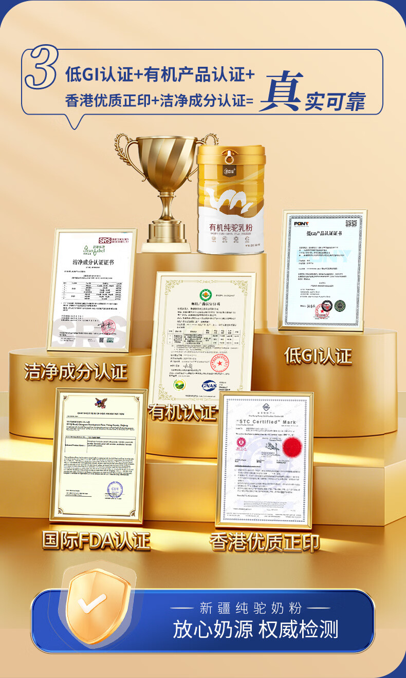 源西域新疆纯骆驼奶粉正宗有机双峰驼乳粉330g中老年成人奶粉低GI 【买一发二】有机纯驼奶粉330g