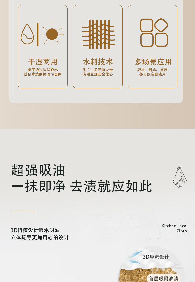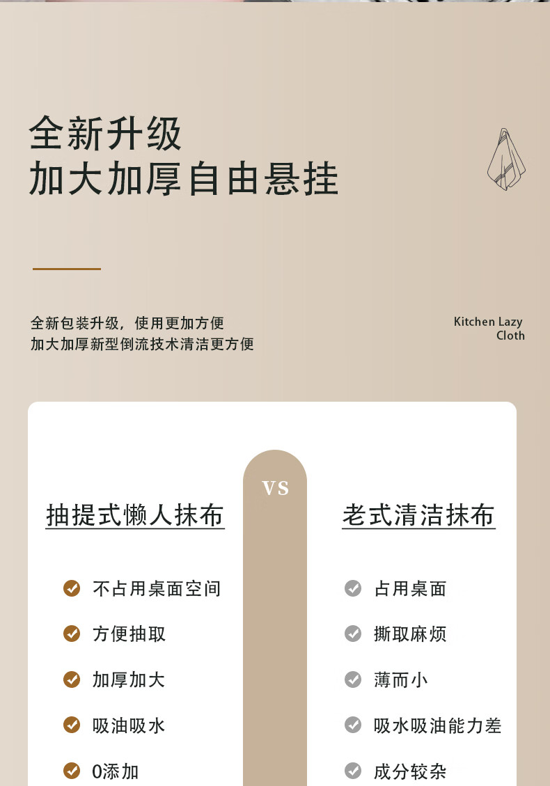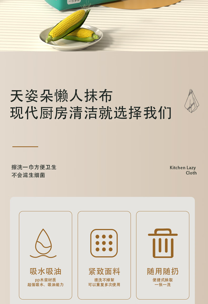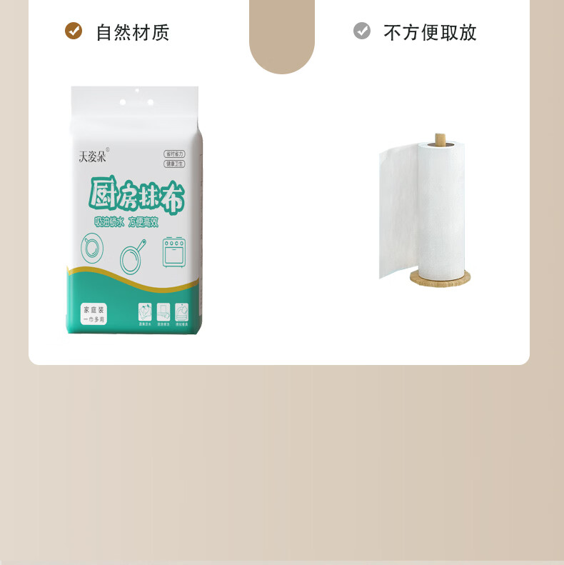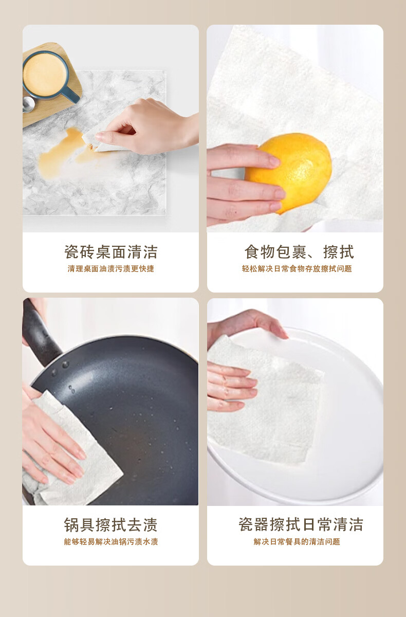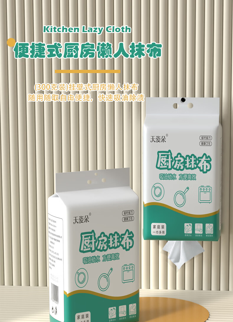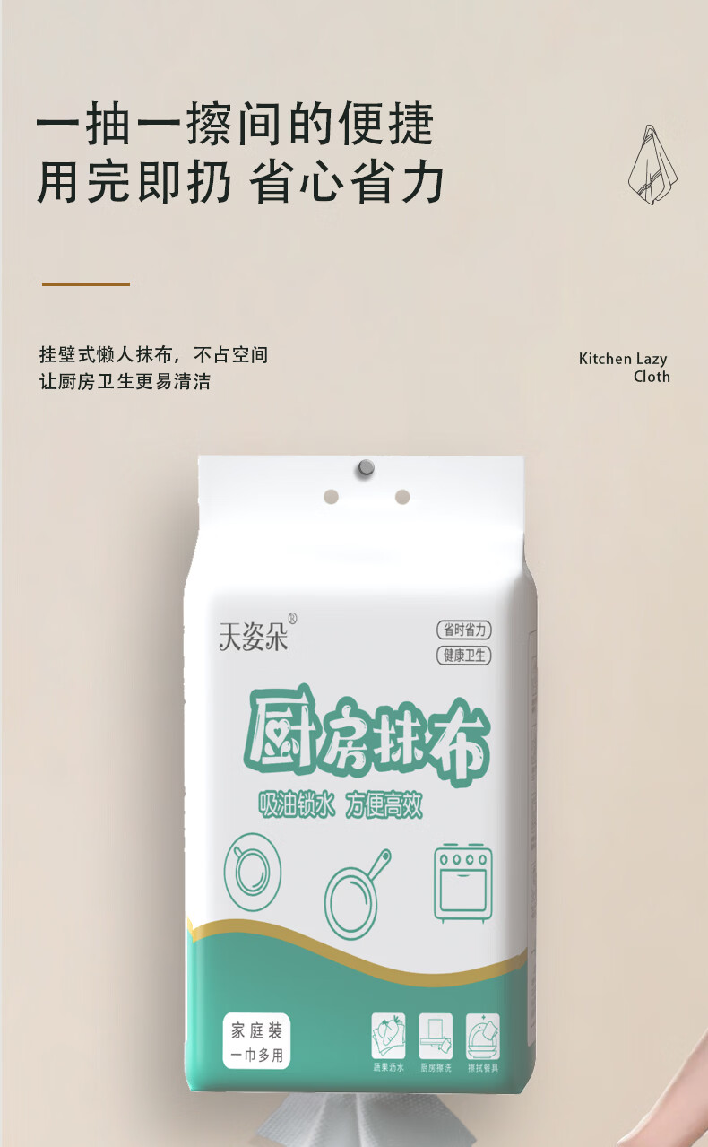 天姿朵厨房悬挂式一次性厨房专用纸巾大包加厚款干湿两用清洁抹布洗碗布 1层 80抽*3提