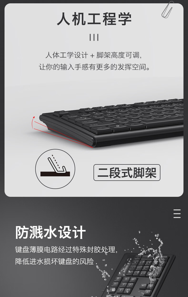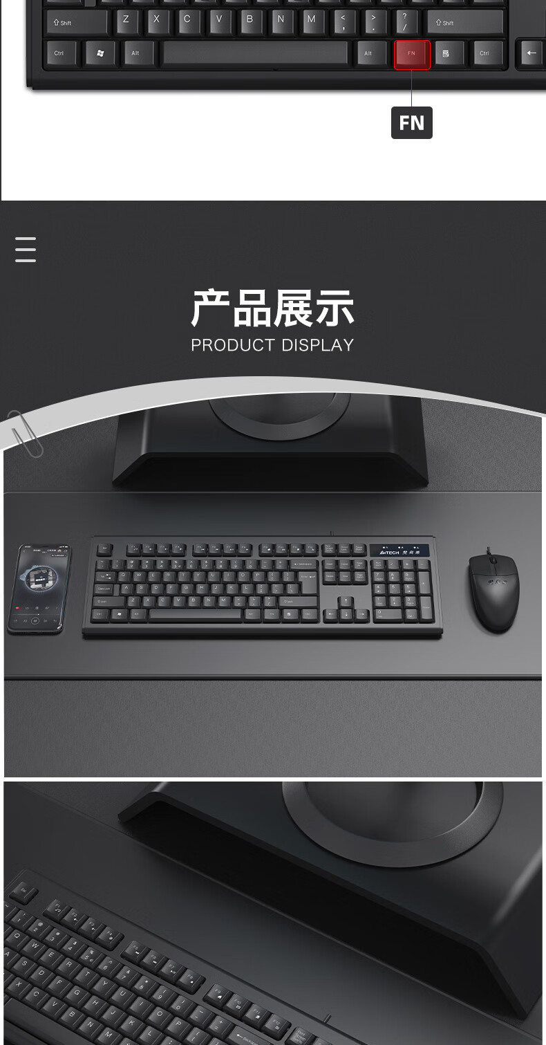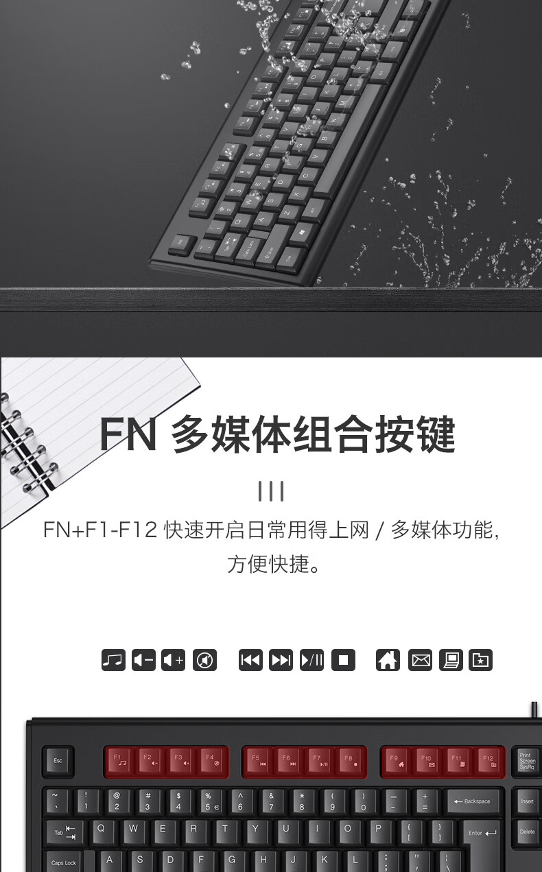 双飞燕(A4TECH) WK-100 有线键盘 办公打字用薄膜键盘笔记本外接台式电脑通用键盘104键 USB接口 黑色