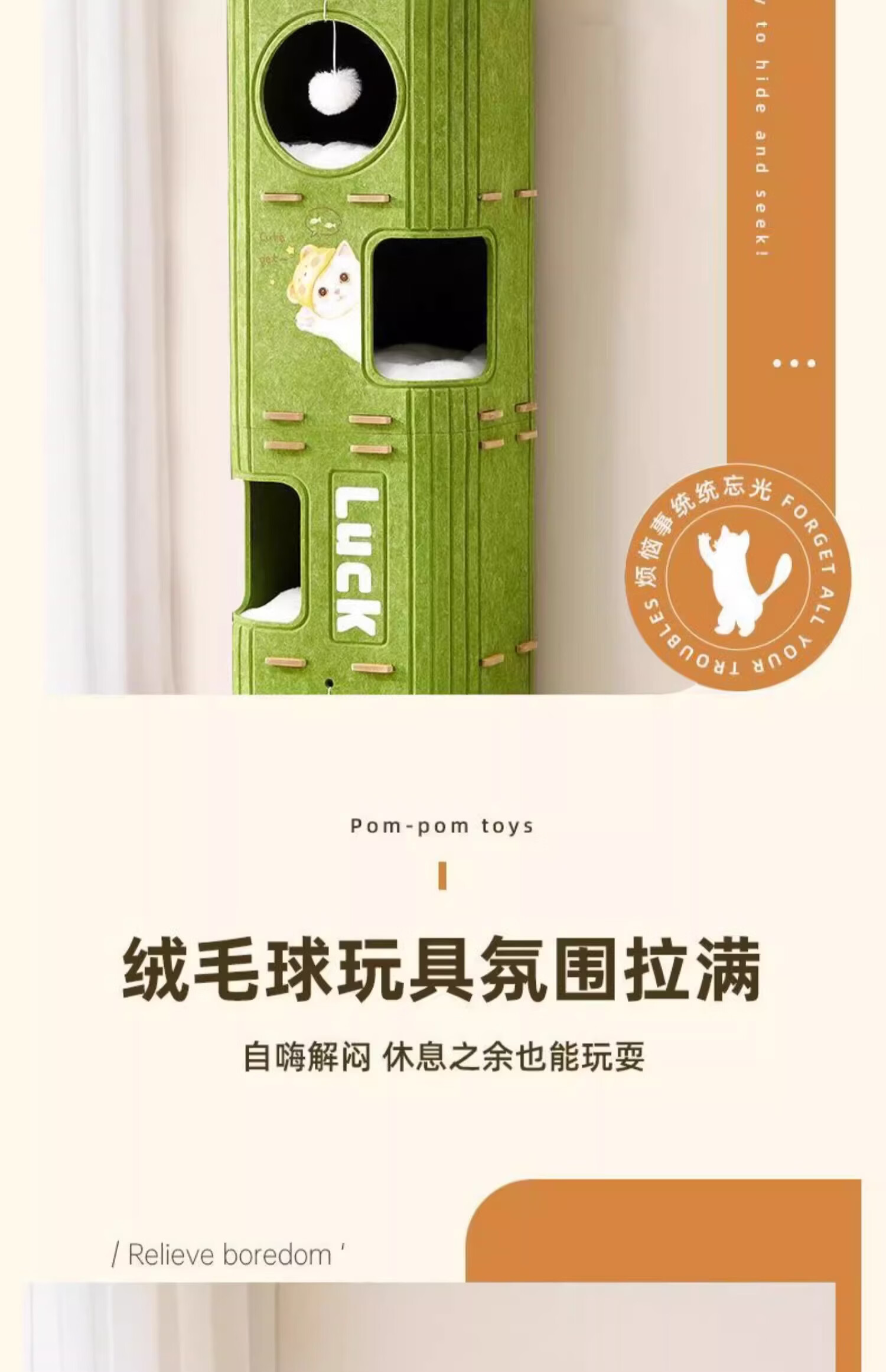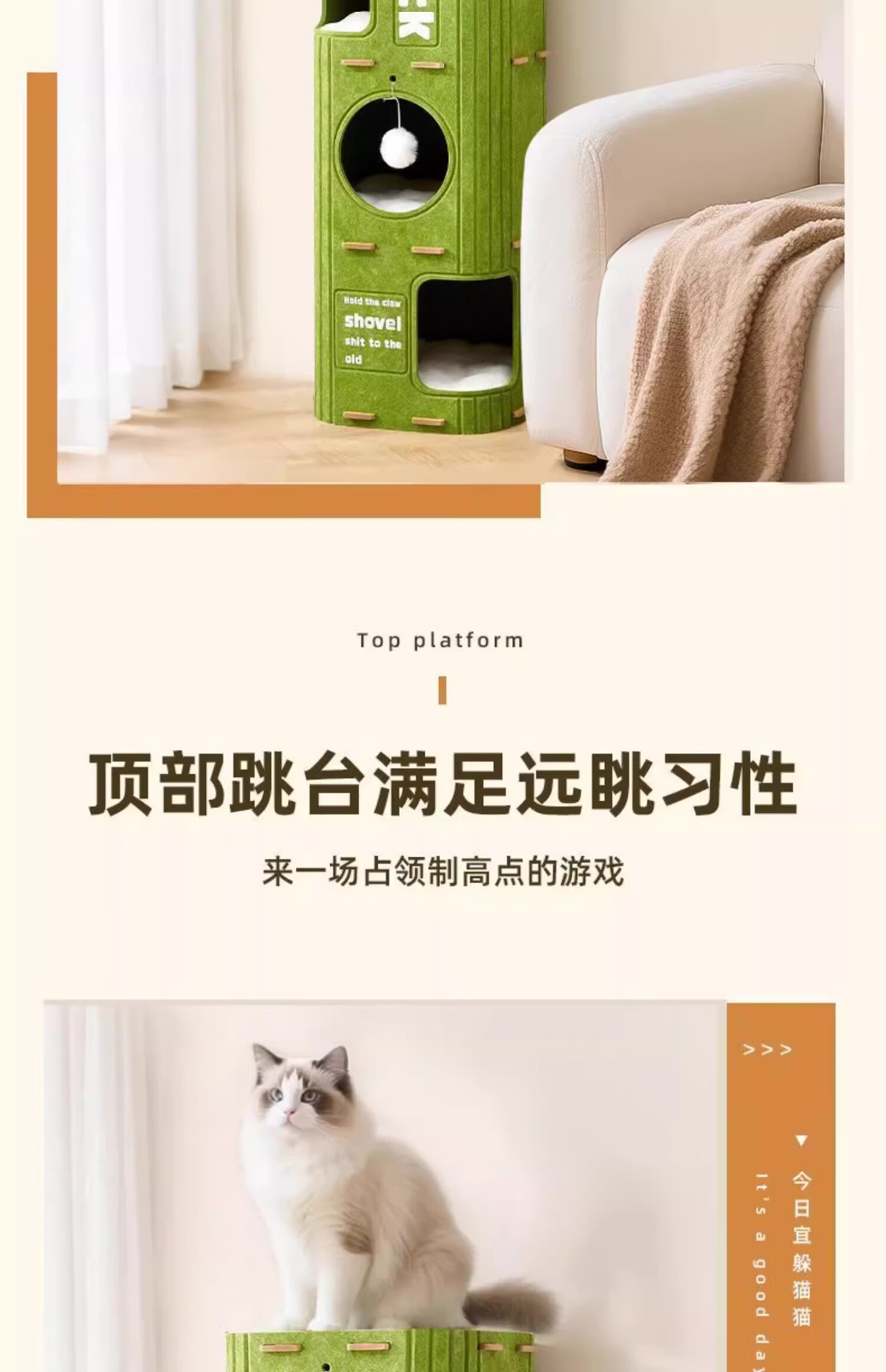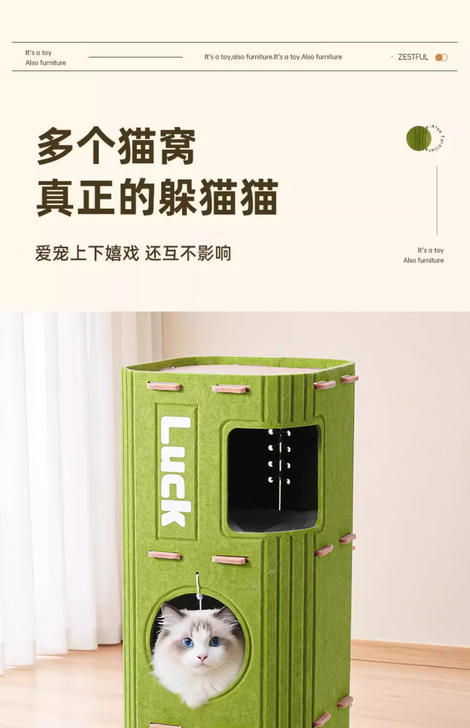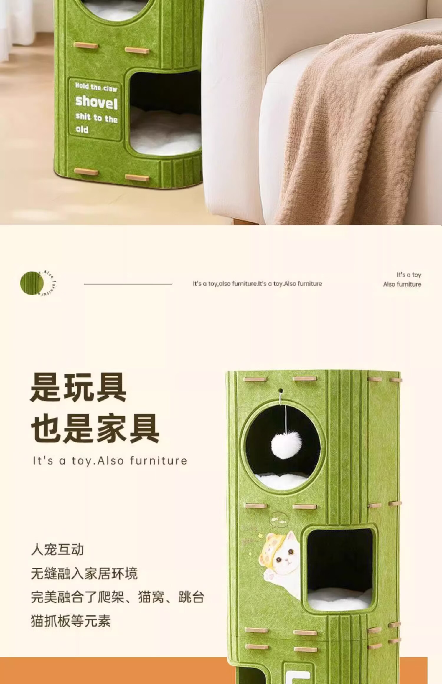 小猫日记猫窝四季通用猫爬架猫树一体猫咪多层树洞家用双层抓板封闭式猫屋 毛毡迷宫掏球乐【方形绿棕款】