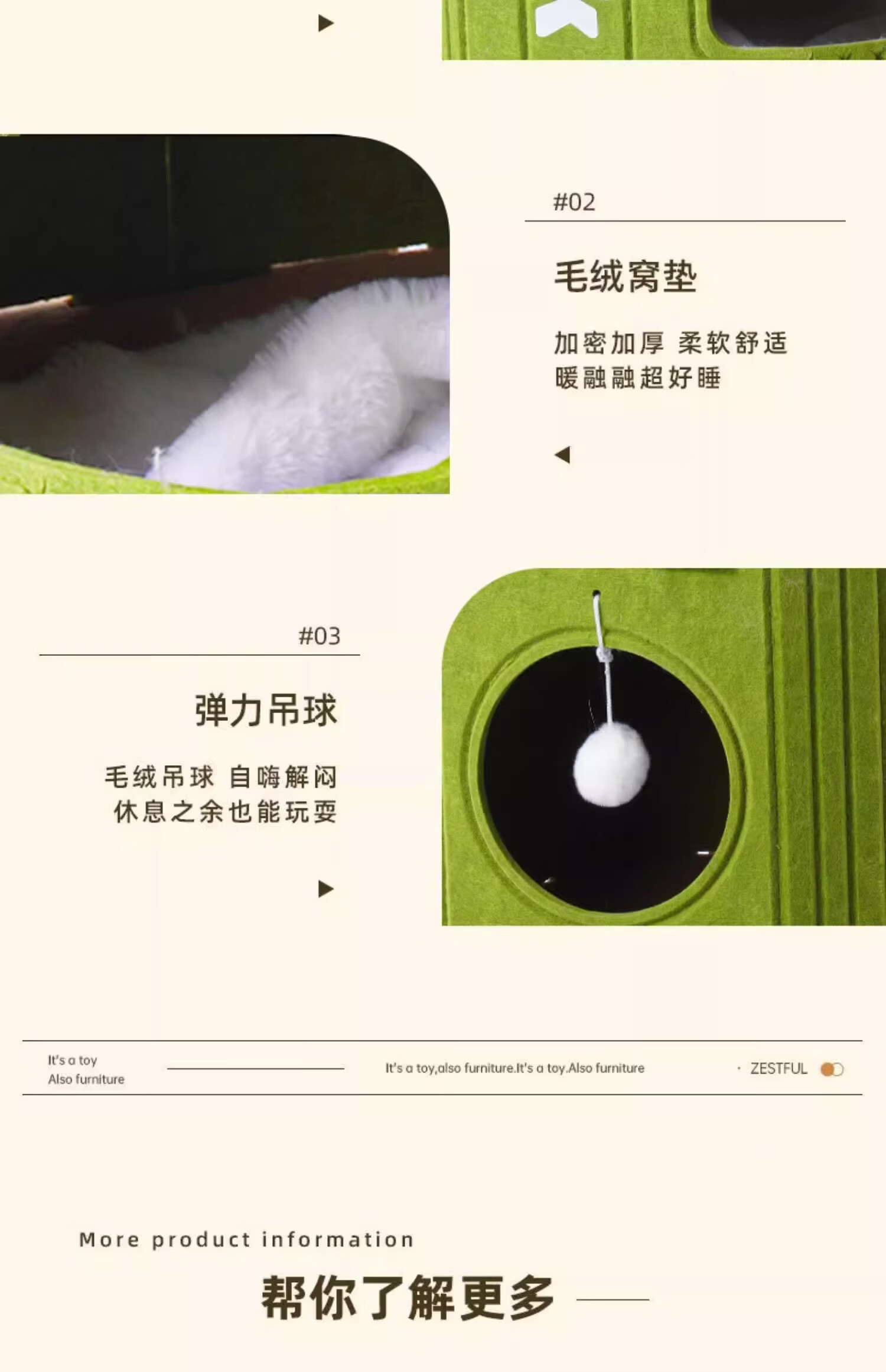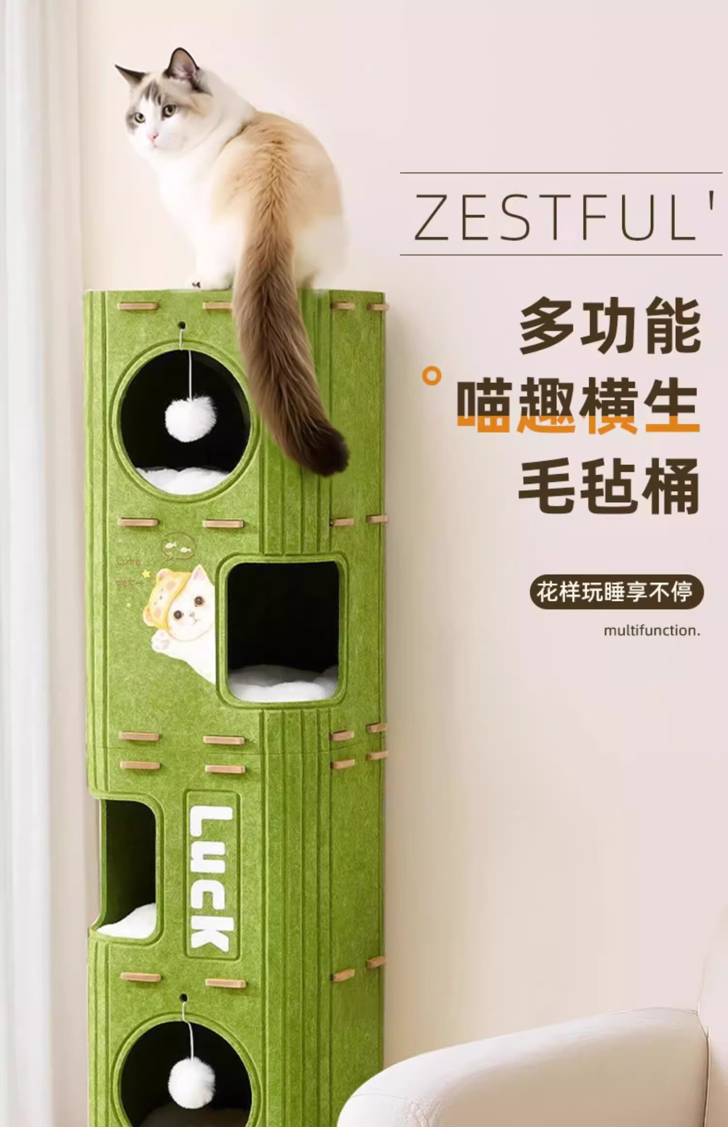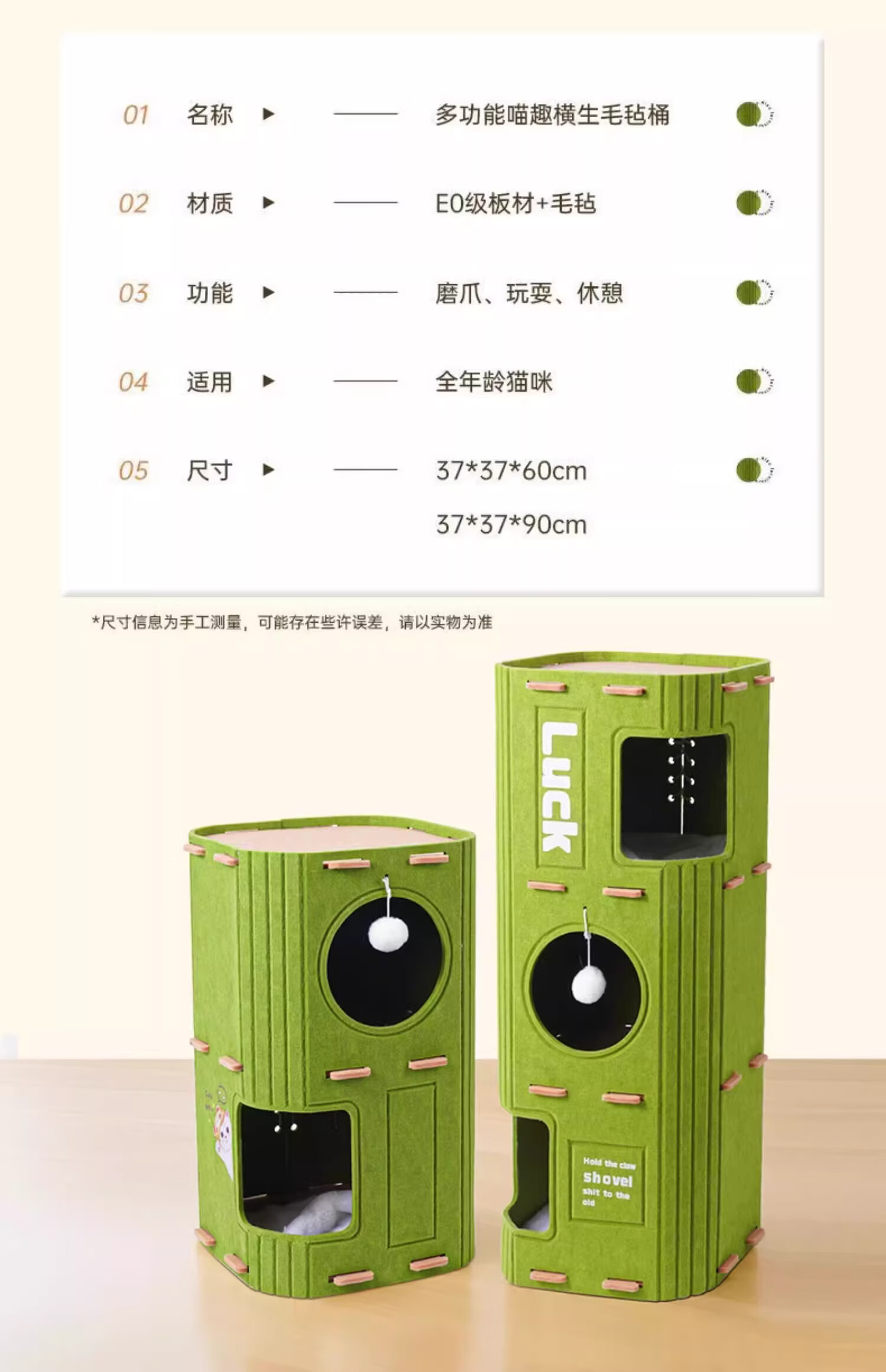 小猫日记猫窝四季通用猫爬架猫树一体猫咪多层树洞家用双层抓板封闭式猫屋 毛毡迷宫掏球乐【方形绿棕款】